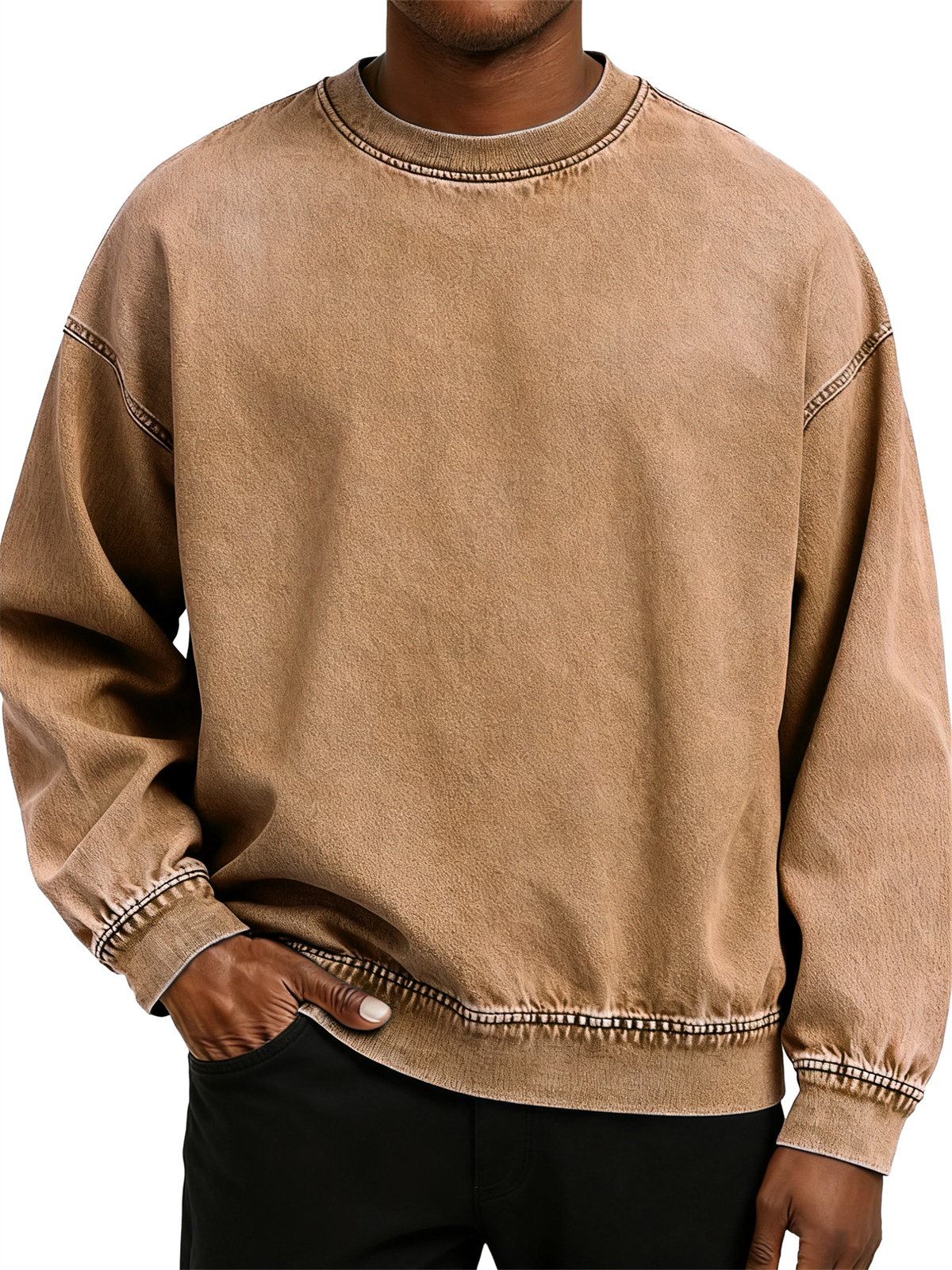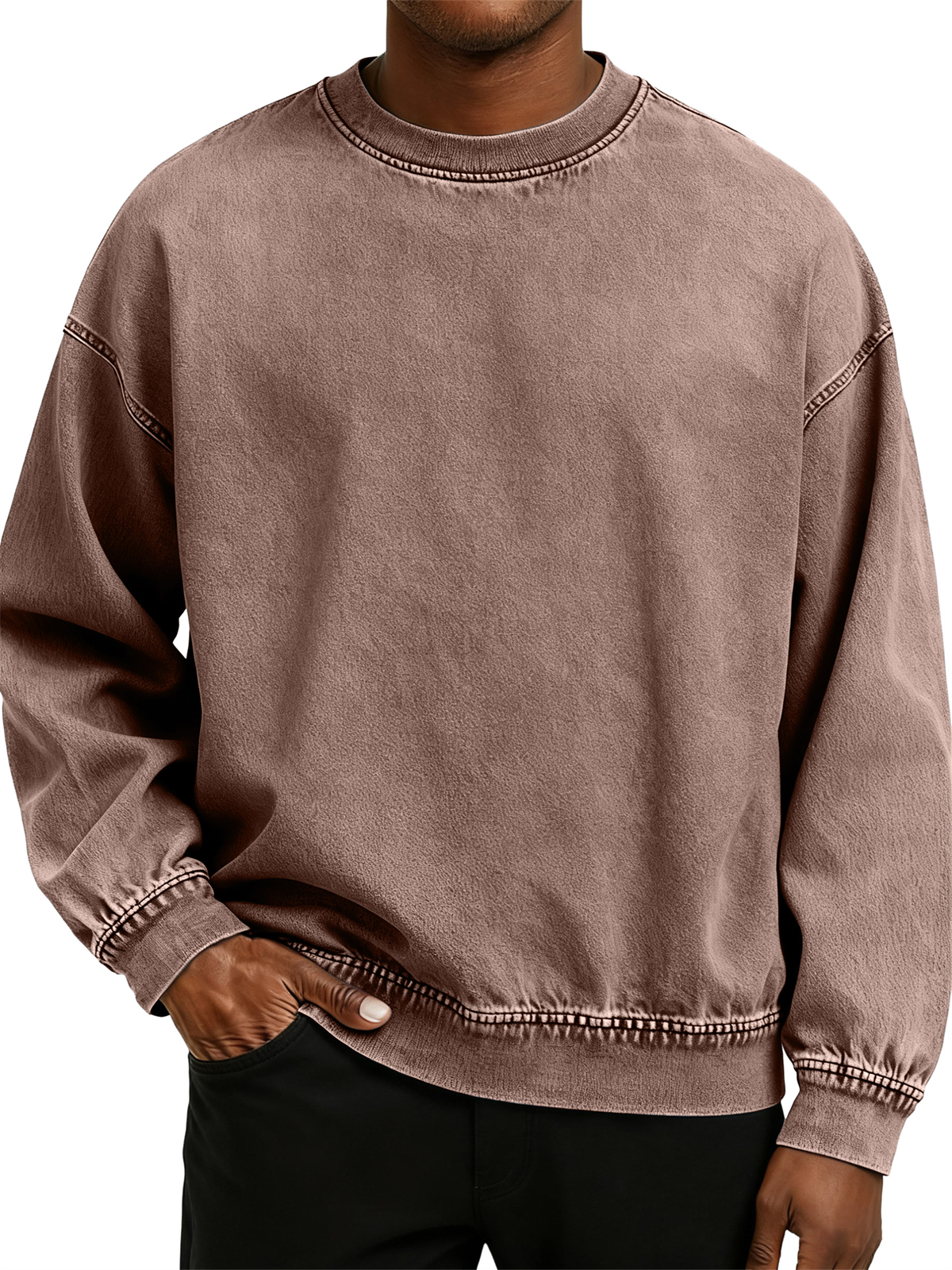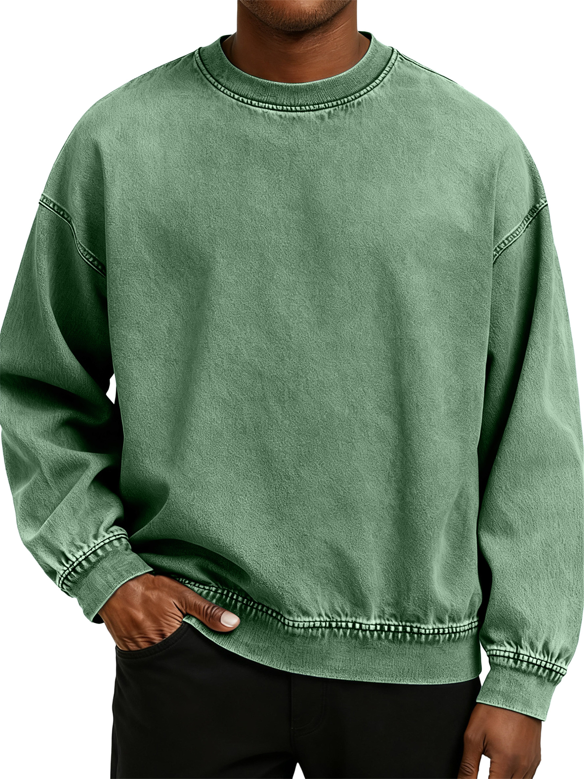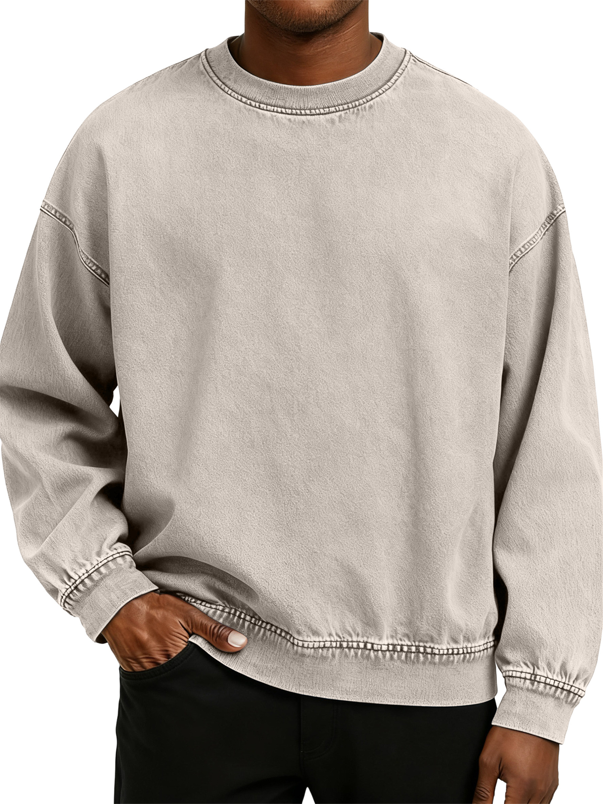 Men's Retro Washed Distressed Cotton Crew Neck Long Sleeve Sweatshirt