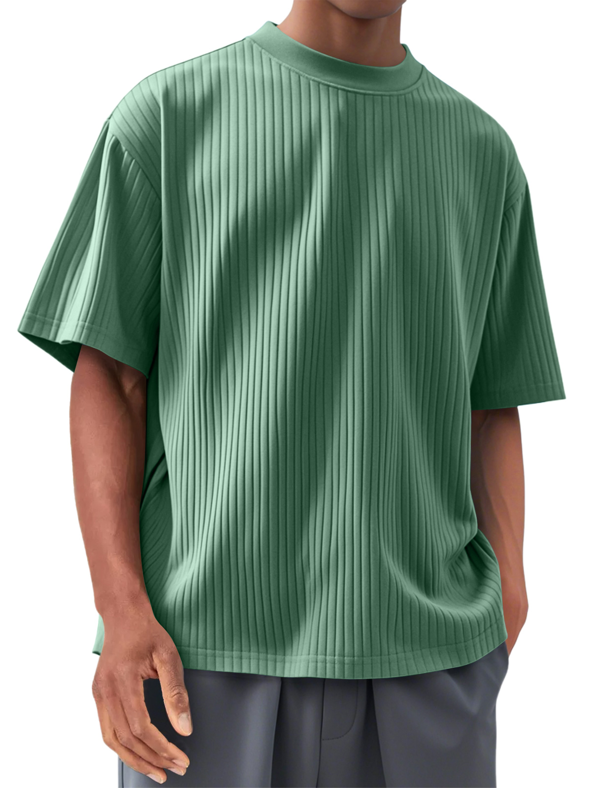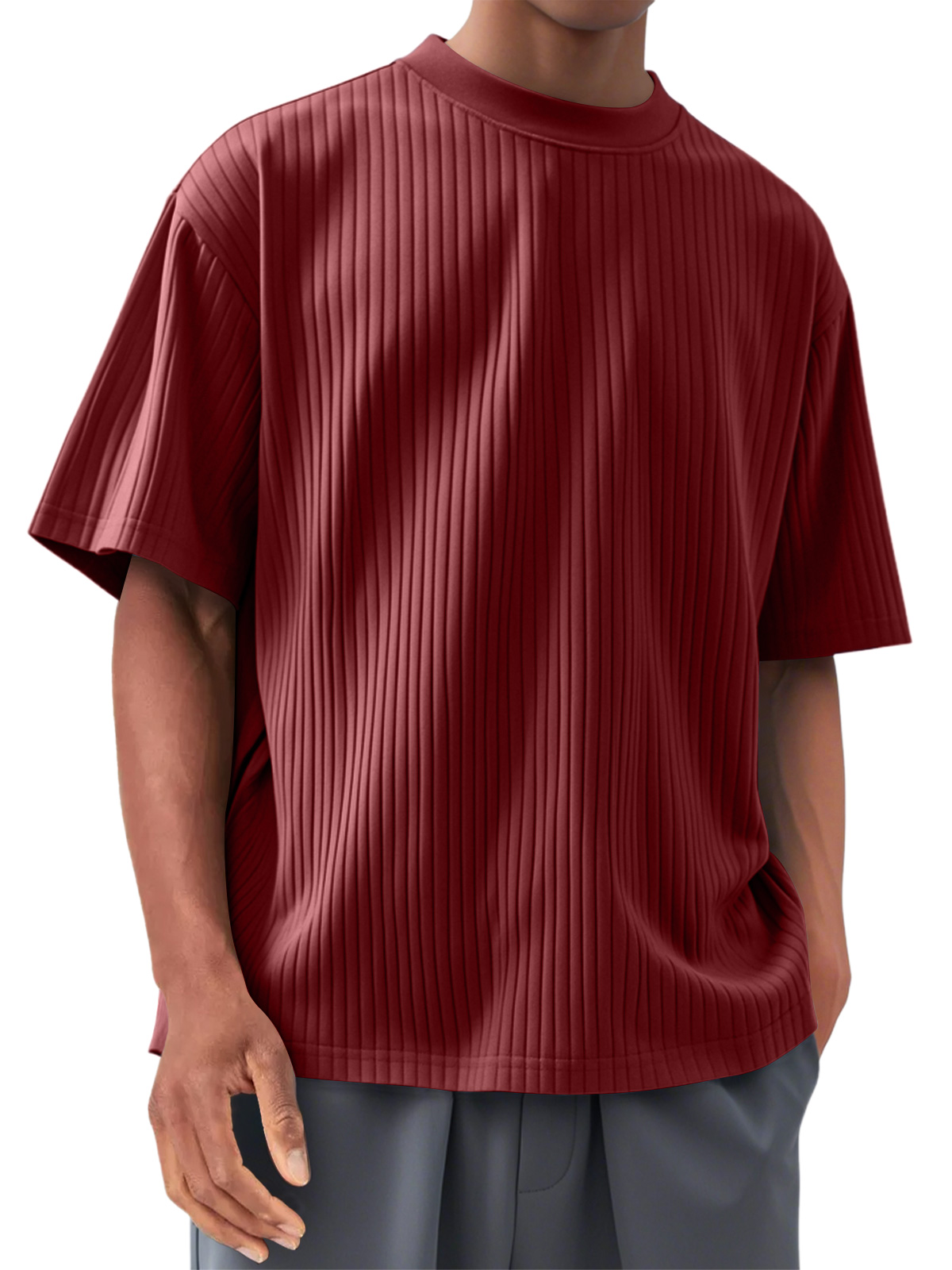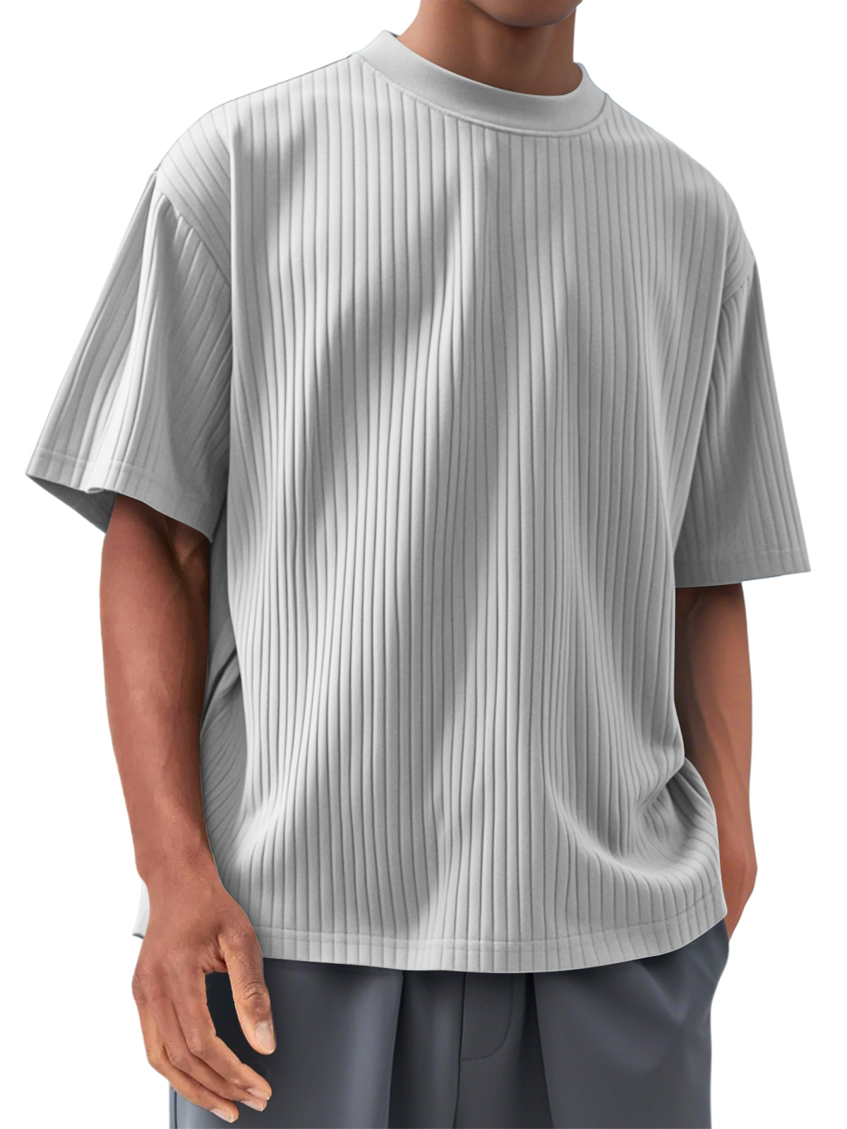 Men's Round Neck Casual Pit Strip Comfortable Short-sleeved T-shirt