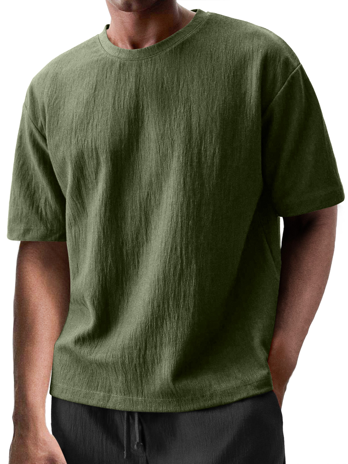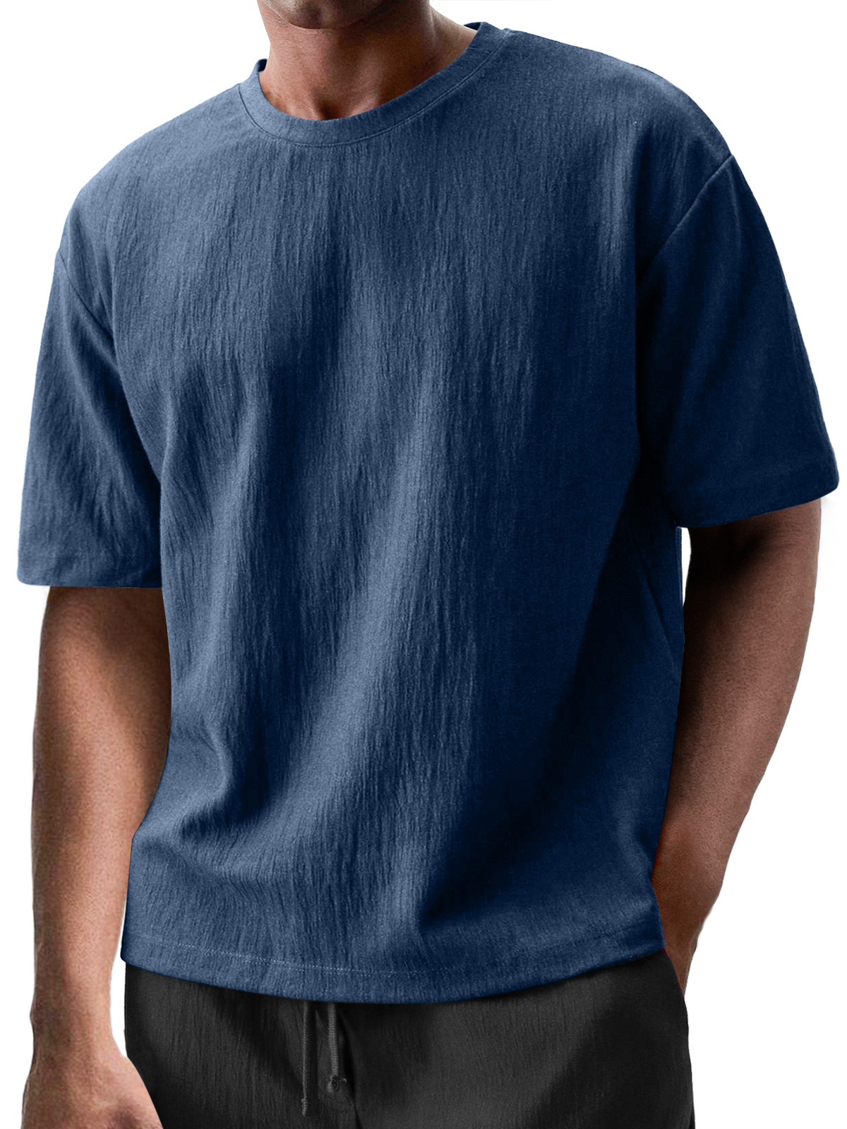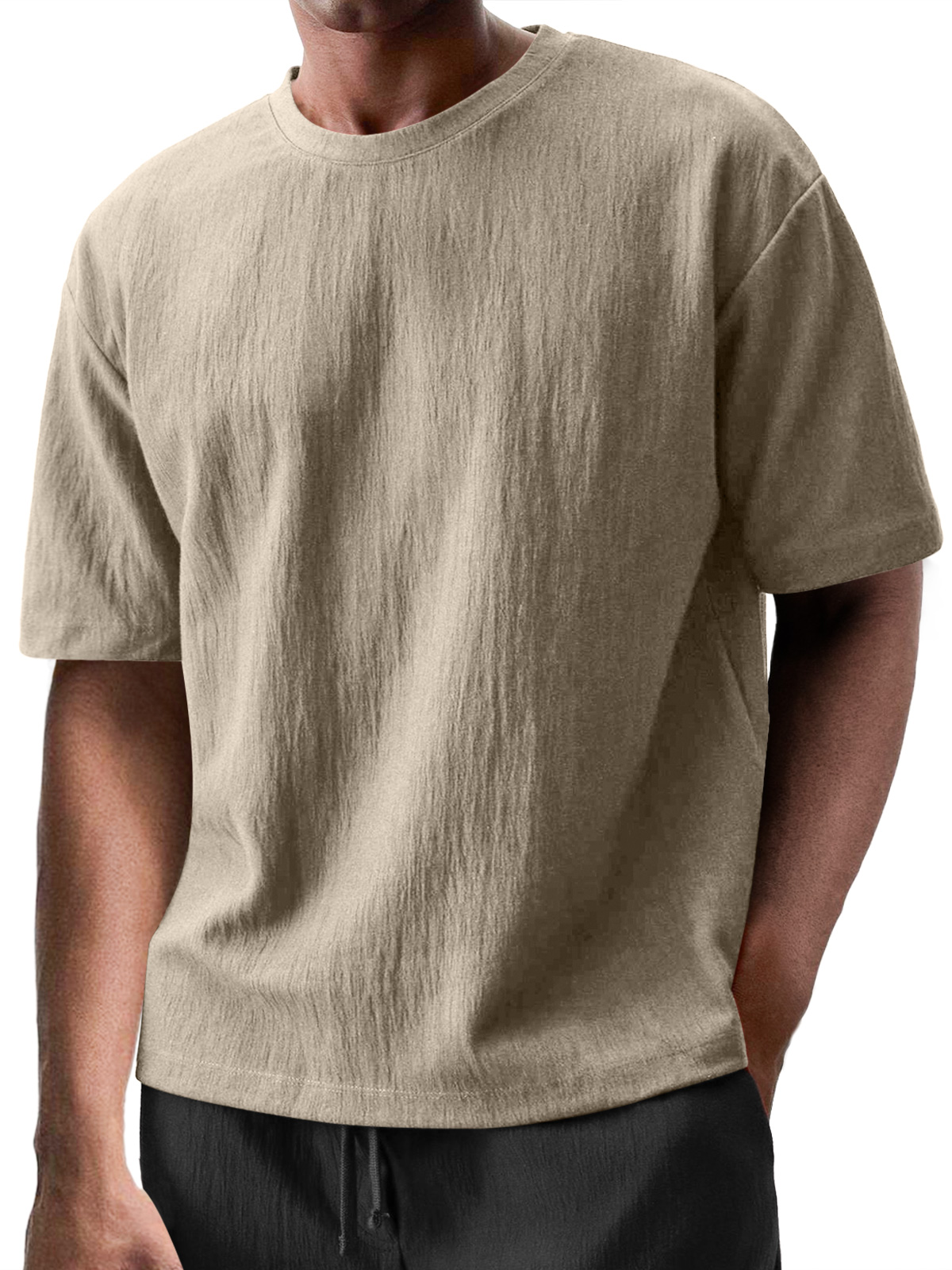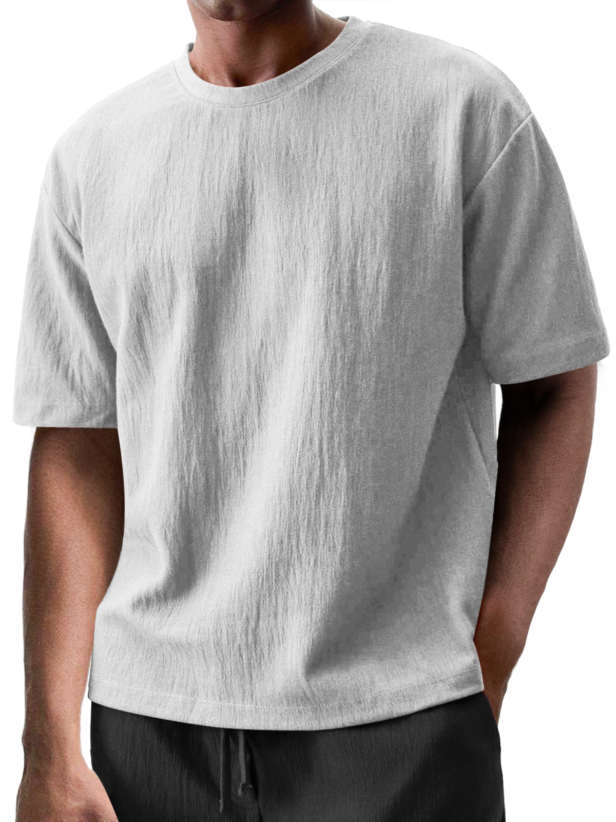 Men's Round Neck Casual Pleated Texture Short-sleeved T-shirt