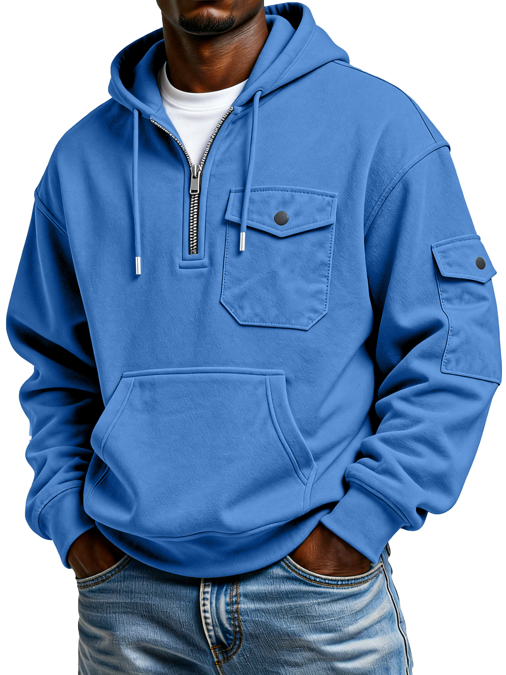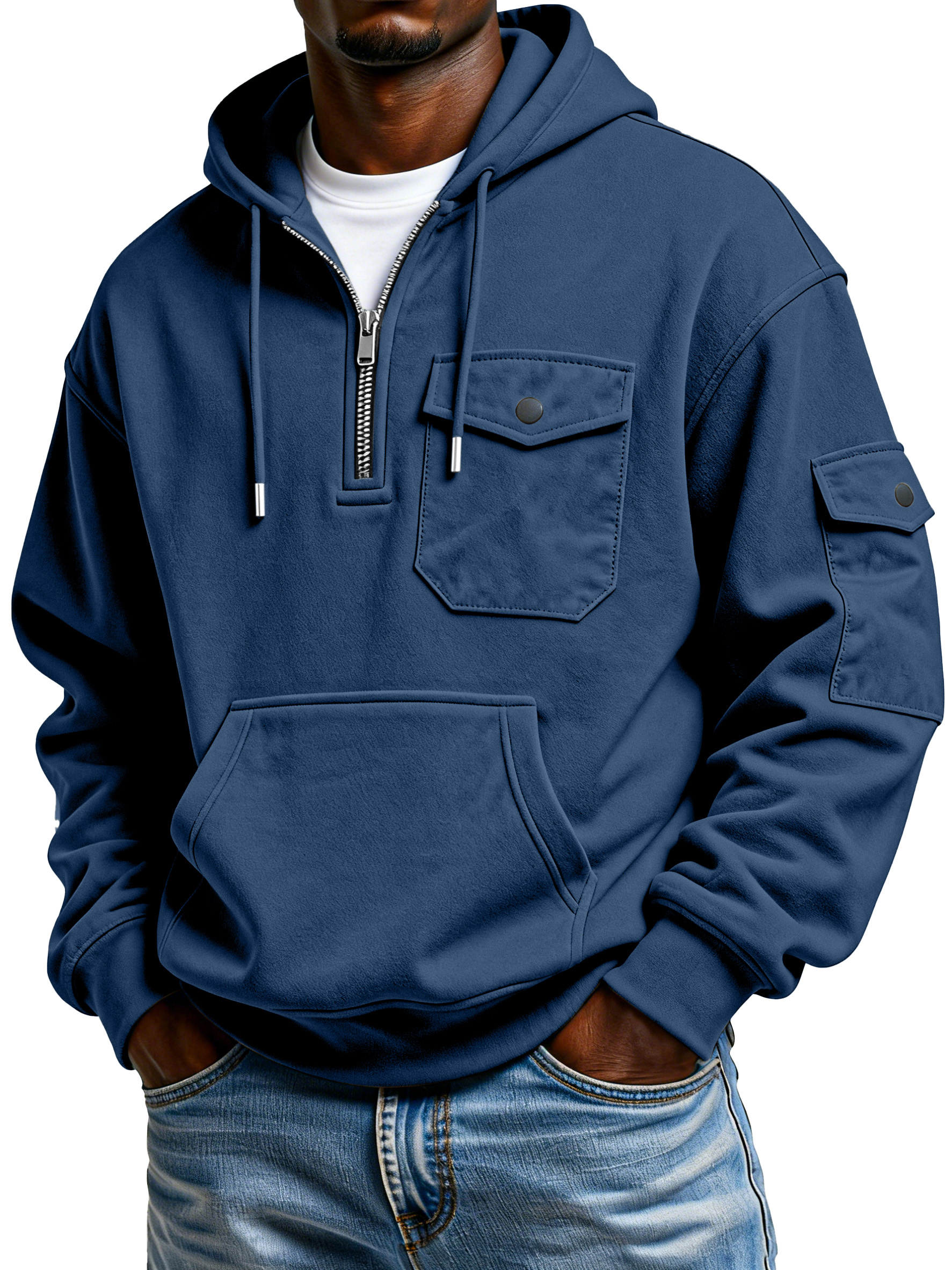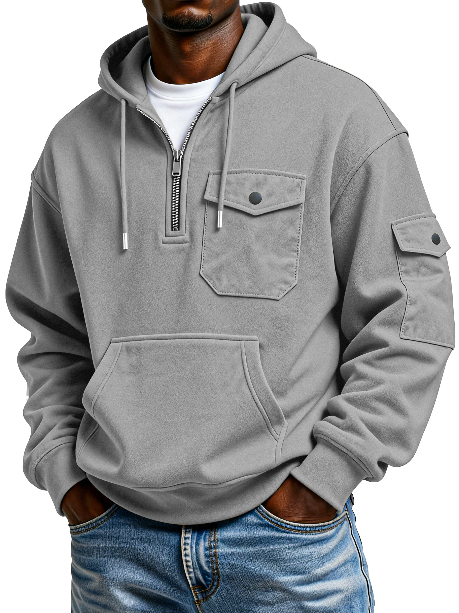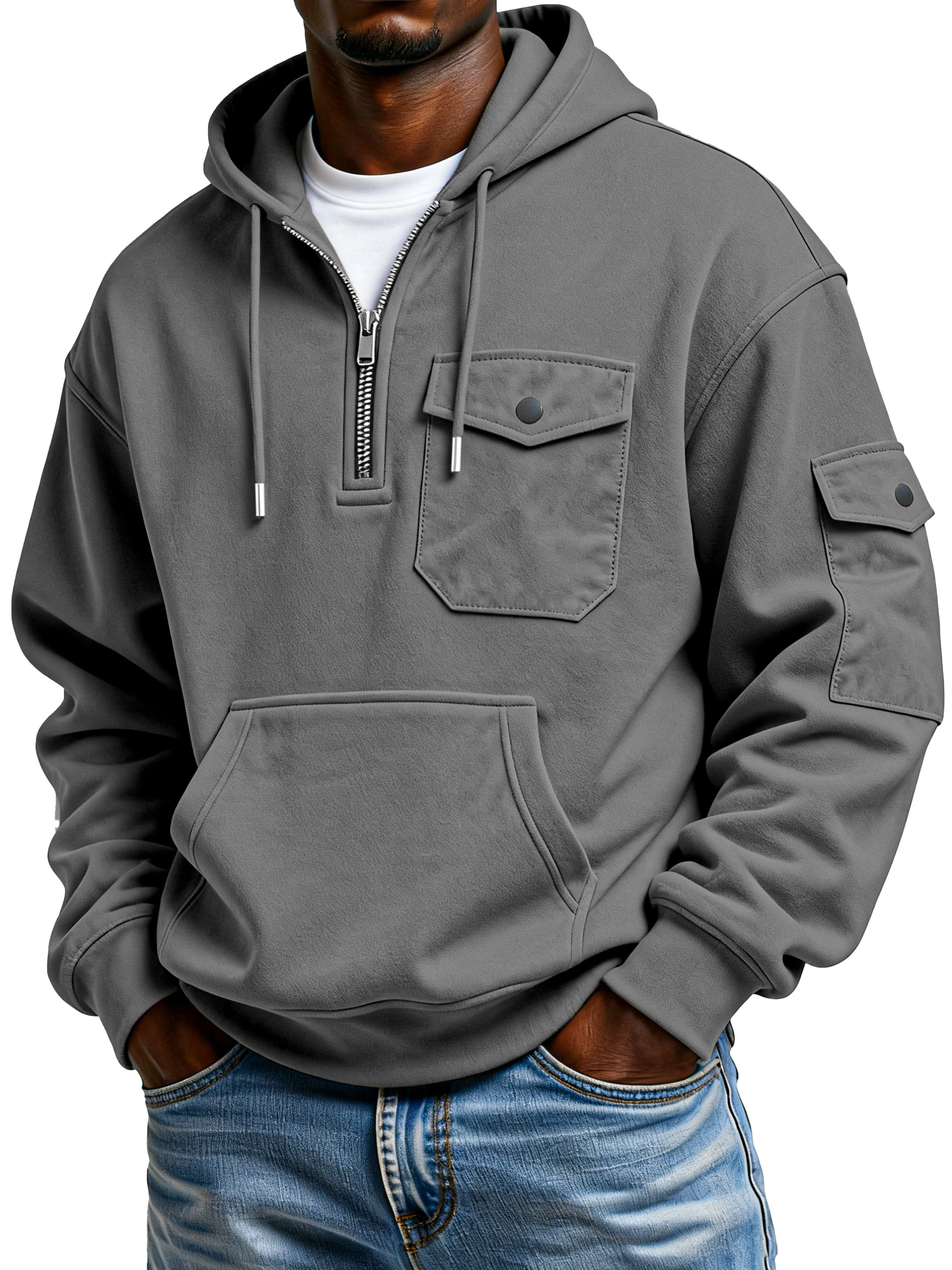 Men's Simple And Comfortable Multi-pocket Workwear Hooded Sweatshirt