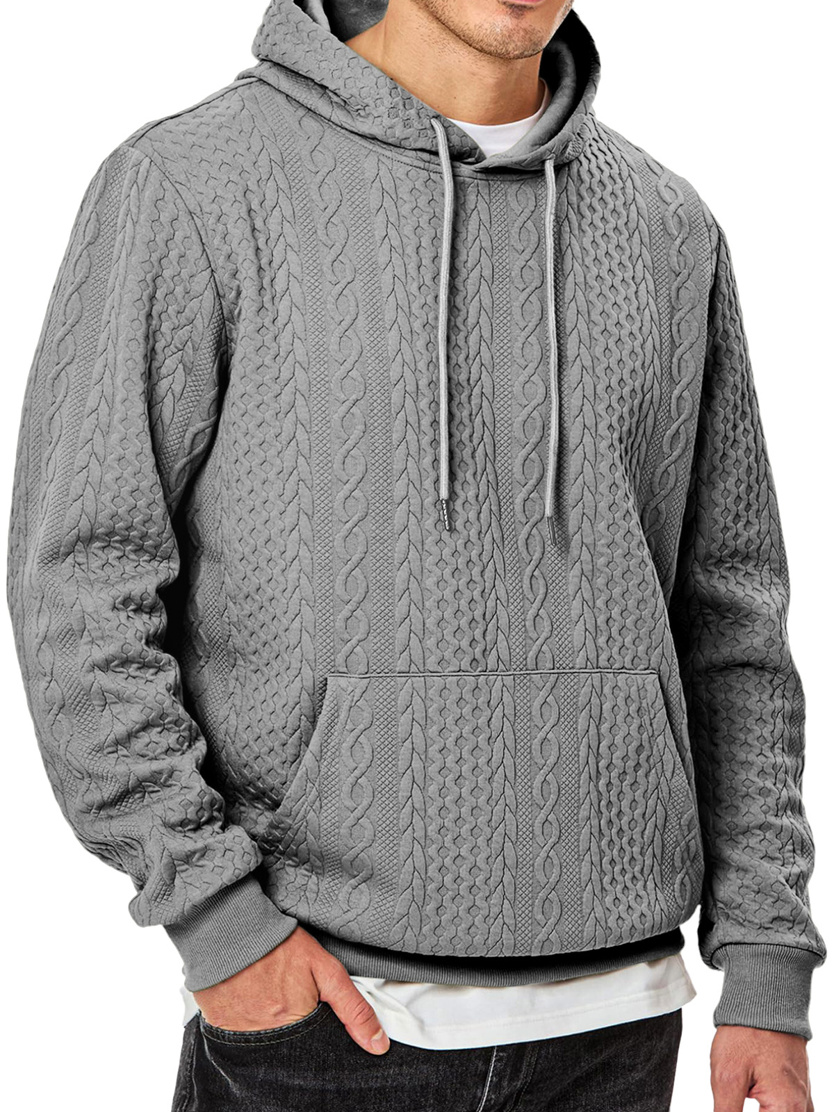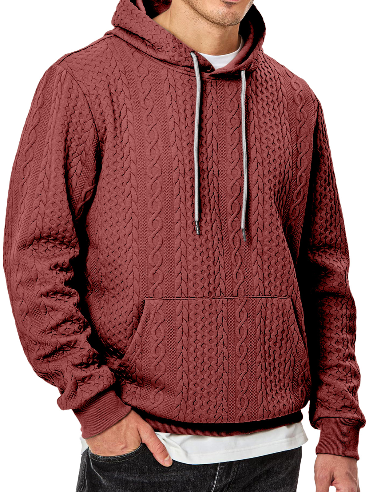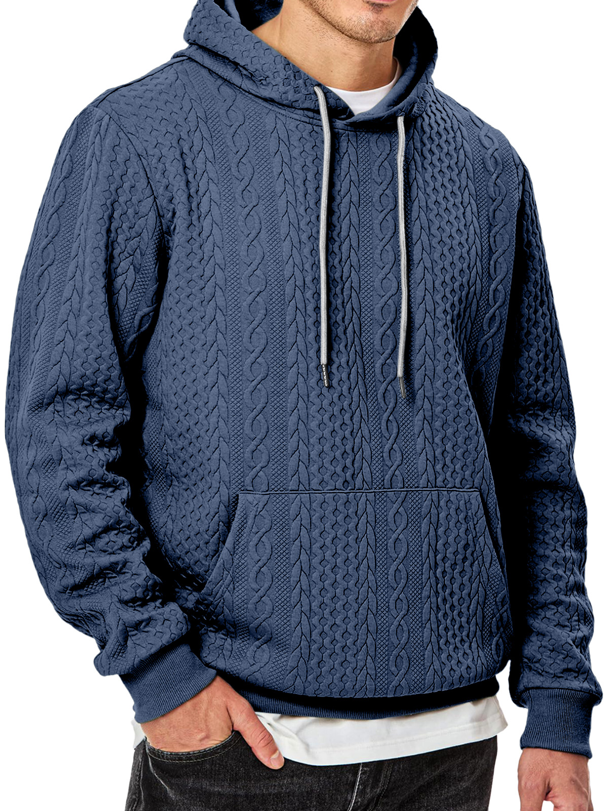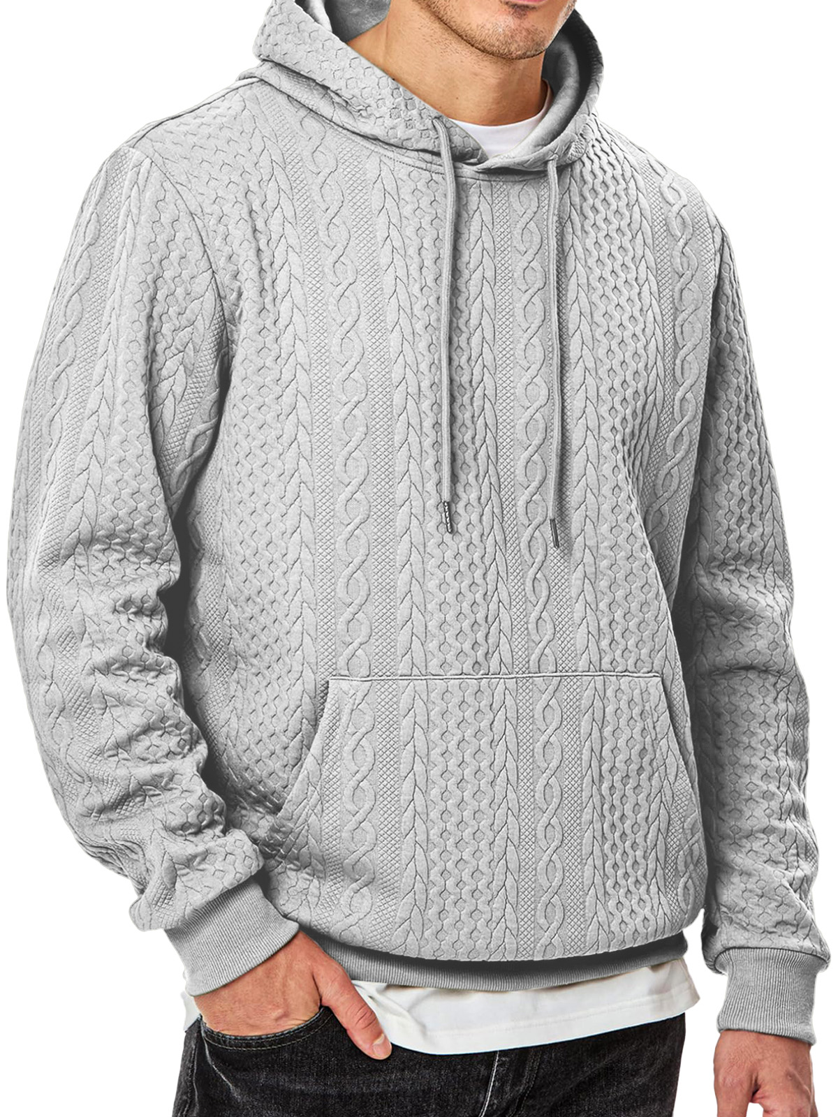 Men's Simple Solid Color Texture Long-sleeved Hooded Sweatshirt