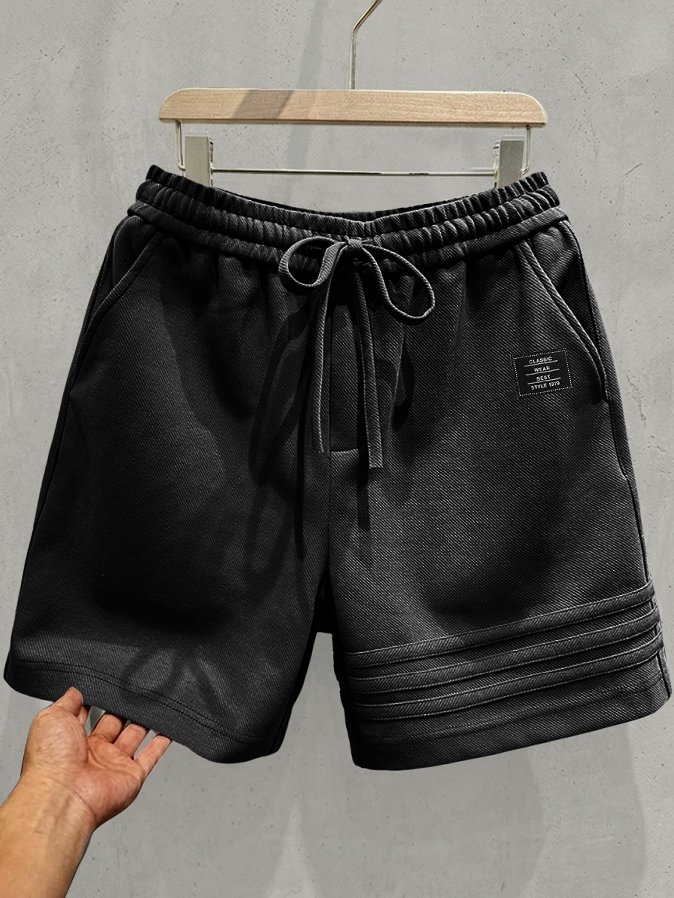 Men's Simple Stitching Design Embroidered Logo Casual Shorts