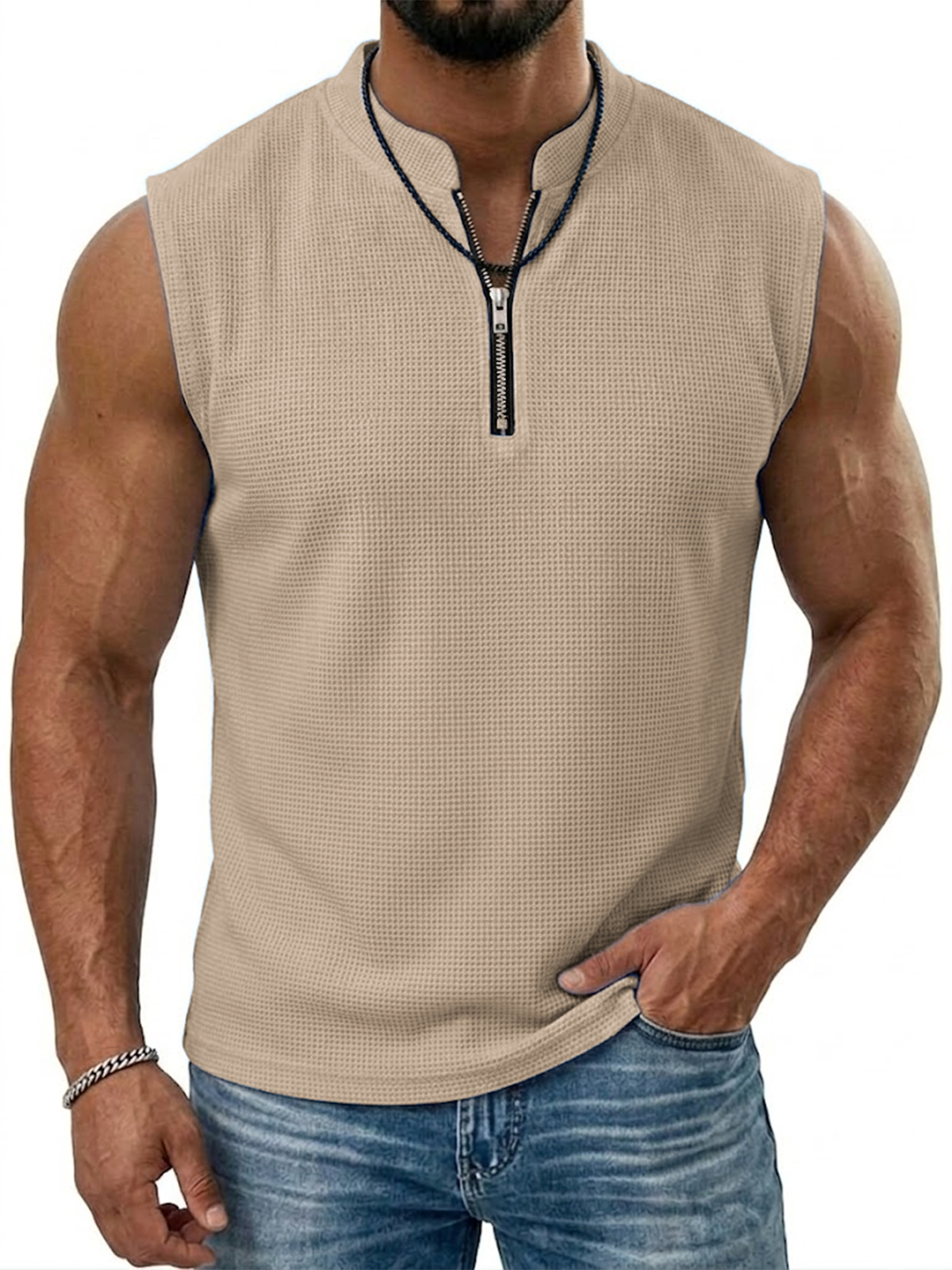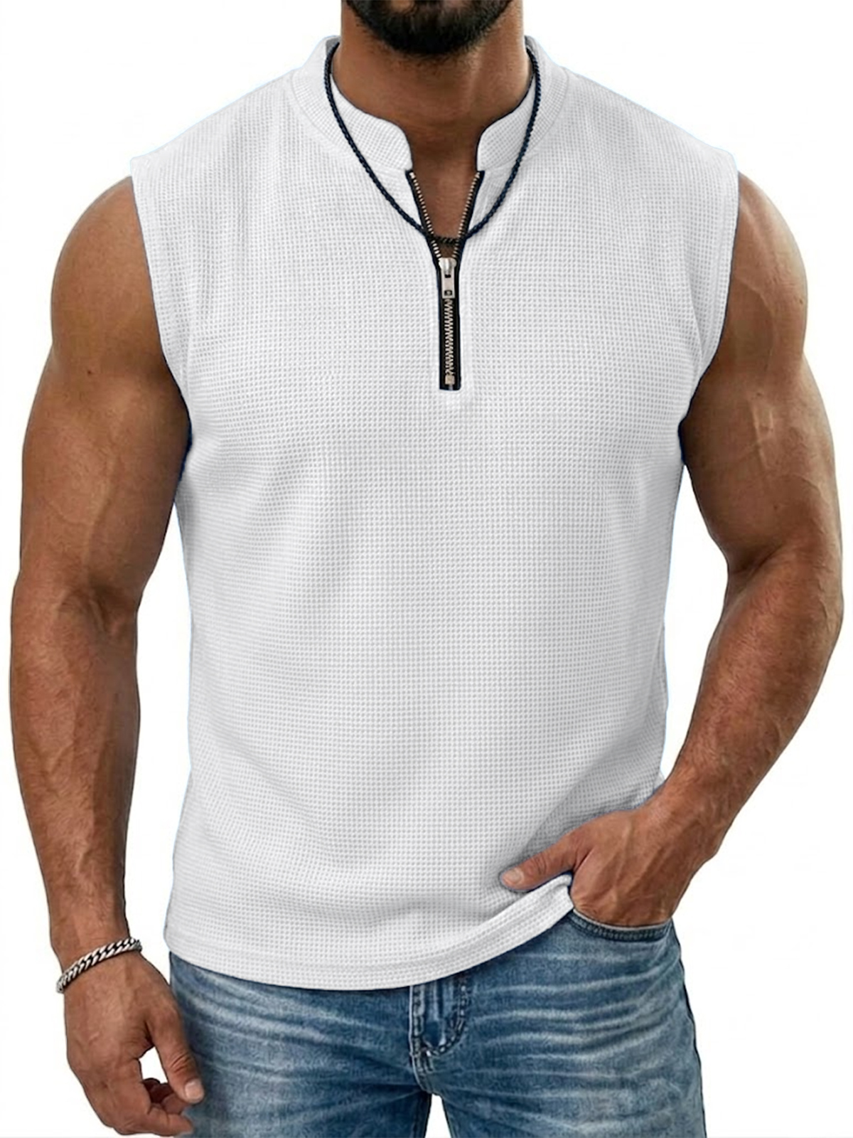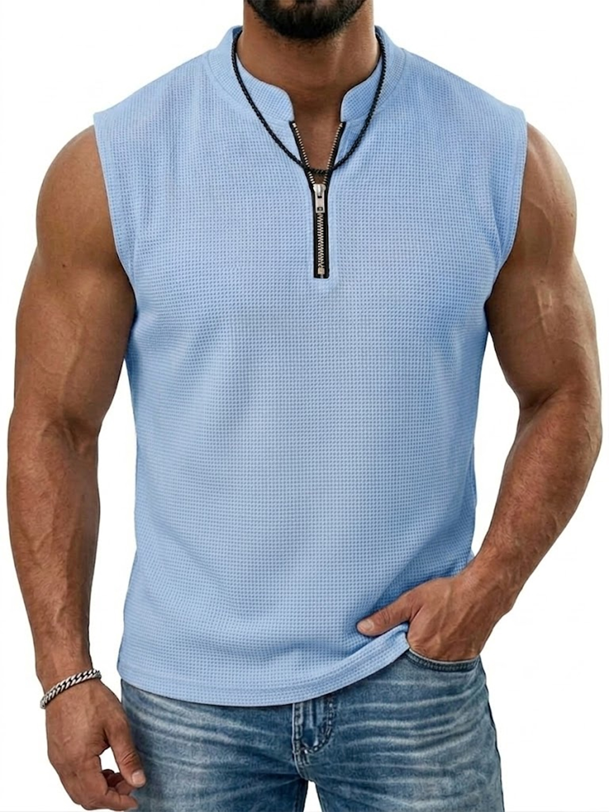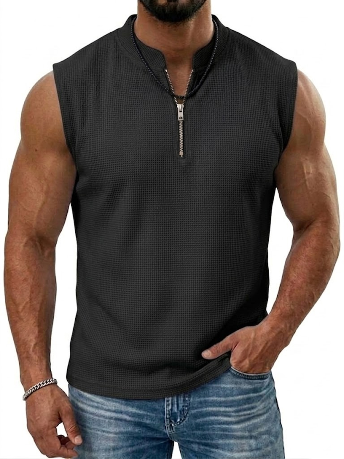 Men's Sleeveless Solid Color Textured Pullover Vest