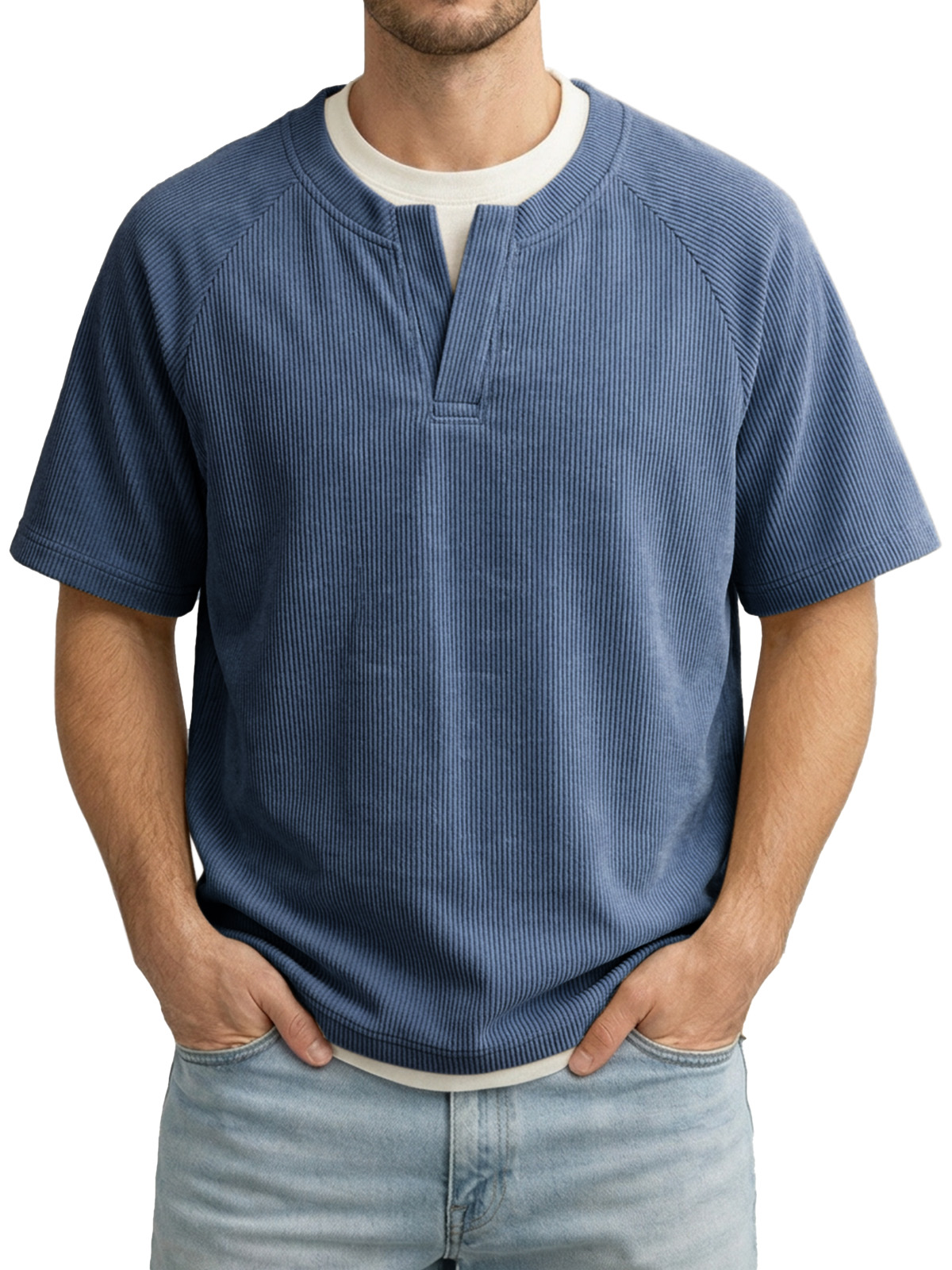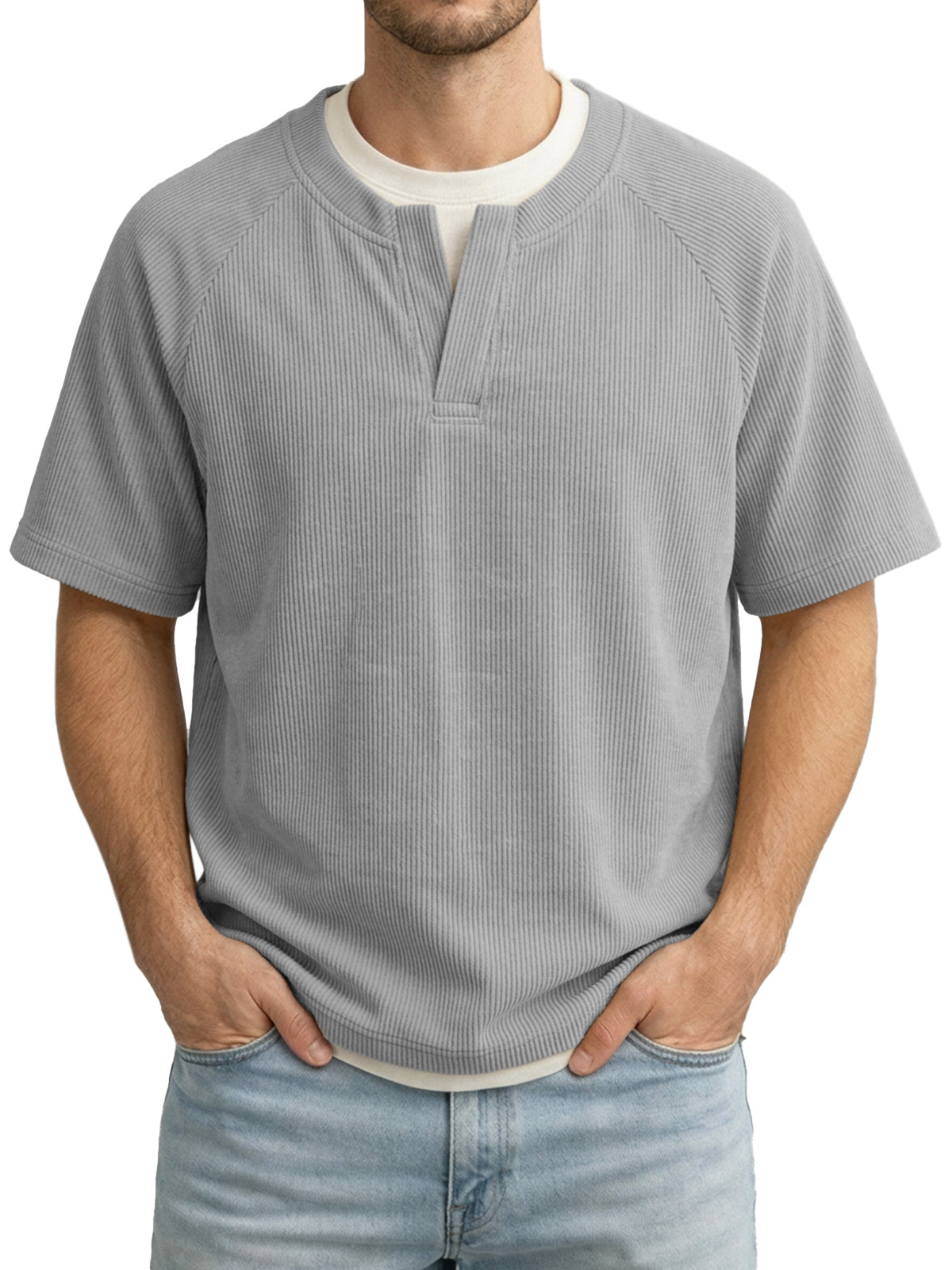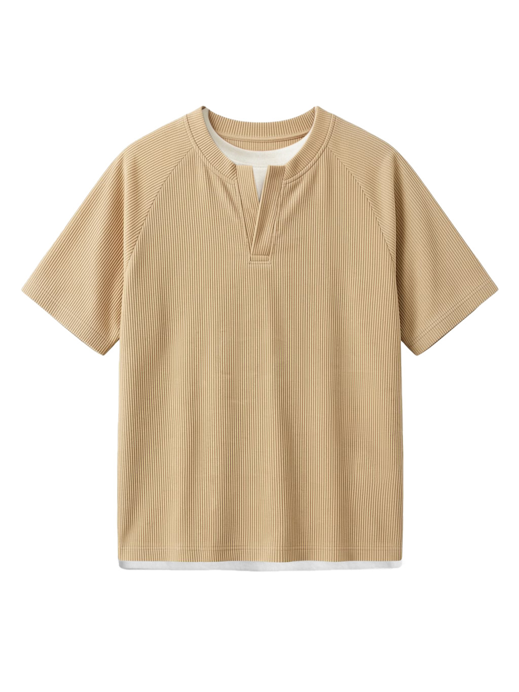 Men's Solid Color Fake Two-piece Vertical Pit V-neck Short-sleeved T-shirt