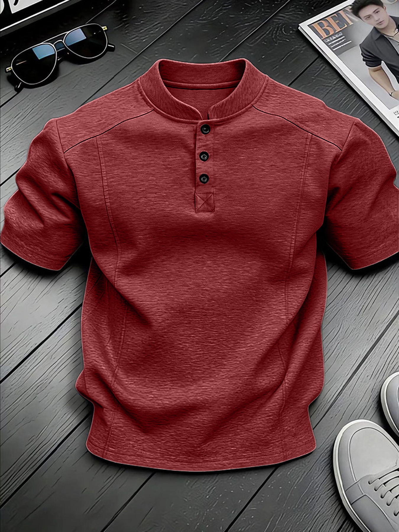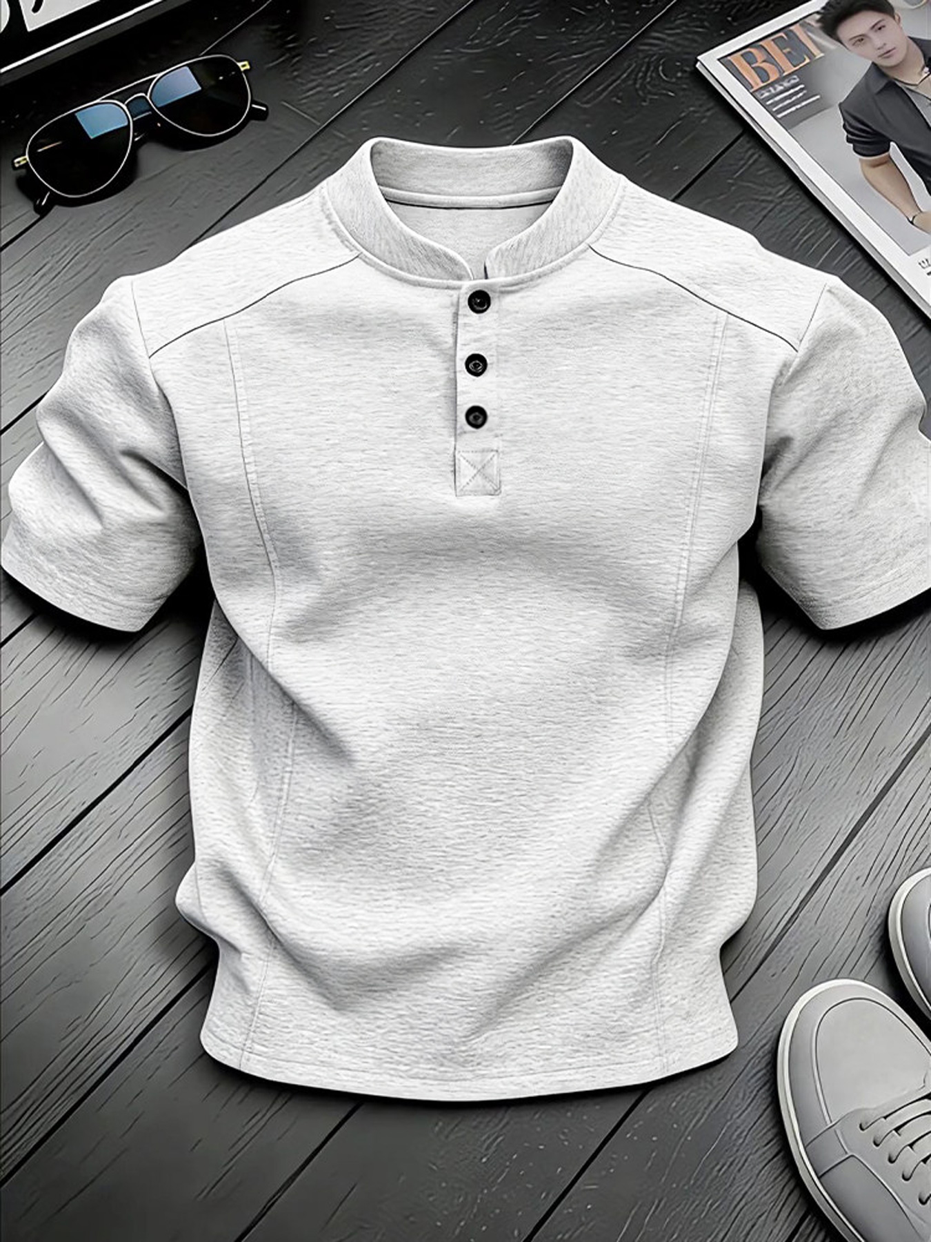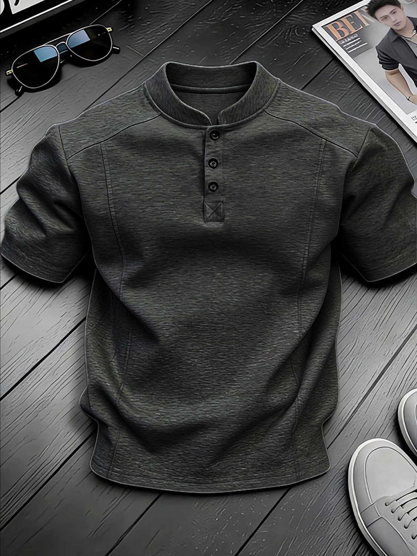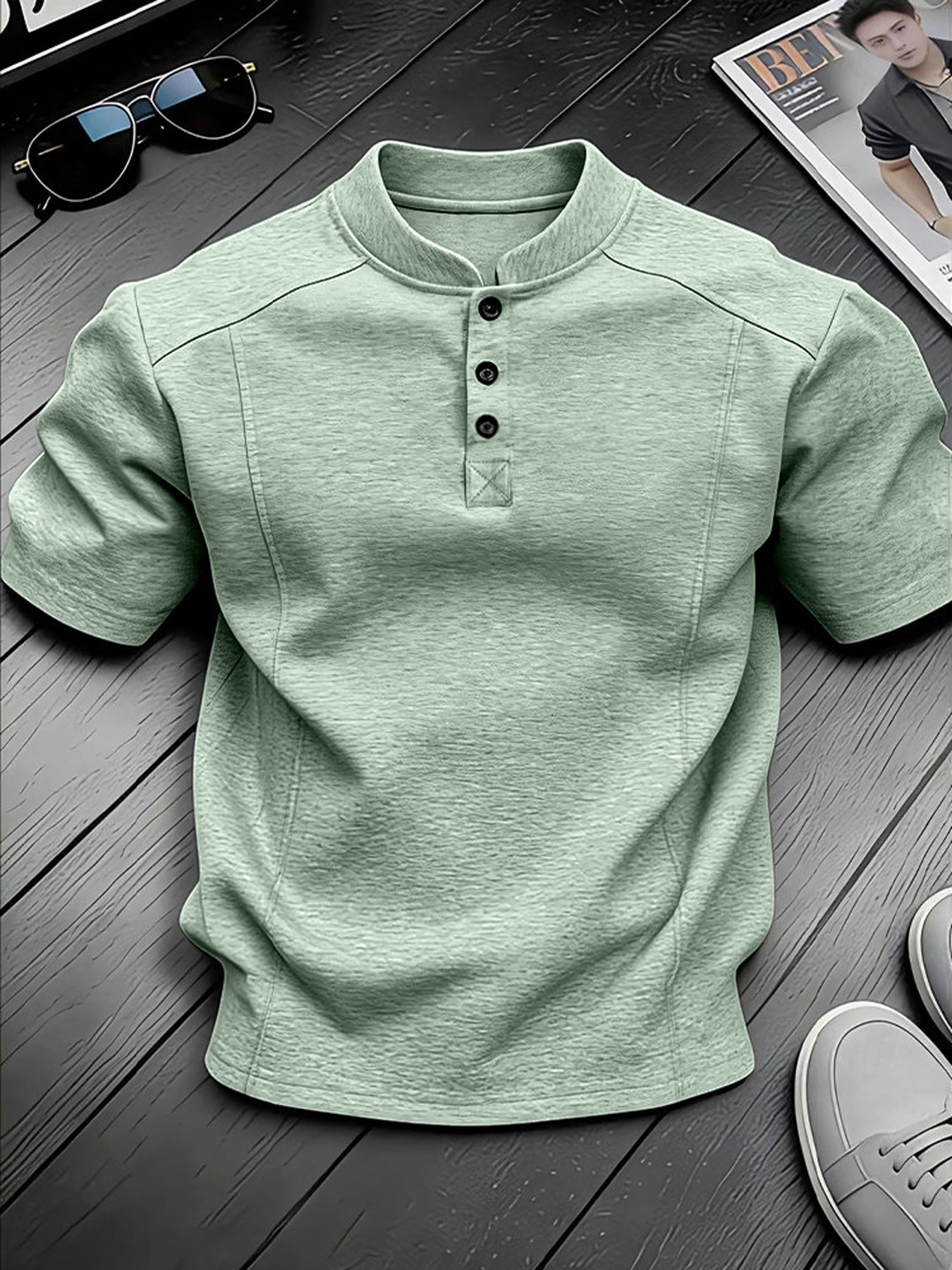 Men's Stand-up Collar Button-down Design Casual Short-sleeved Henley Shirt