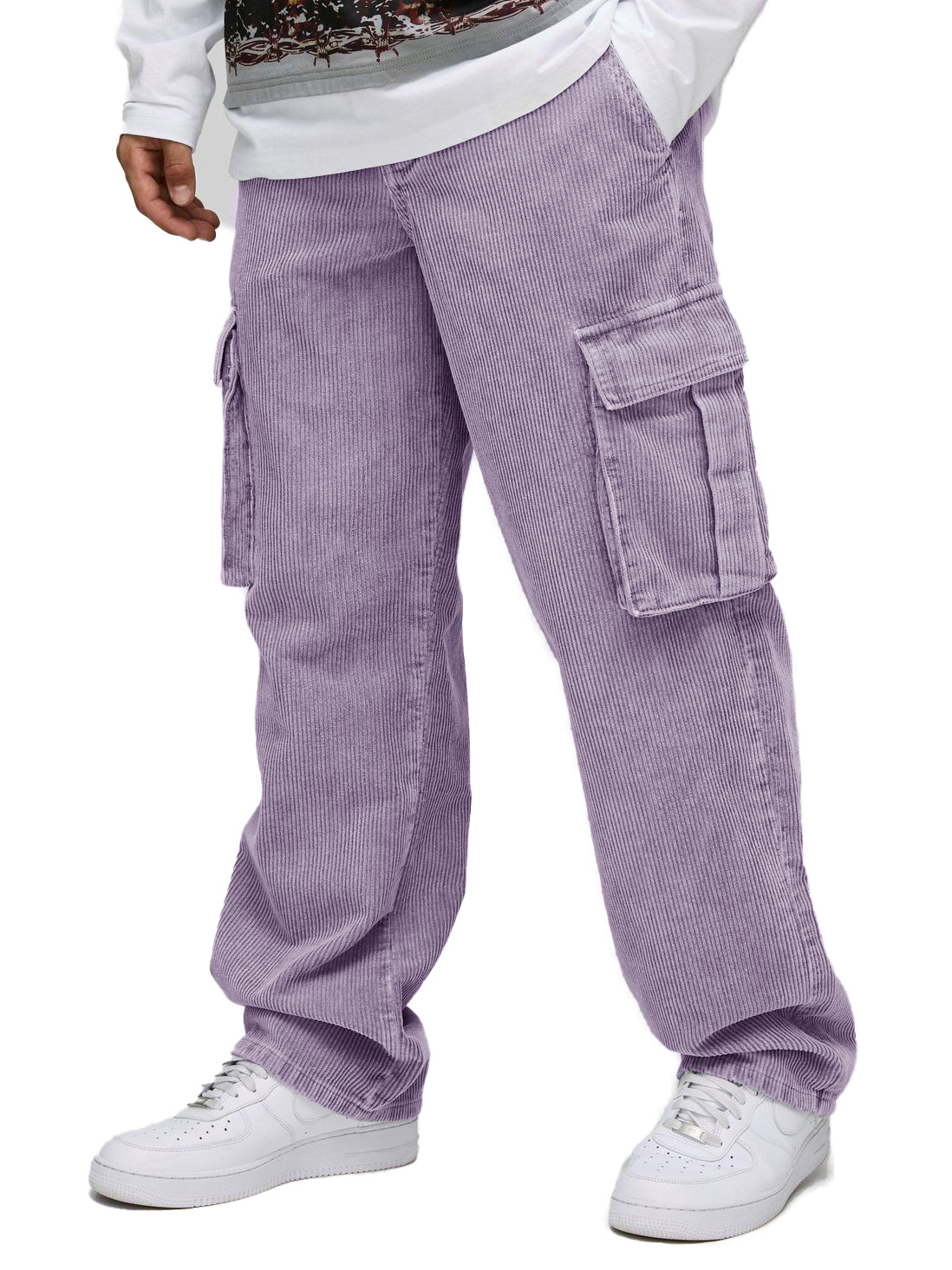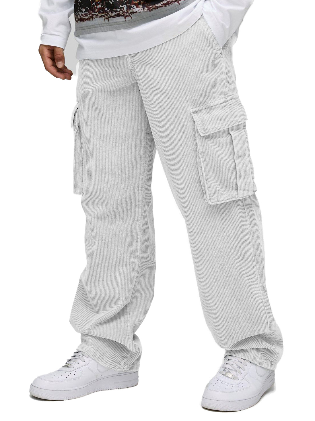 Men's Stylish Retro Corduroy Cargo Pocket Loose Elastic Waist Trousers