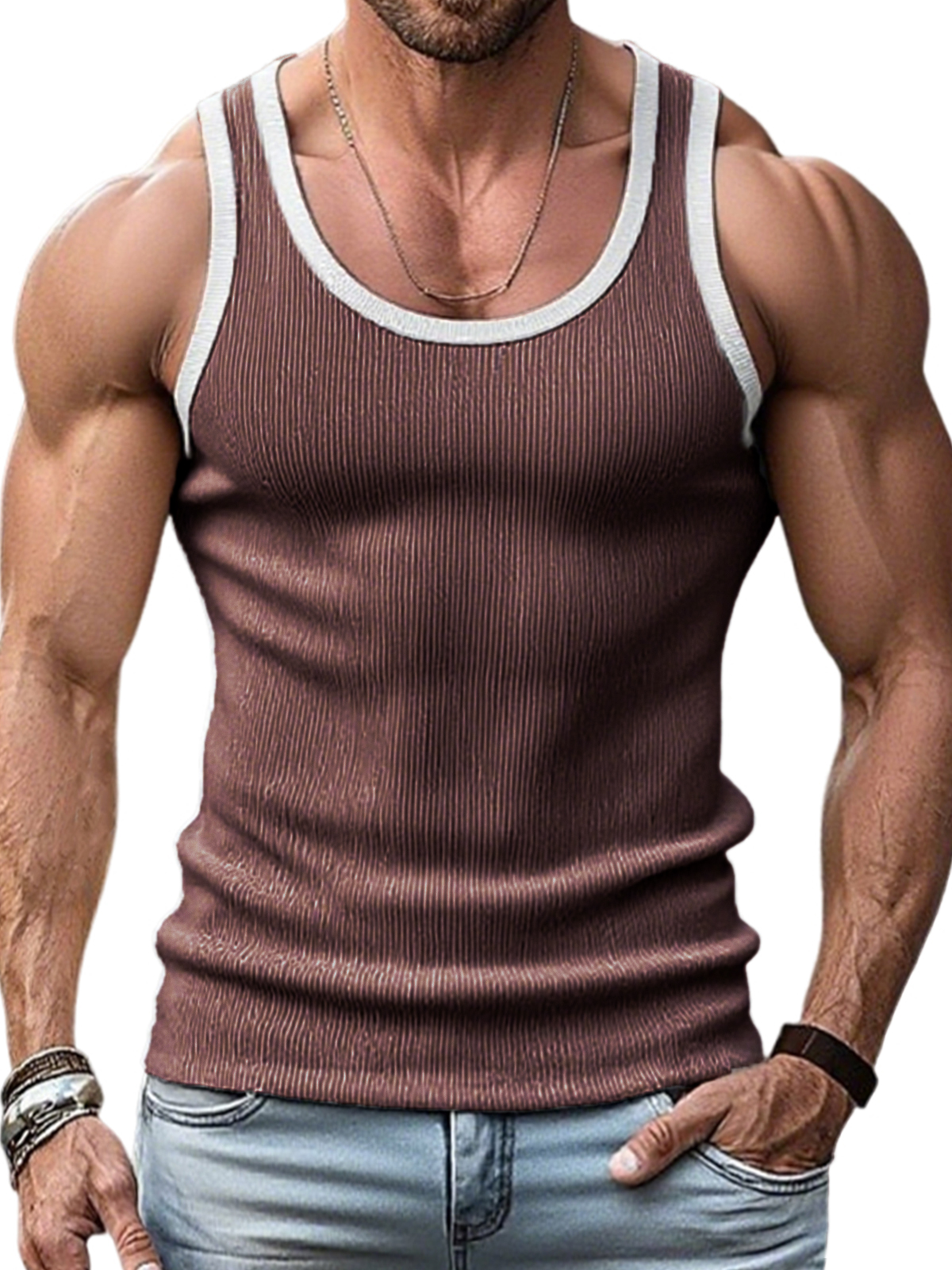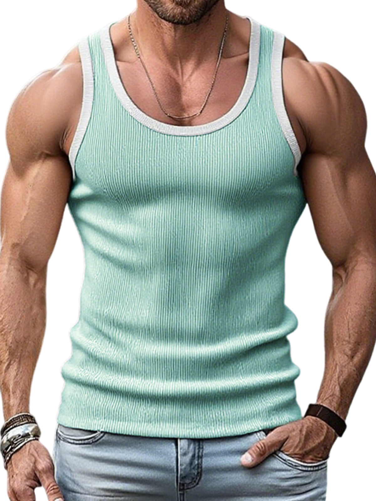 Men's Stylish Ribbed Contrast Color Sleeveless Sports Fitness Vest