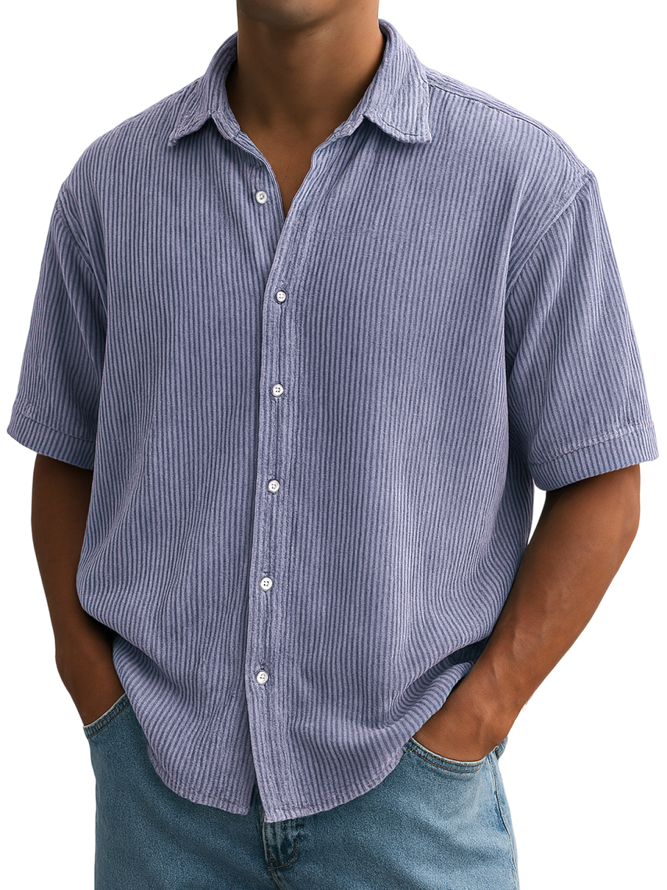 Men's Stylish Ripped Vertical Striped Corduroy Comfortable Casual Short Sleeve Shirt