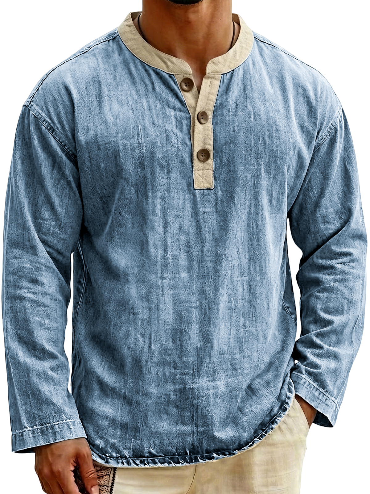 • Neckline: Henley Collar