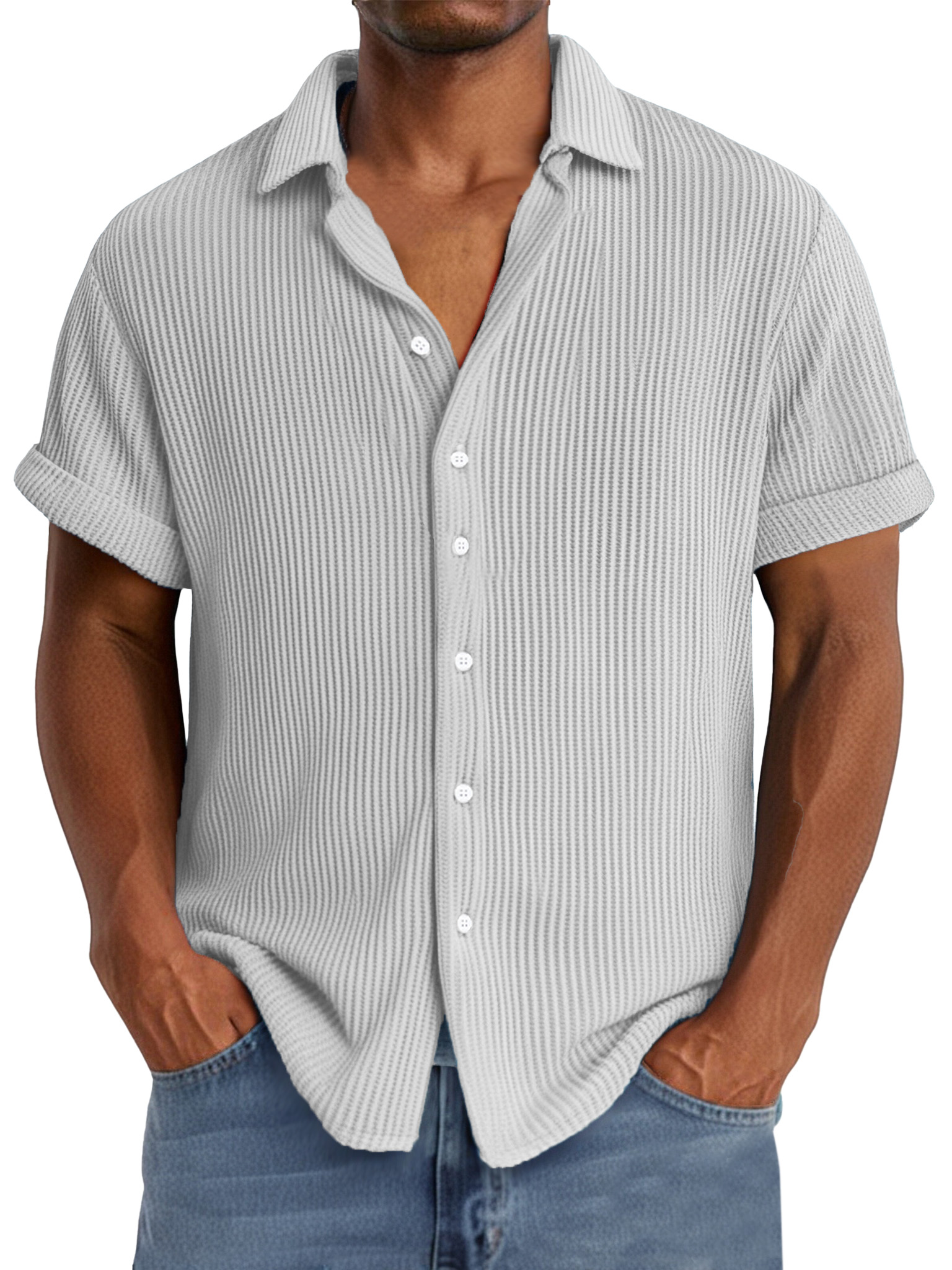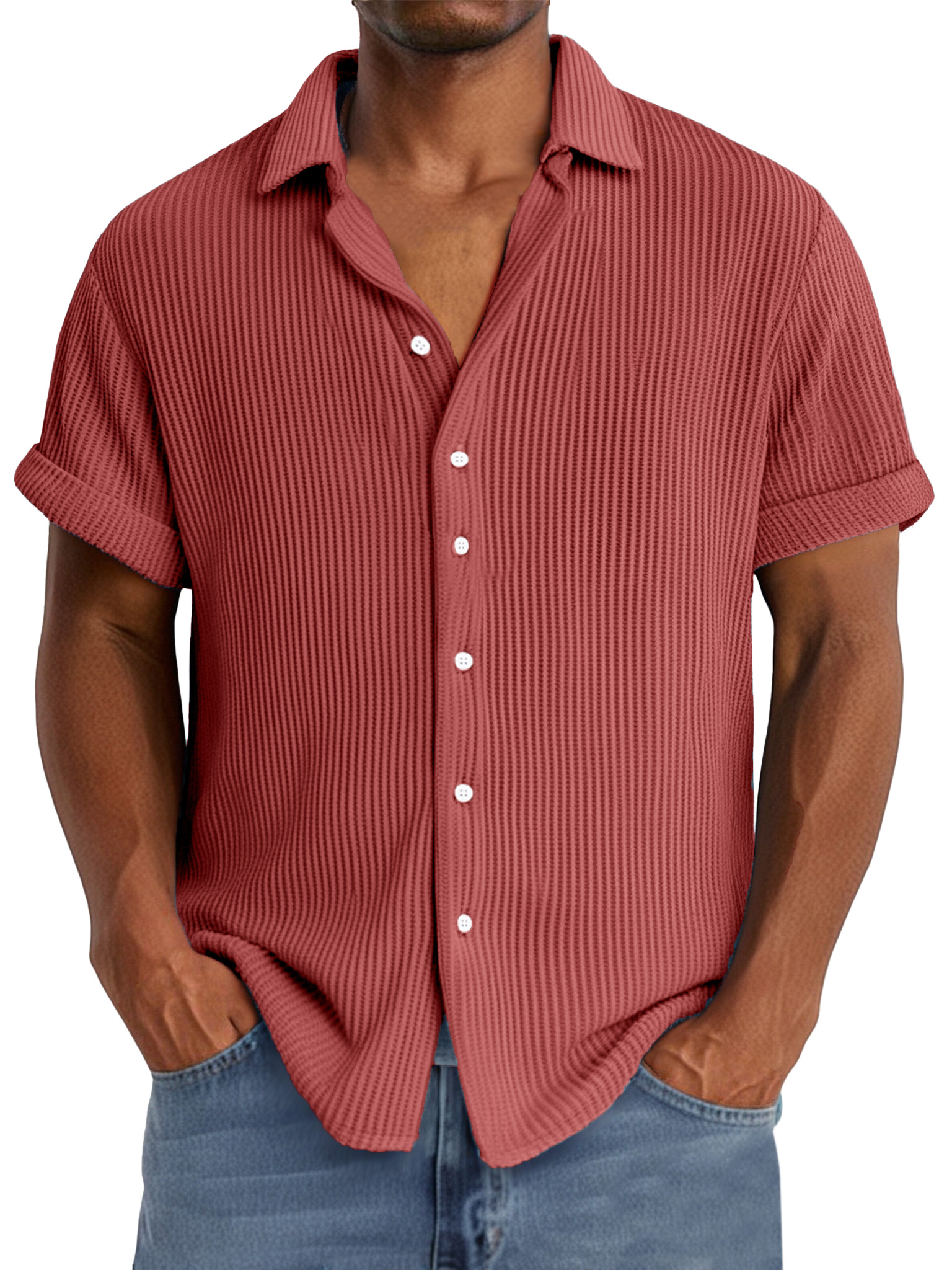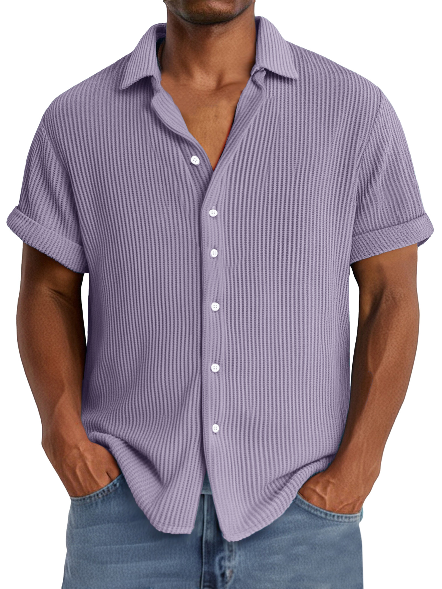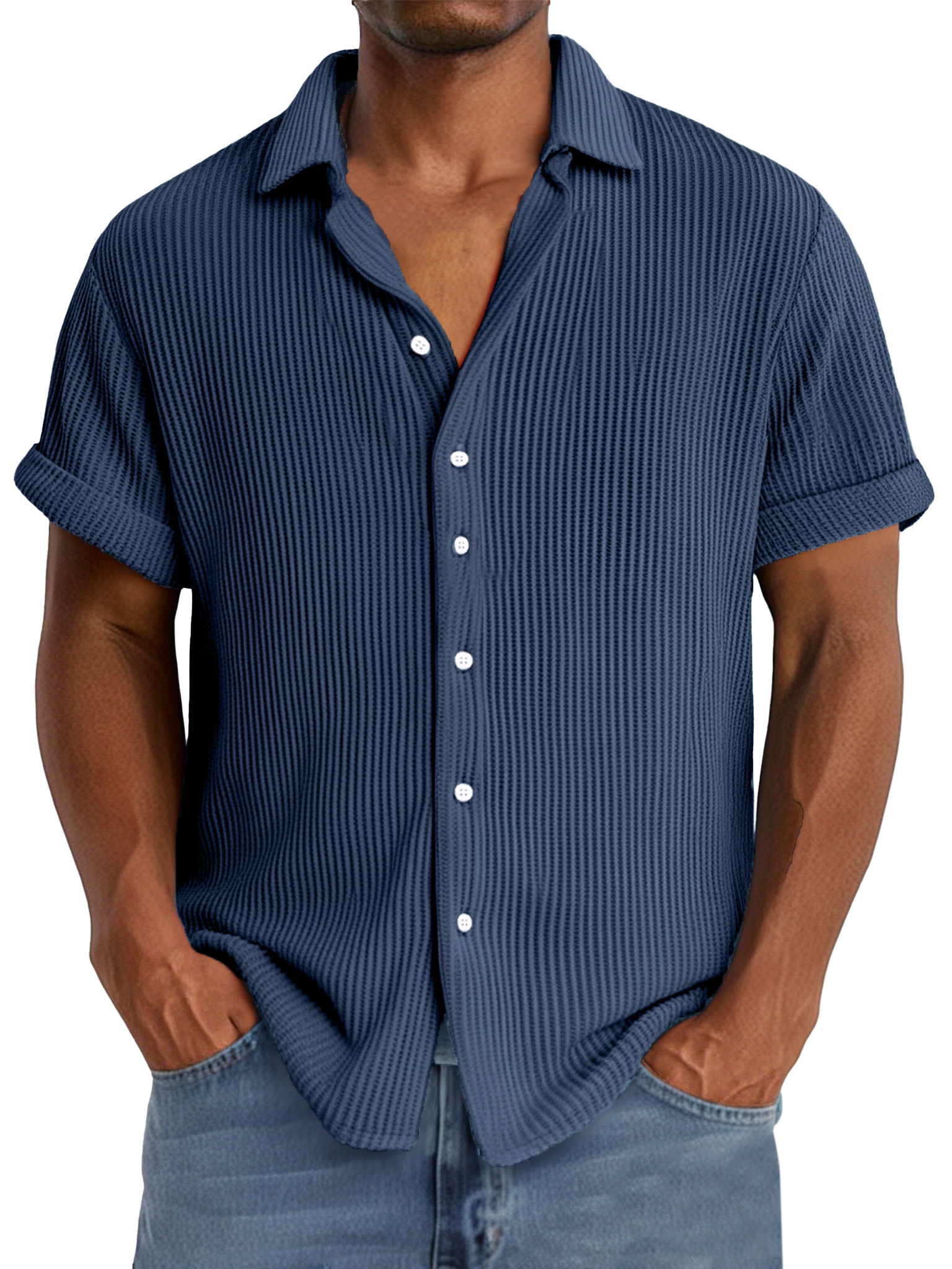 Men's summer casual simple waffle texture short-sleeved shirt