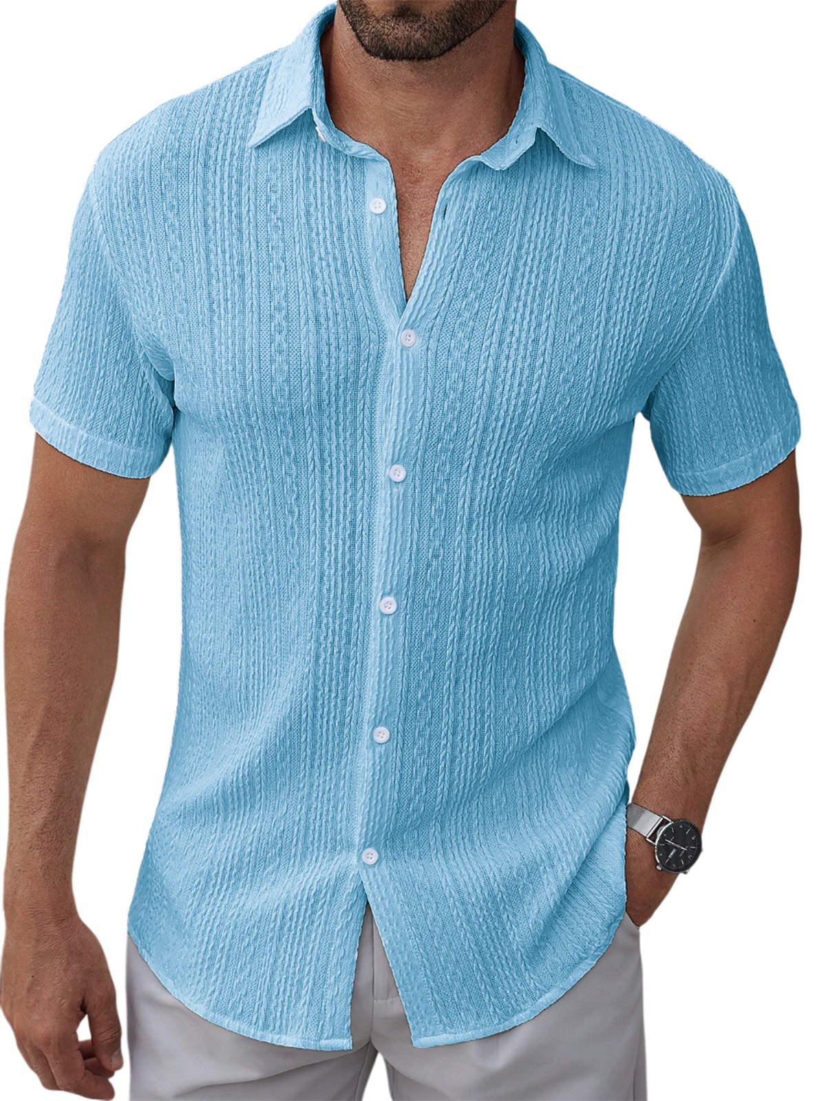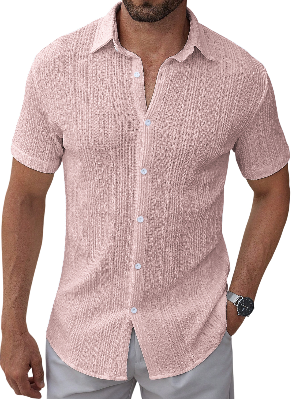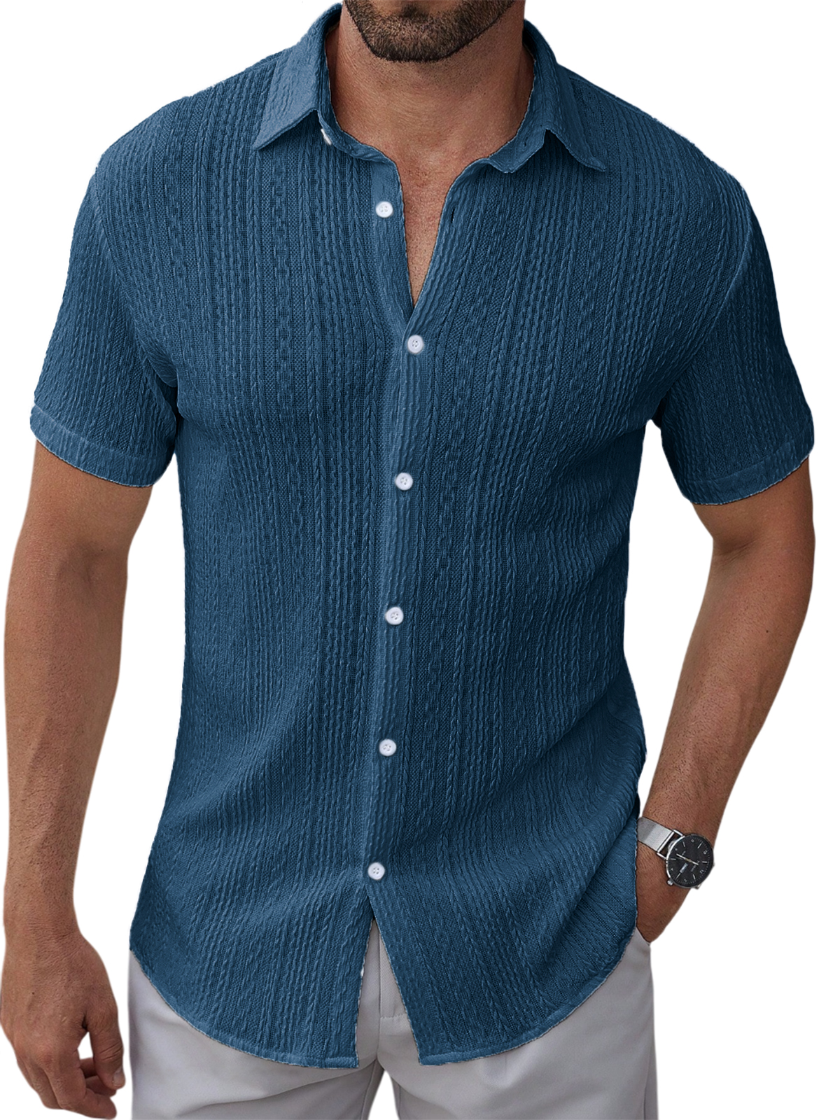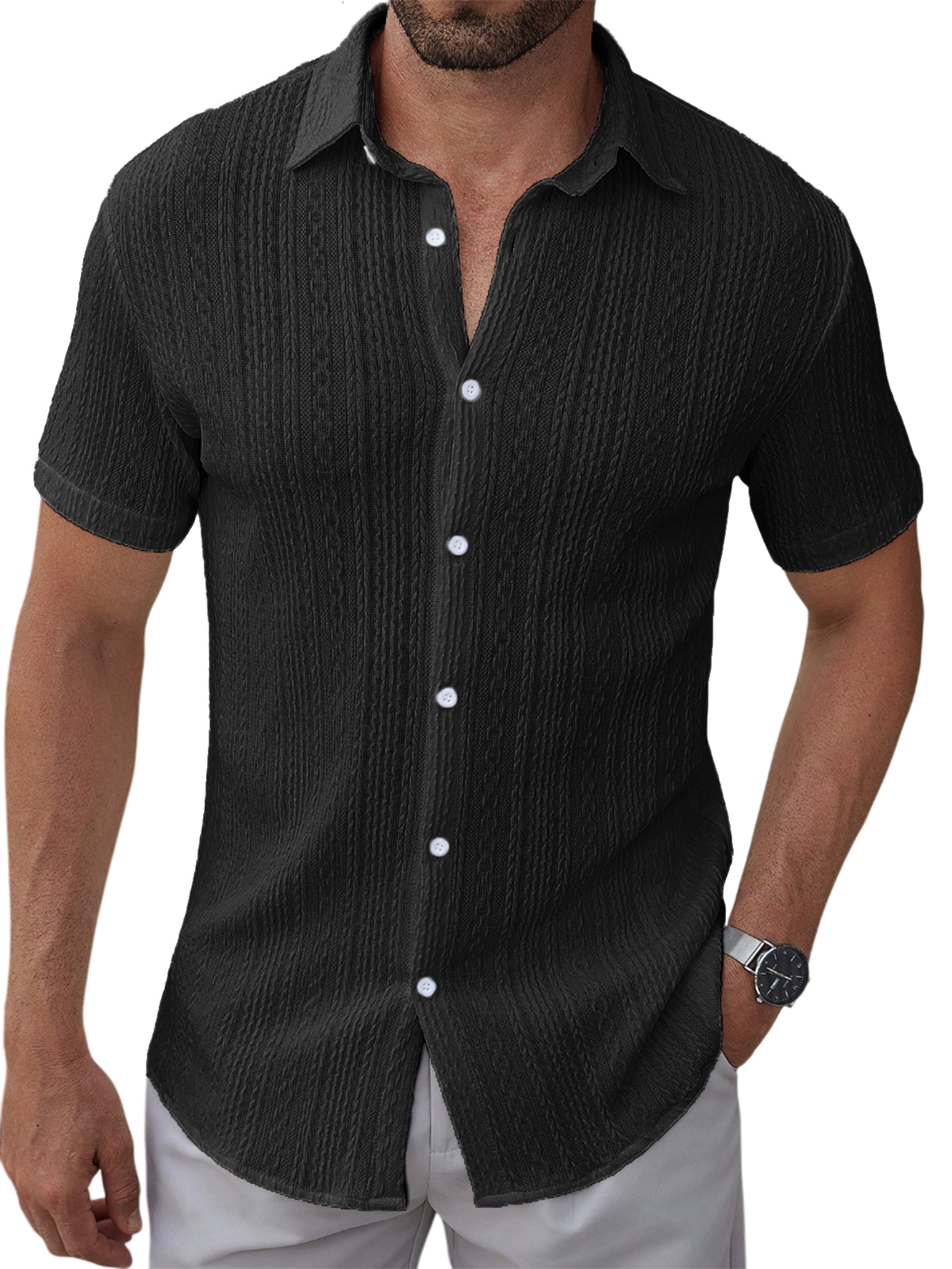 Men's Textured Jacquard Holiday Casual Lapel Short-sleeved Shirt
