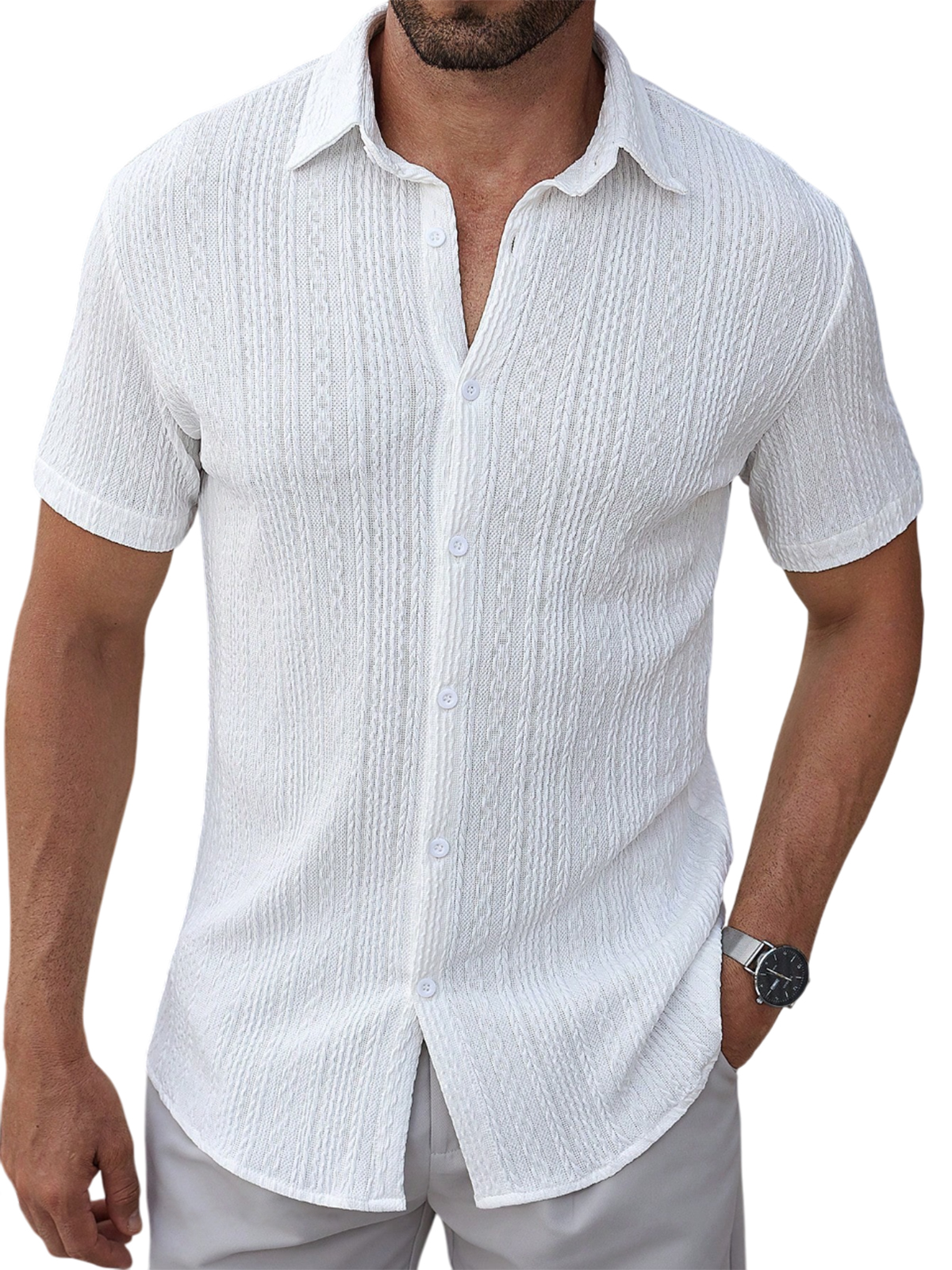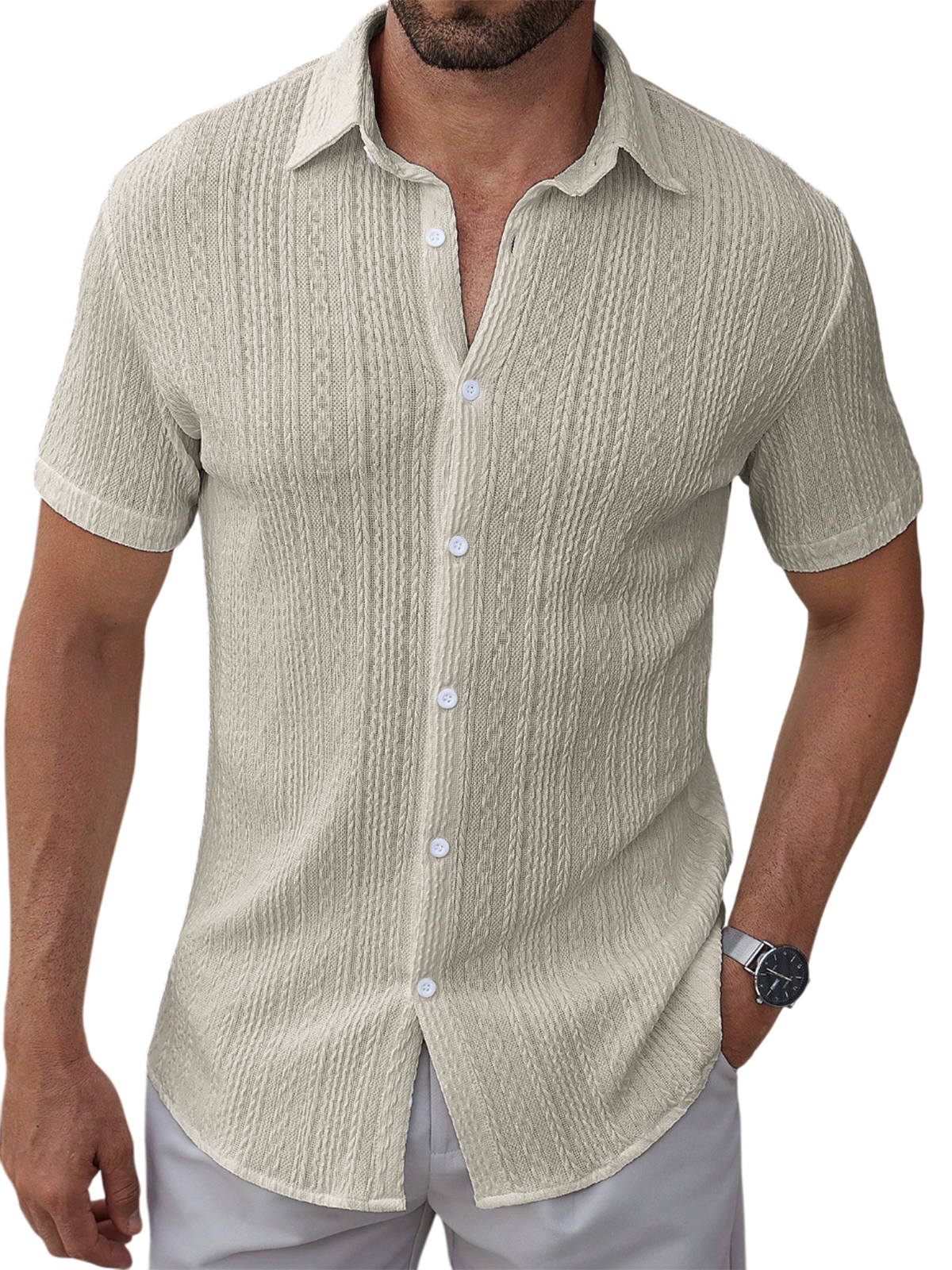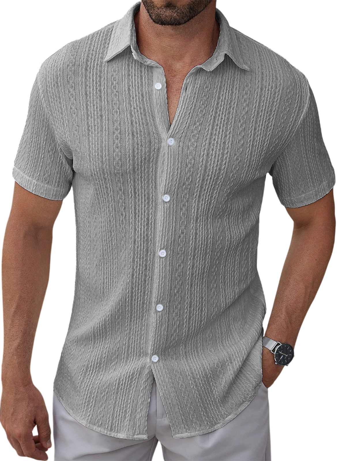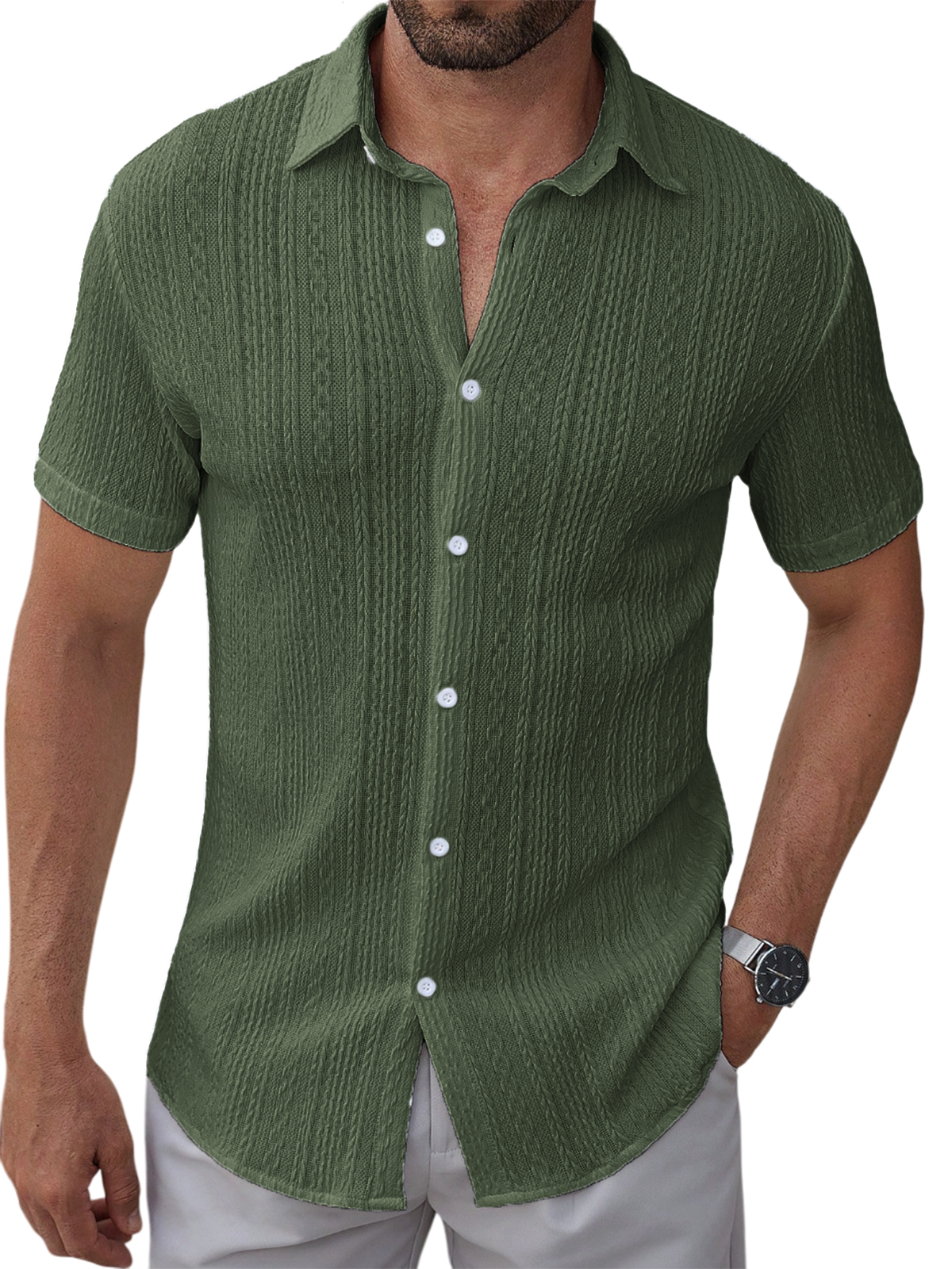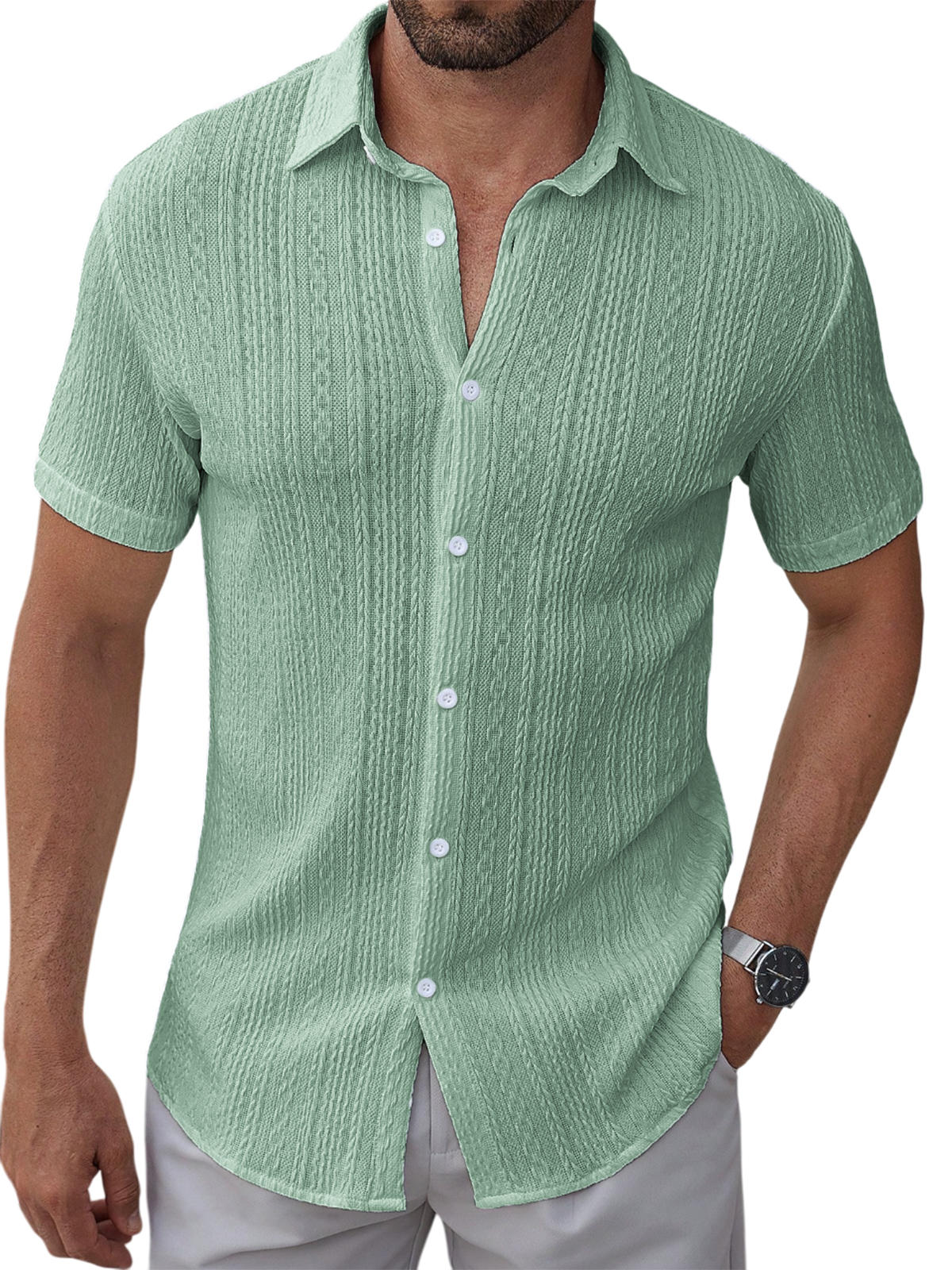 Men's Textured Jacquard Holiday Casual Lapel Short-sleeved Shirt