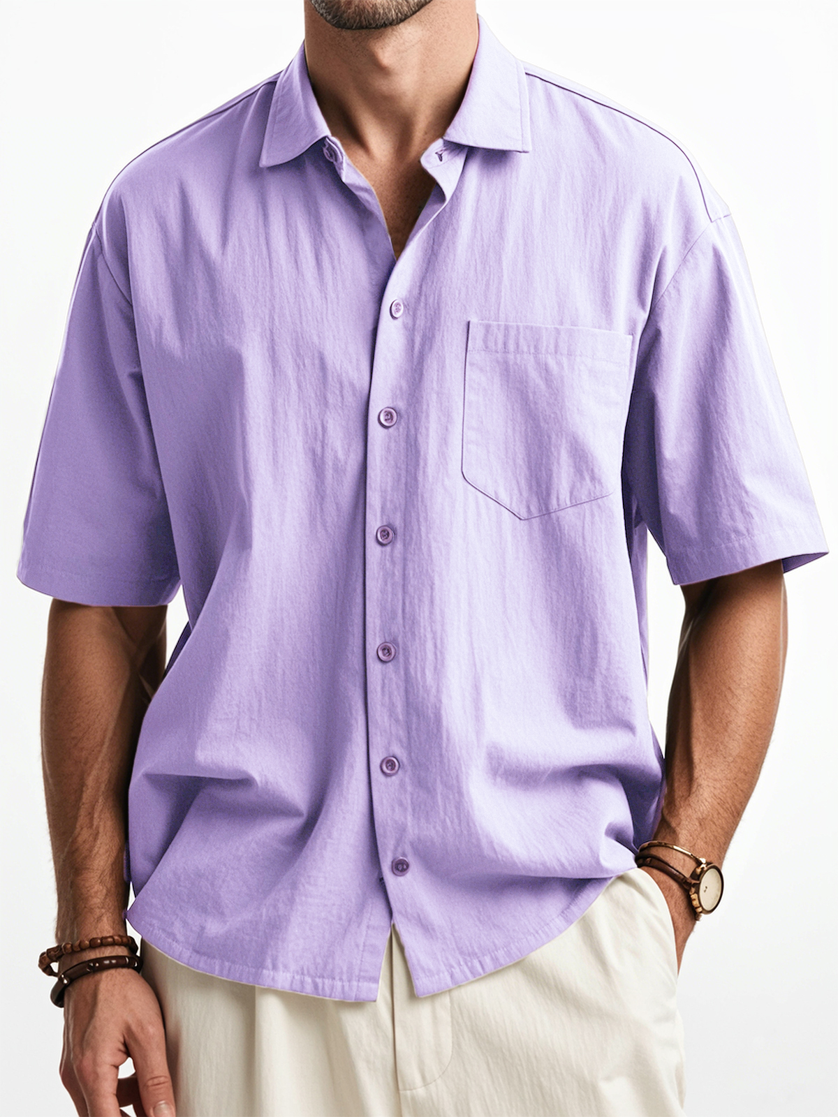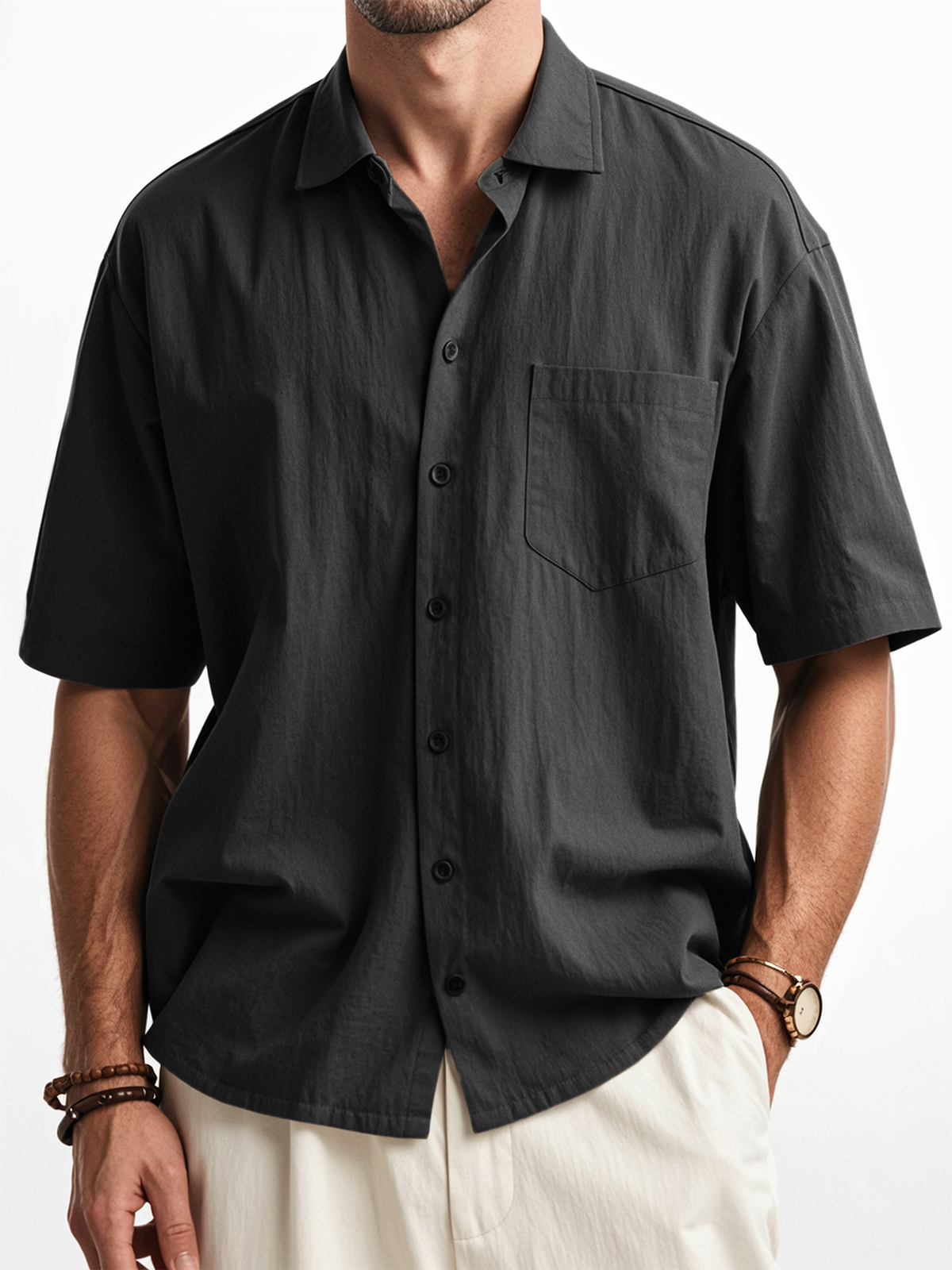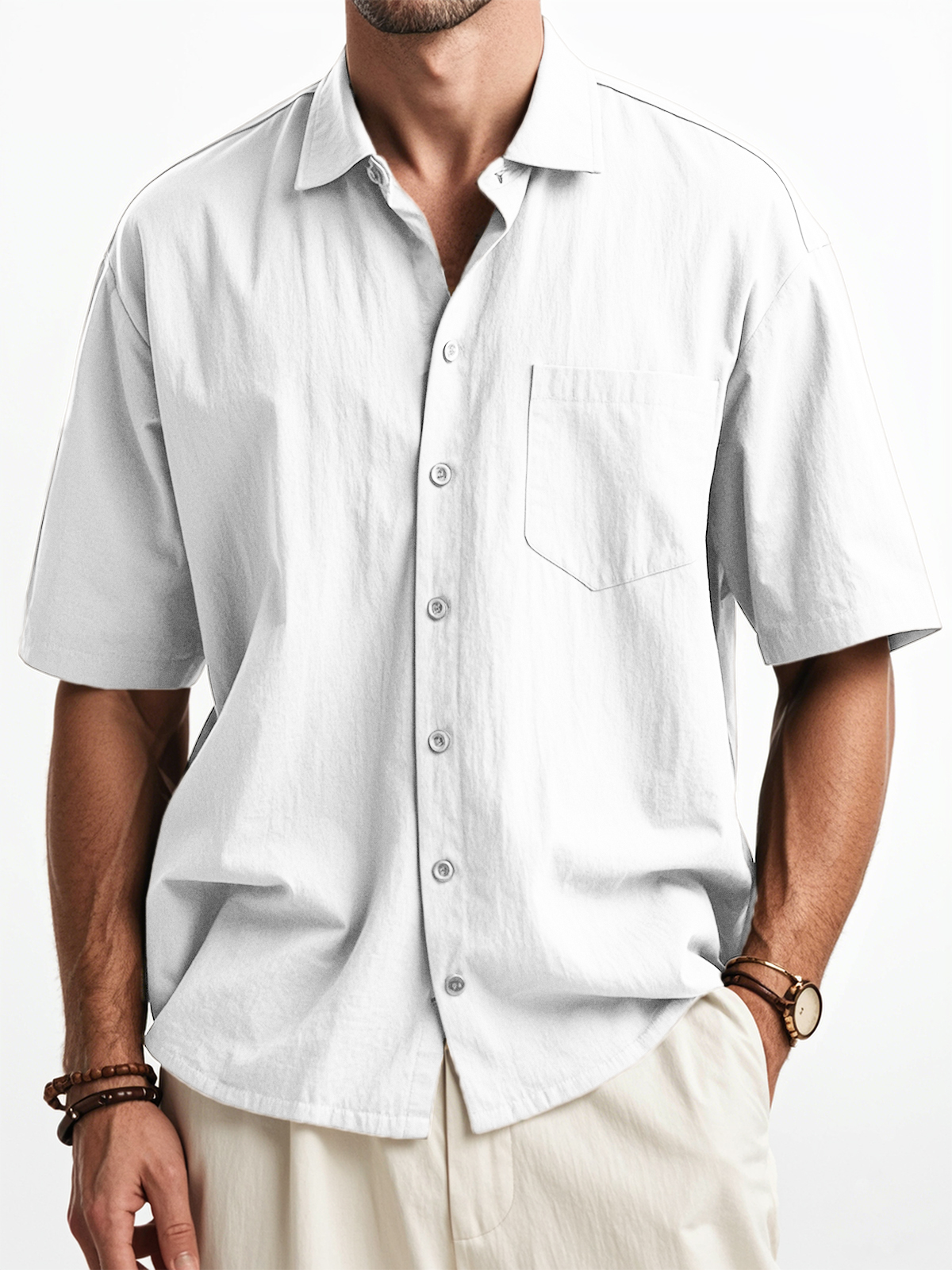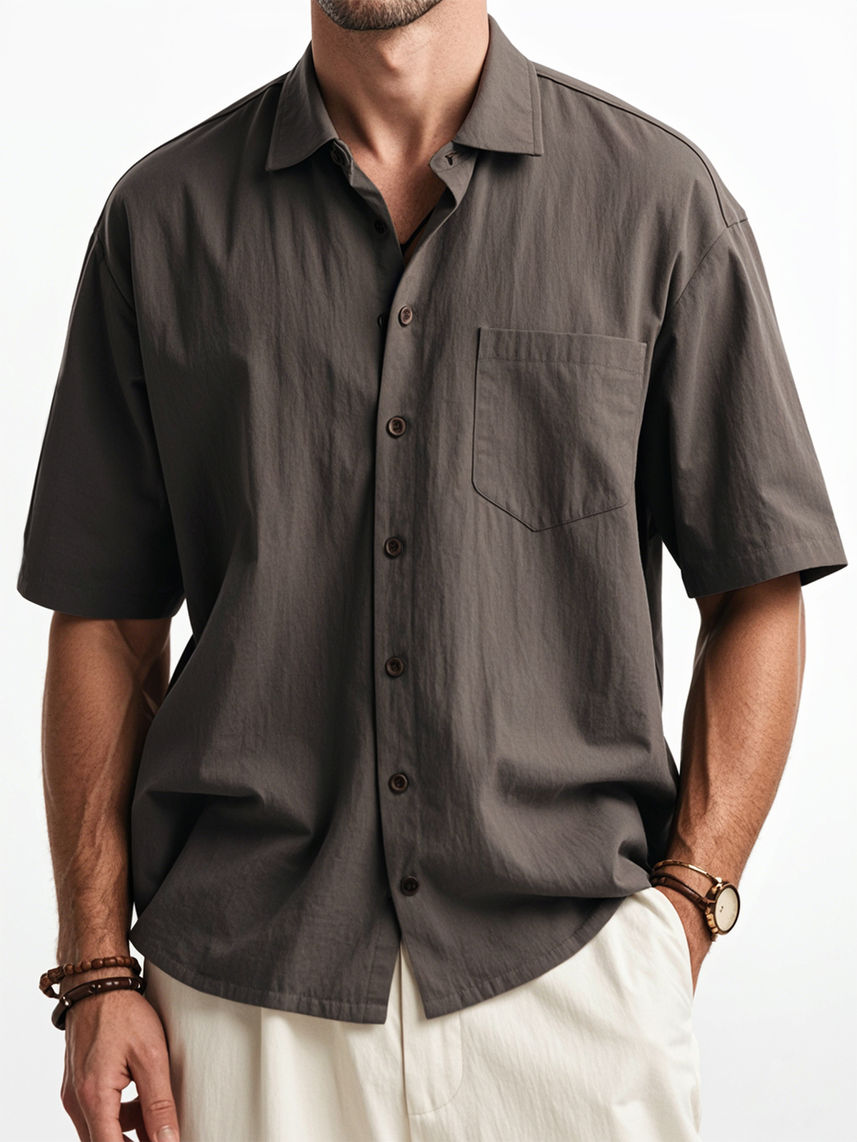 Men's Vintage Casual Lapel Short Shirt With Chest Pocket