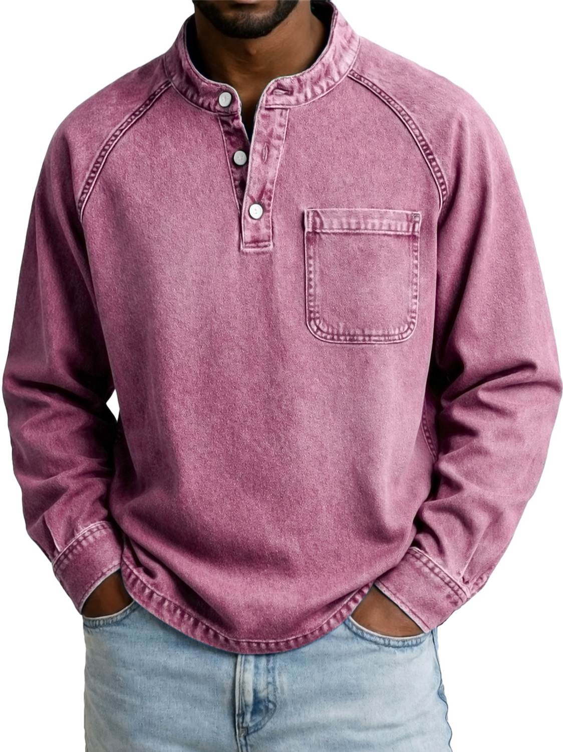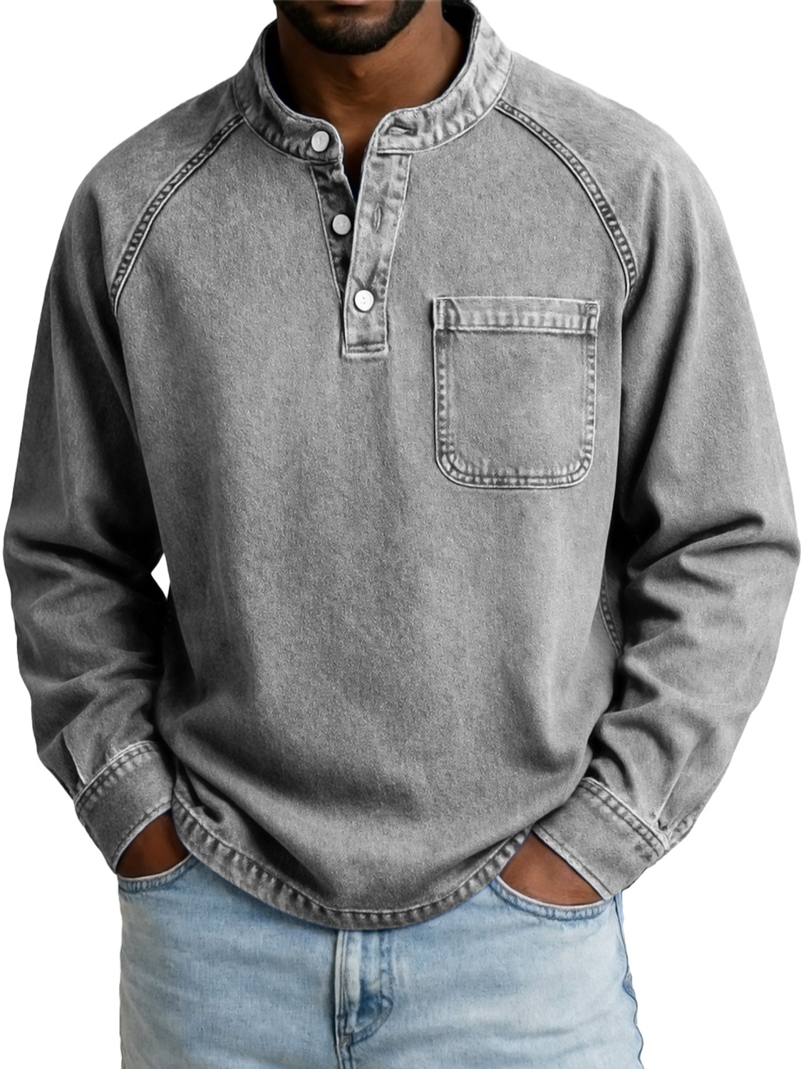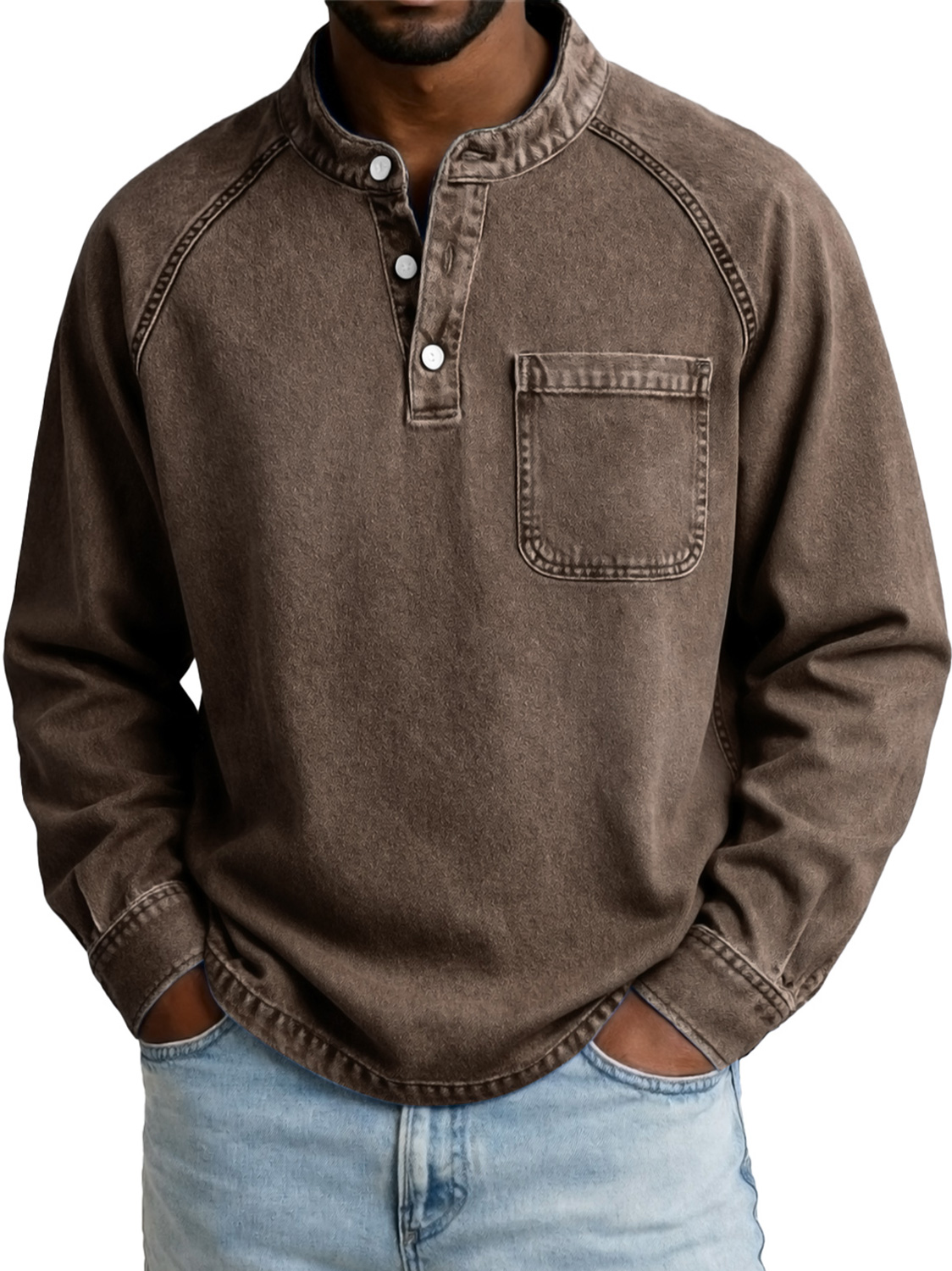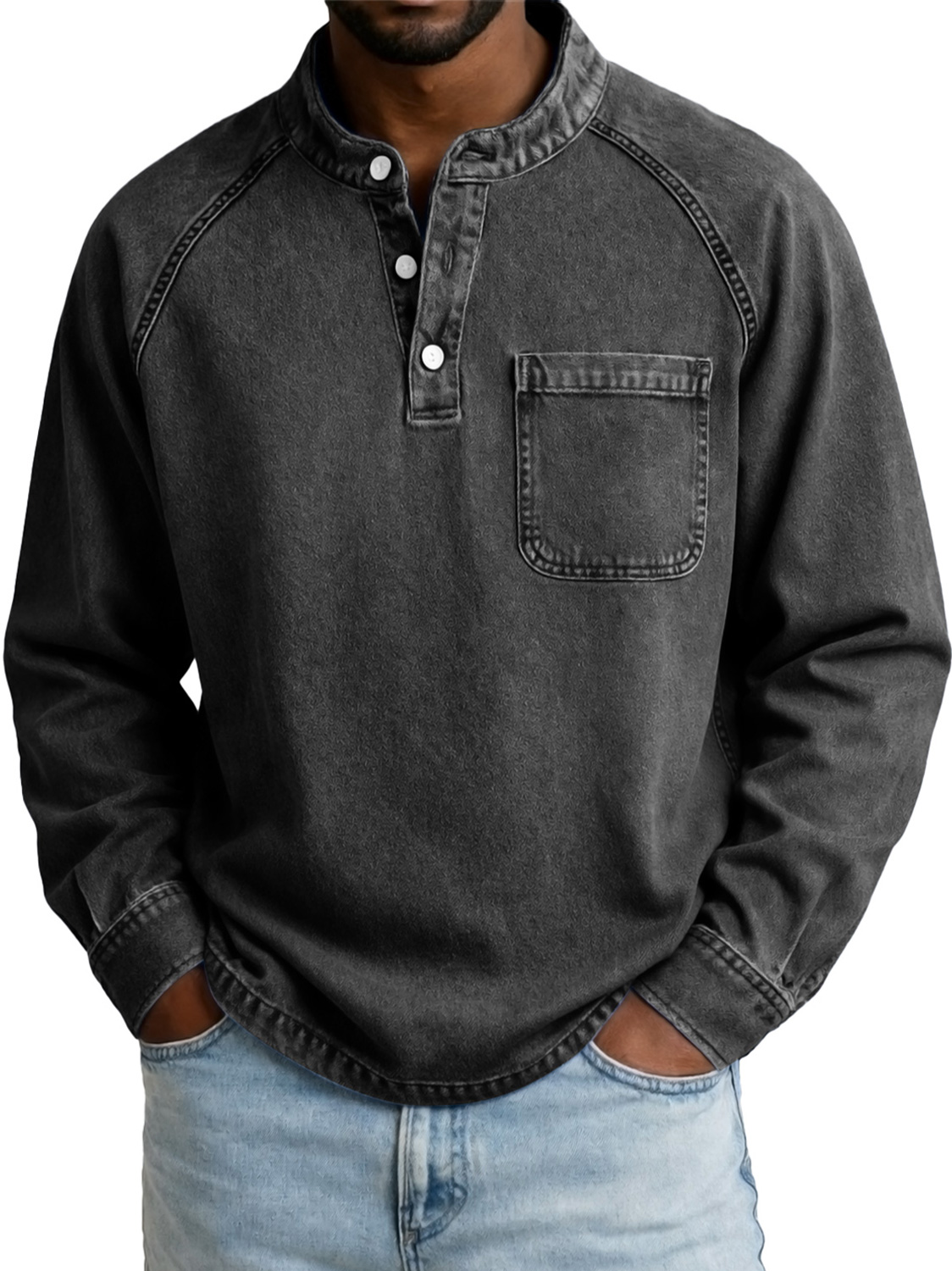Men's Vintage Casual Raglan Sleeve Pocket Long-sleeved Henley Shirt