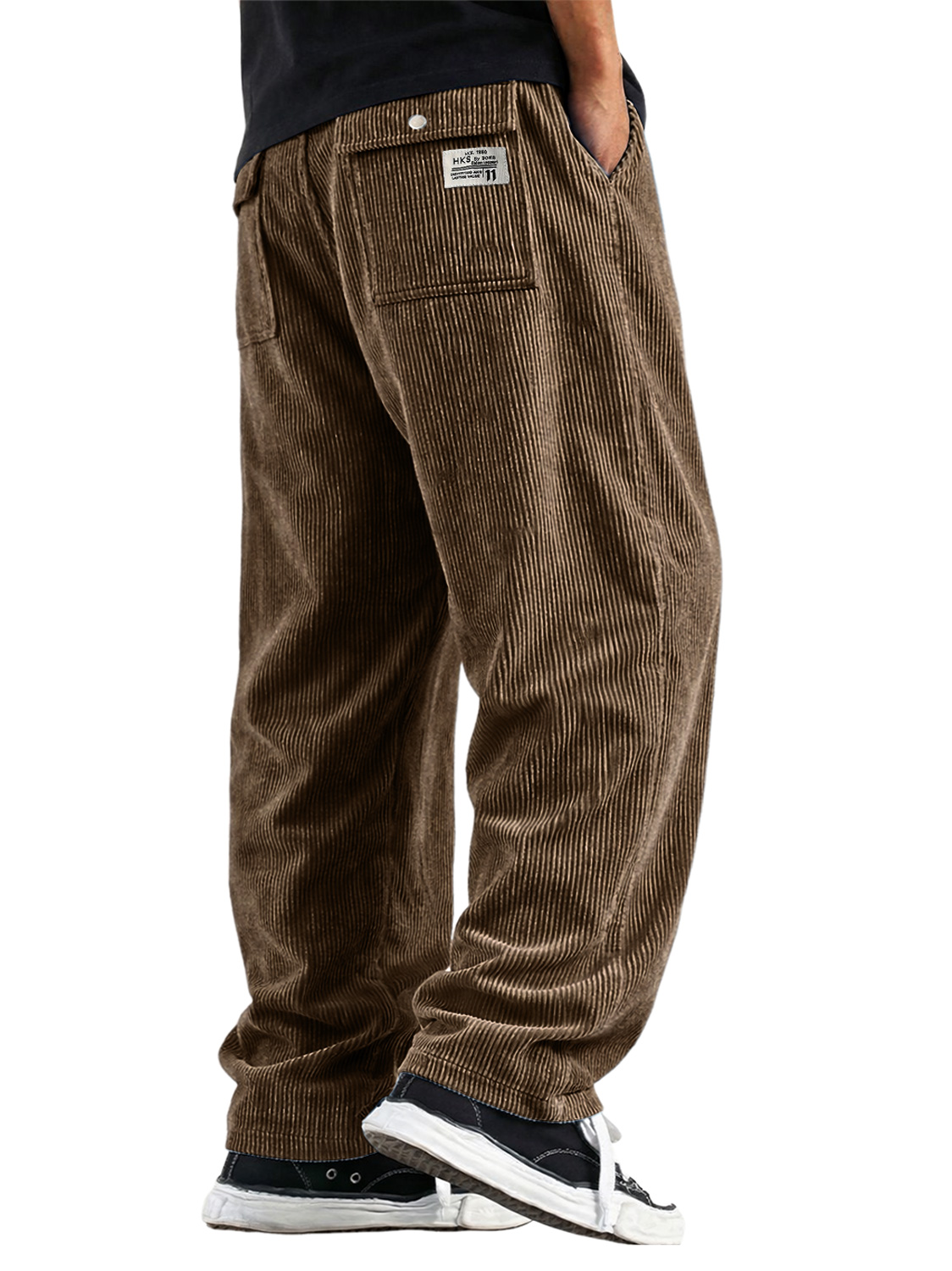 Men's Vintage Corduroy Multi-pocket Casual Loose-fitting Trousers With Embroidered Logo