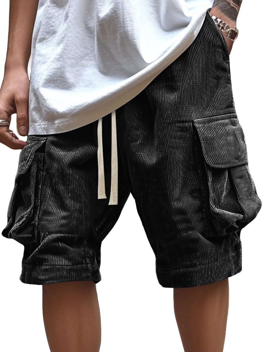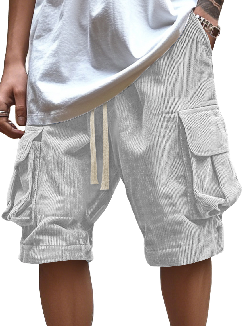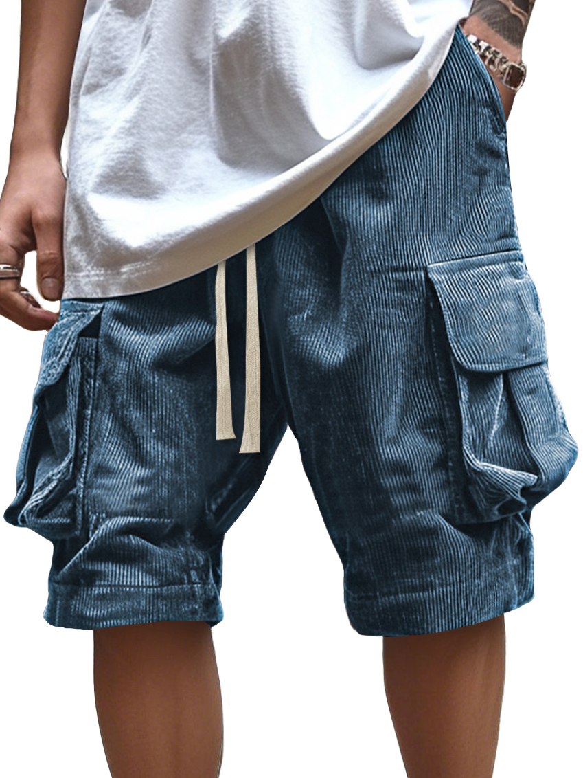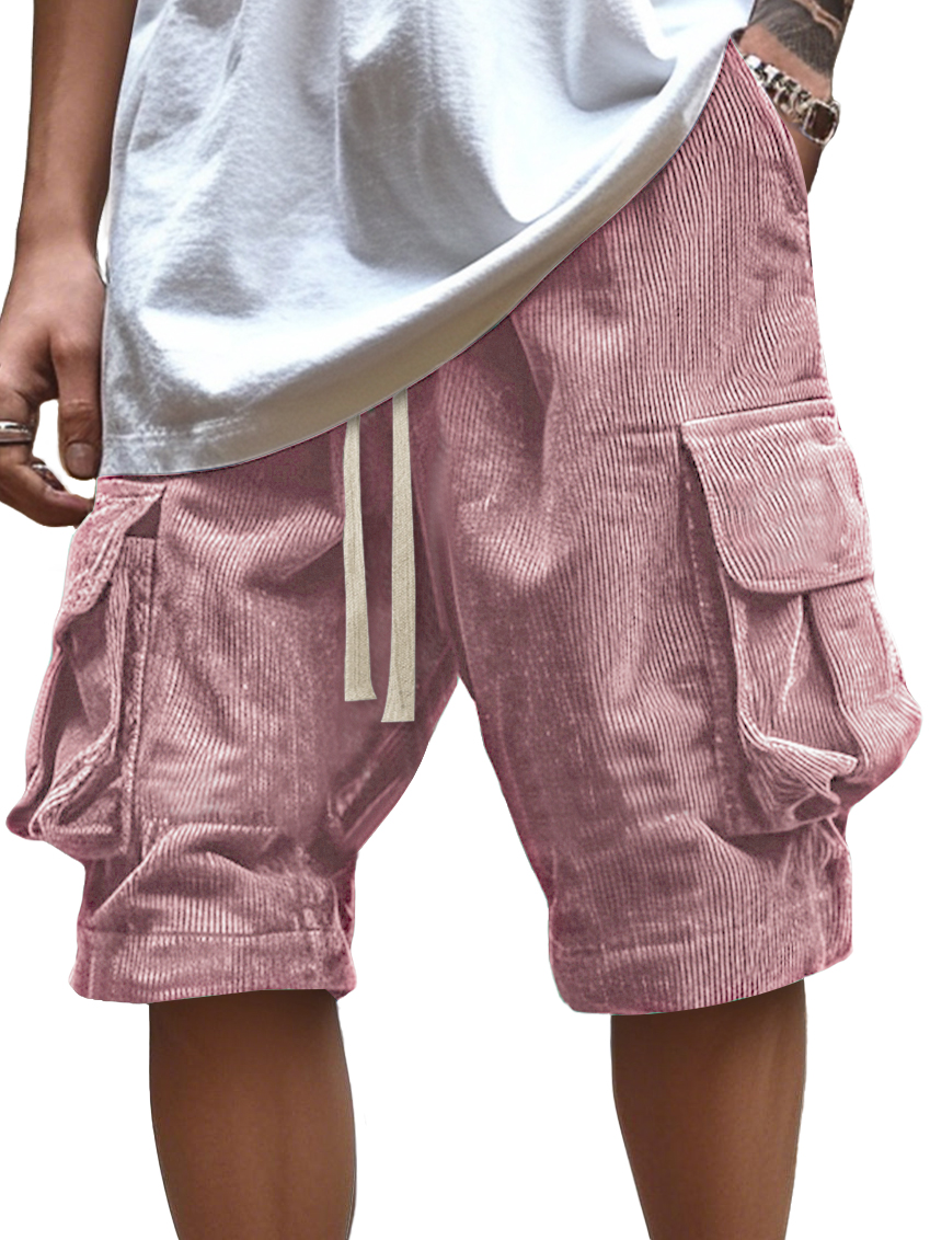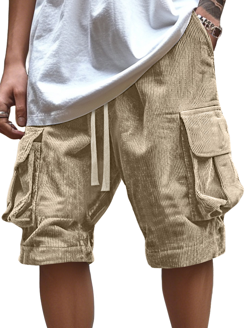 Men's Vintage Corduroy Multi-Pocket Elastic Waist Casual Work Shorts