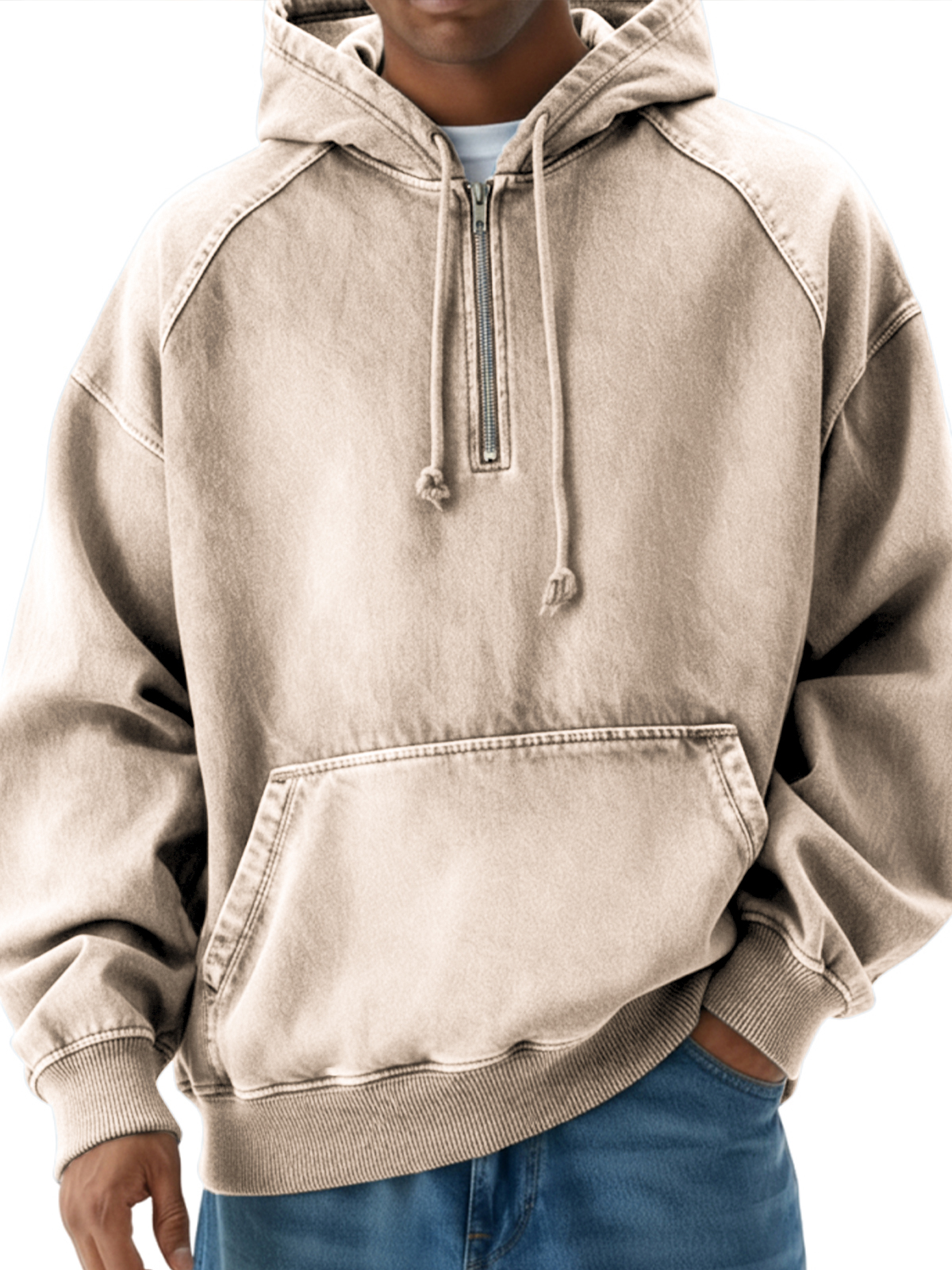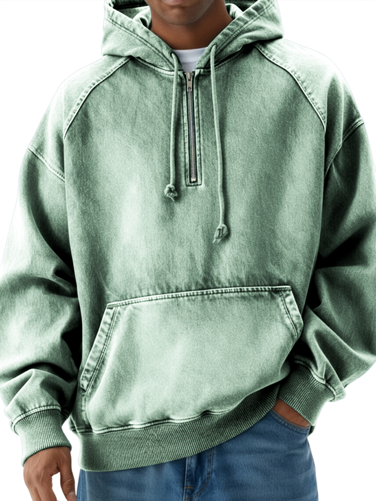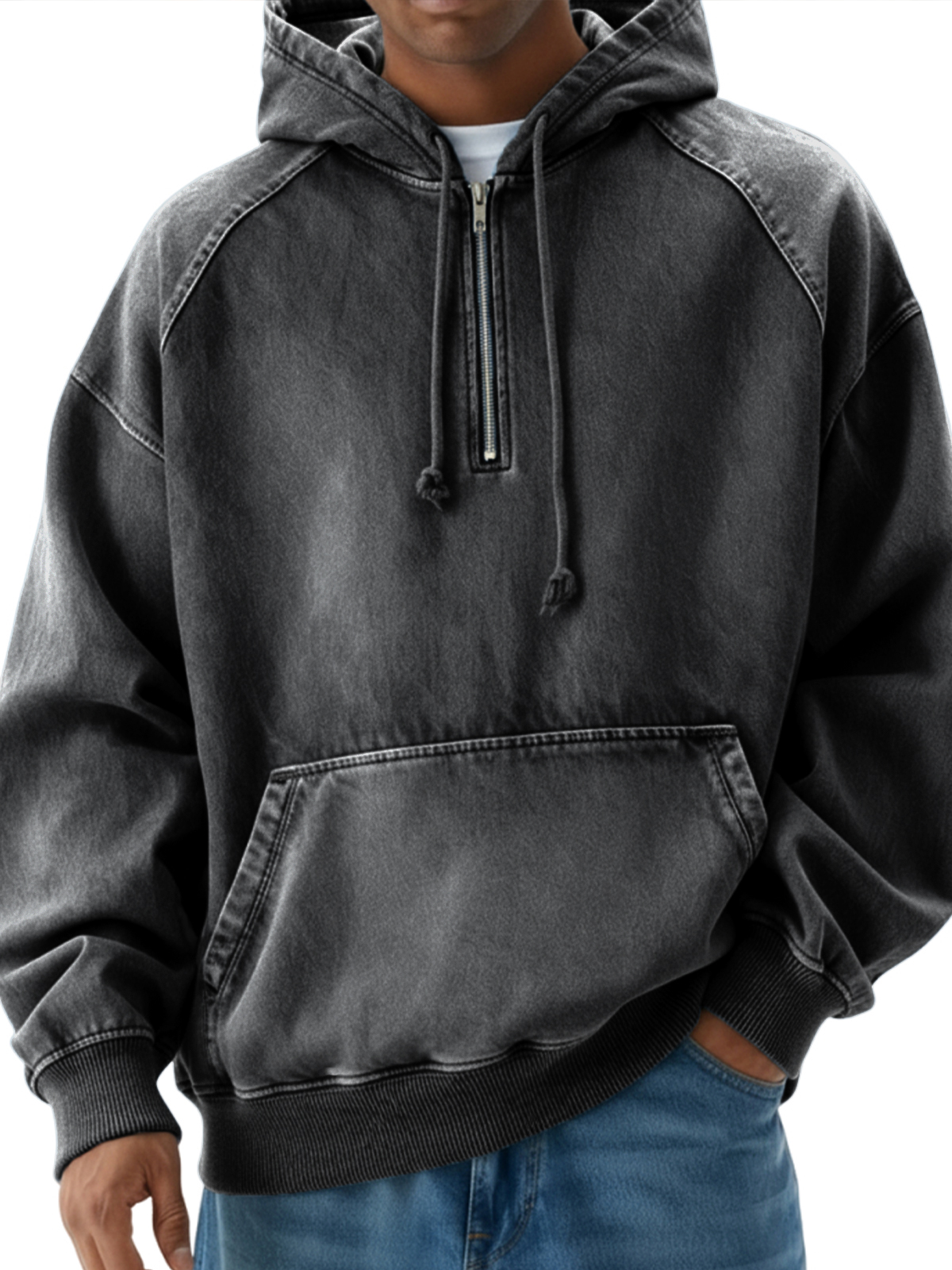 Men's Vintage Distressed Raglan Quarter-zip Pullover Hoodie