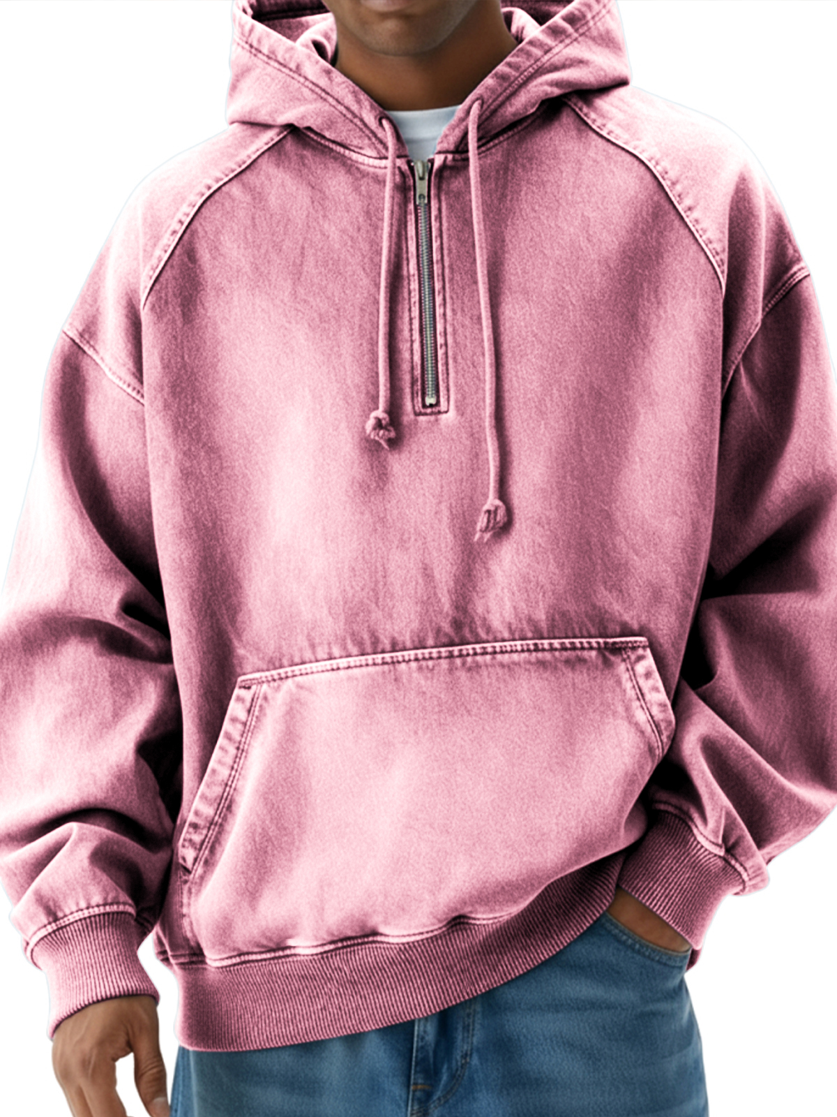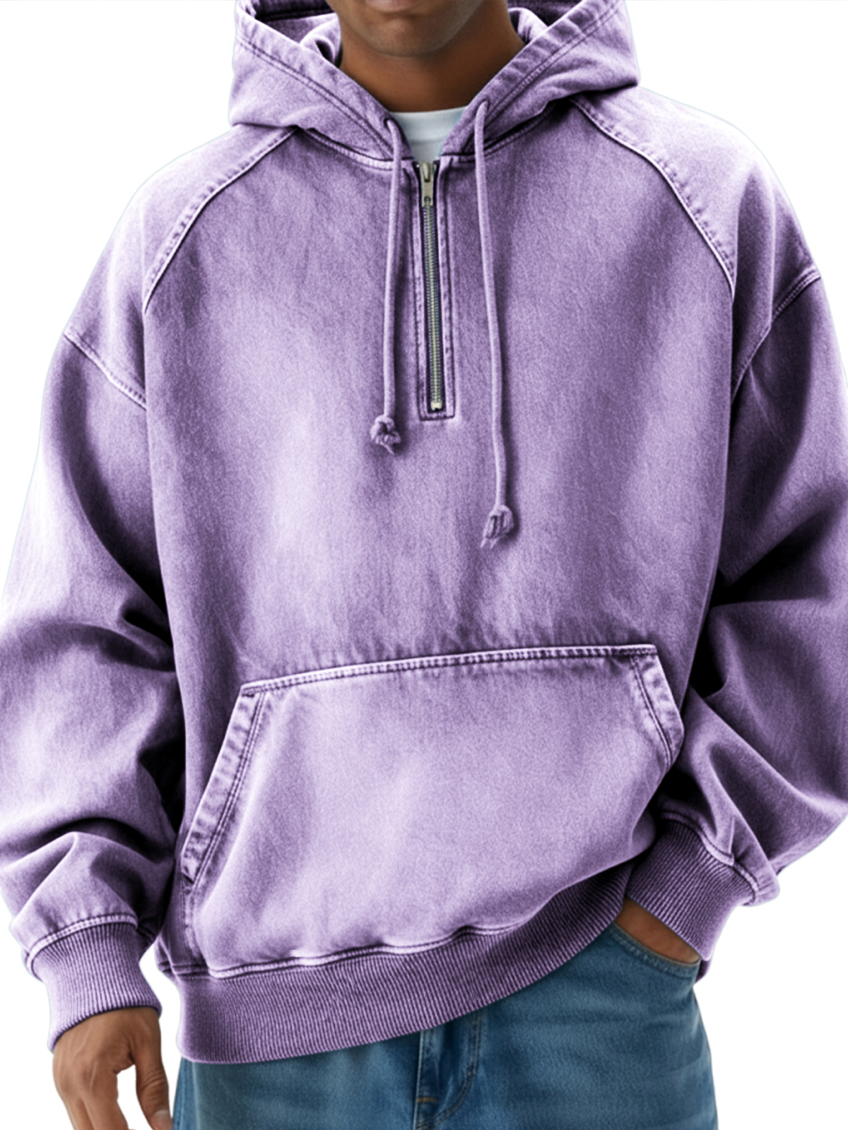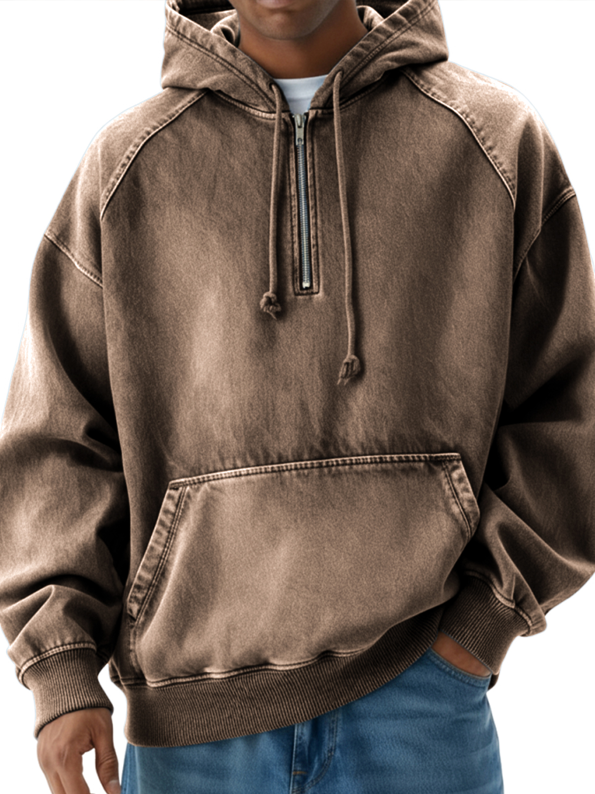 Men's Vintage Distressed Raglan Quarter-zip Pullover Hoodie