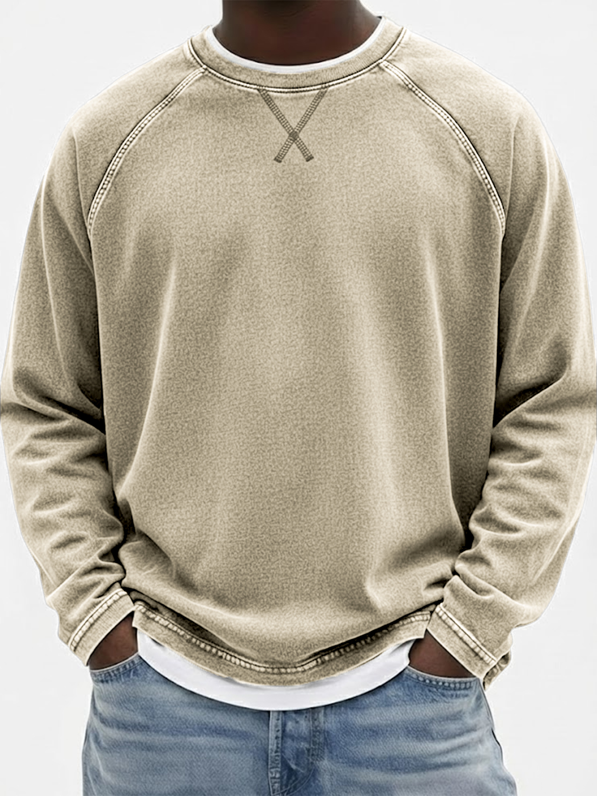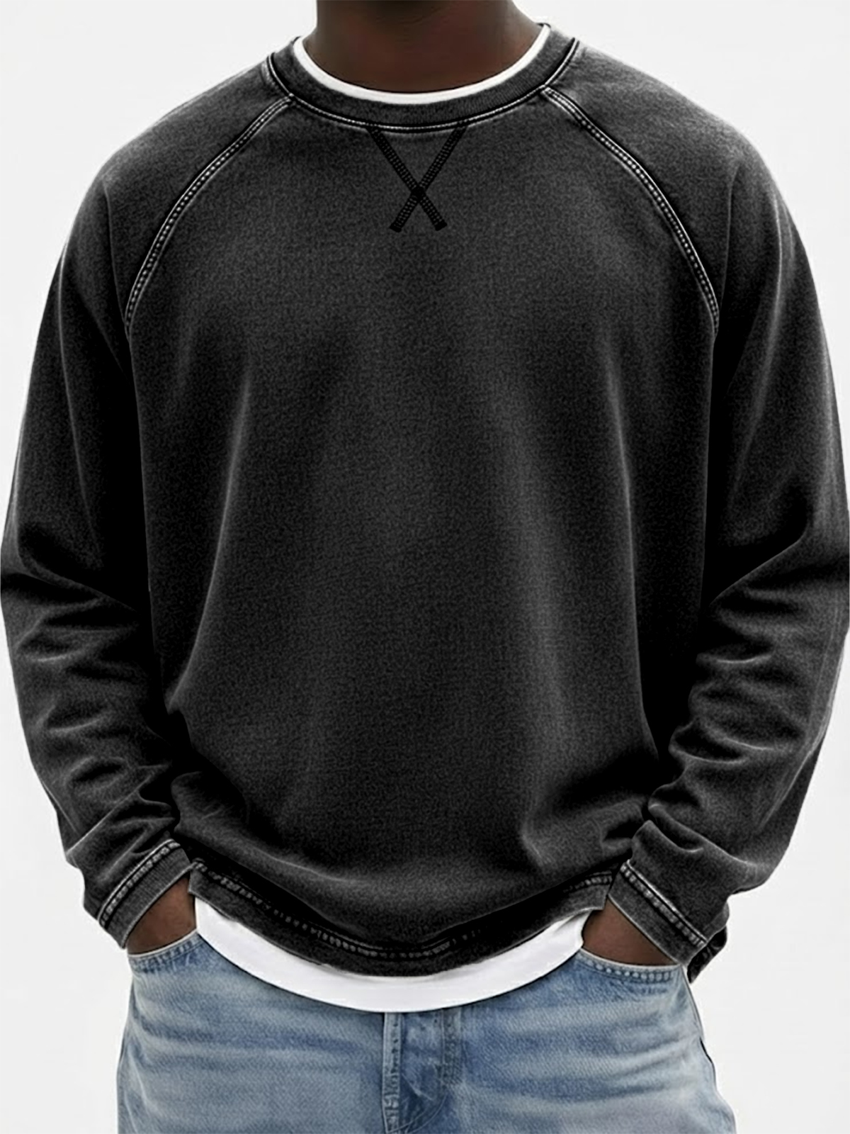 Men's Vintage Dyed Raglan Embroidered Patchwork Pullover Casual T-Shirt