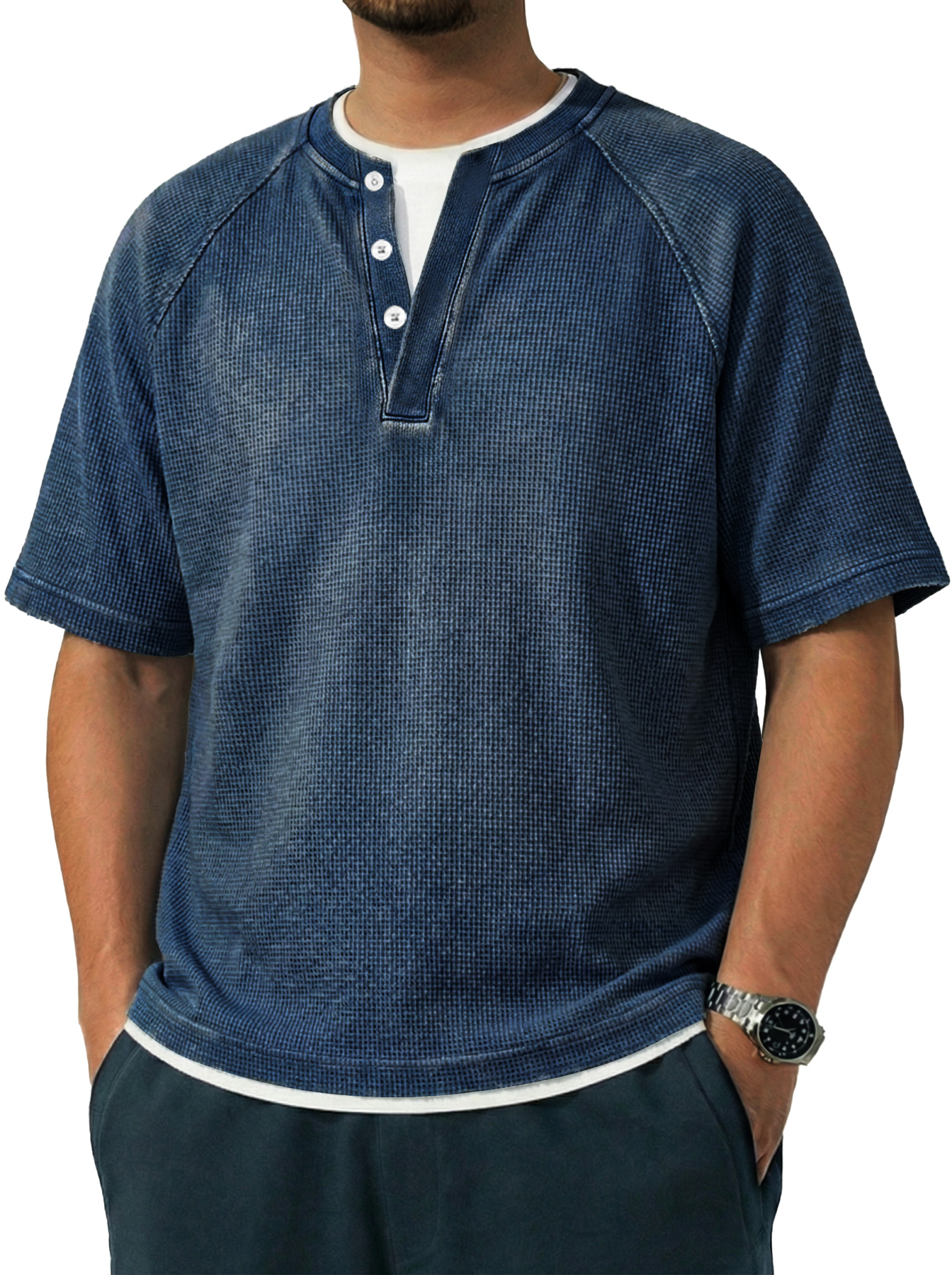 Men's Vintage Raglan Sleeve Pocket Casual Henley Shirt