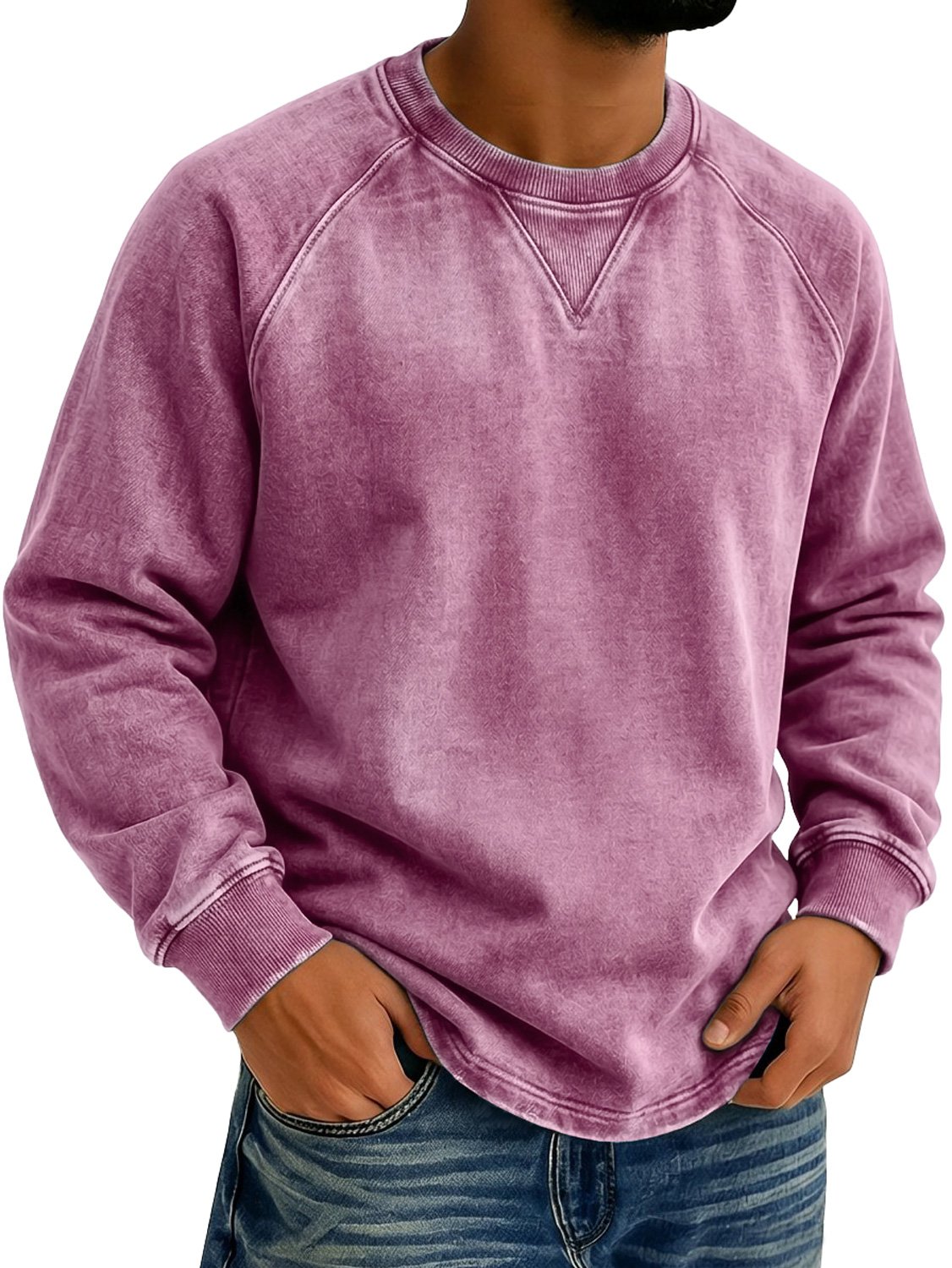 Men's Vintage-style Crew Neck Casual Long-sleeved T-shirt With Raglan Sleeves