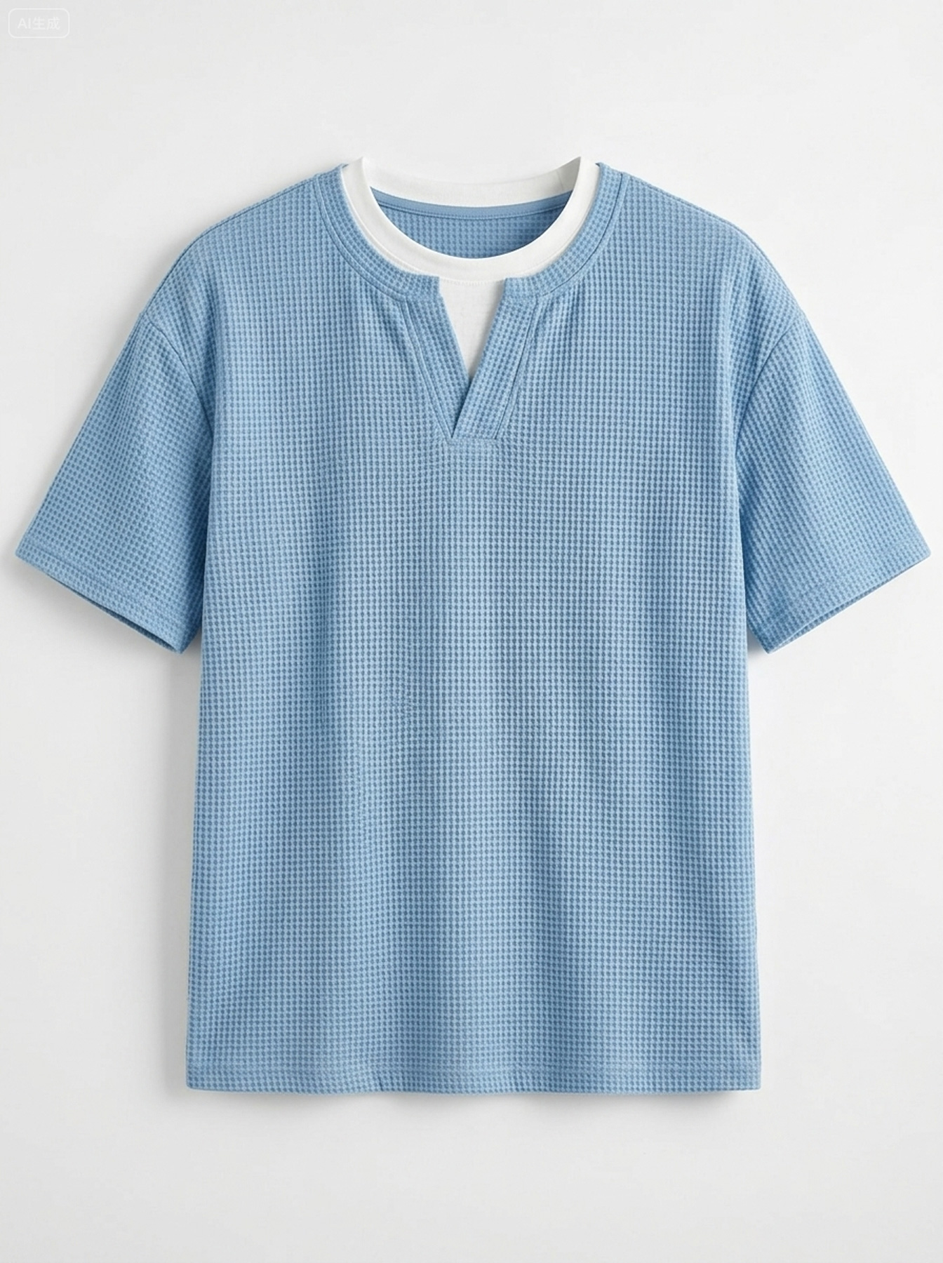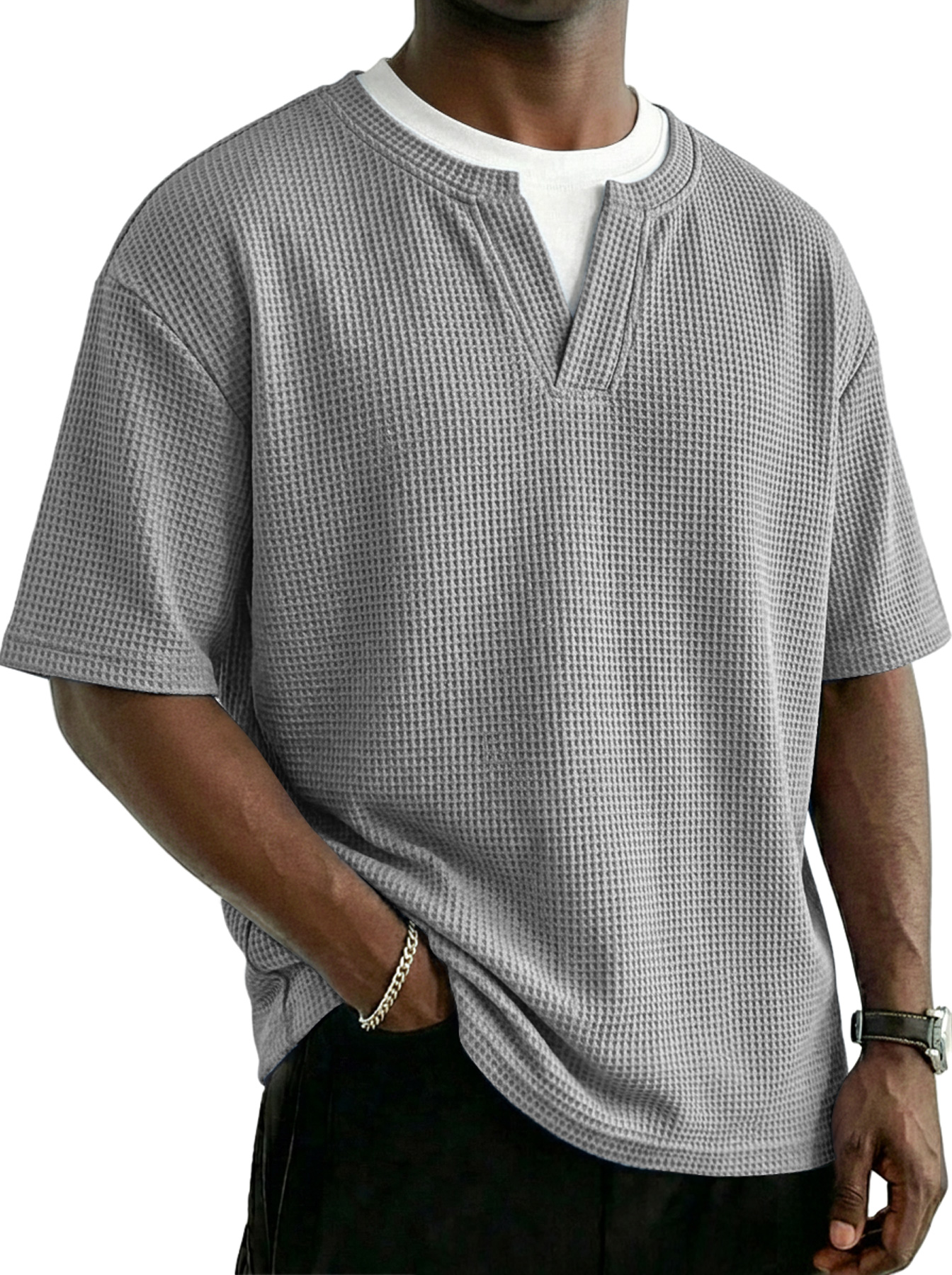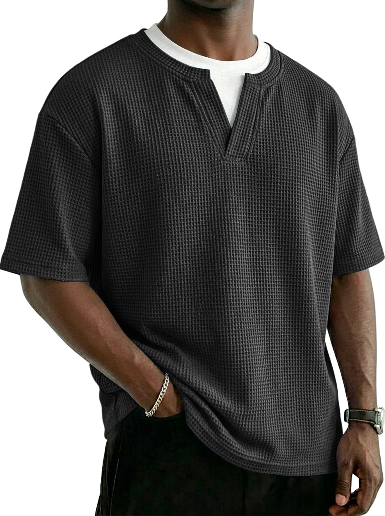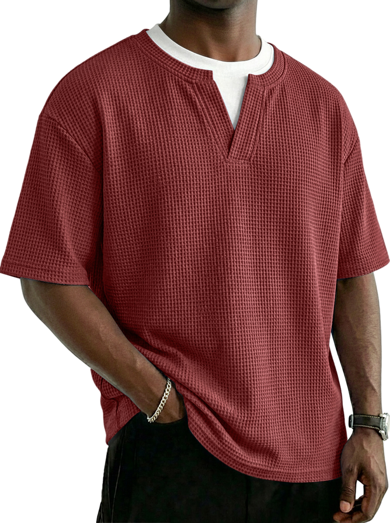 Men's Waffle-knit Faux Two-piece Casual Solid Color Short-sleeved T-shirt