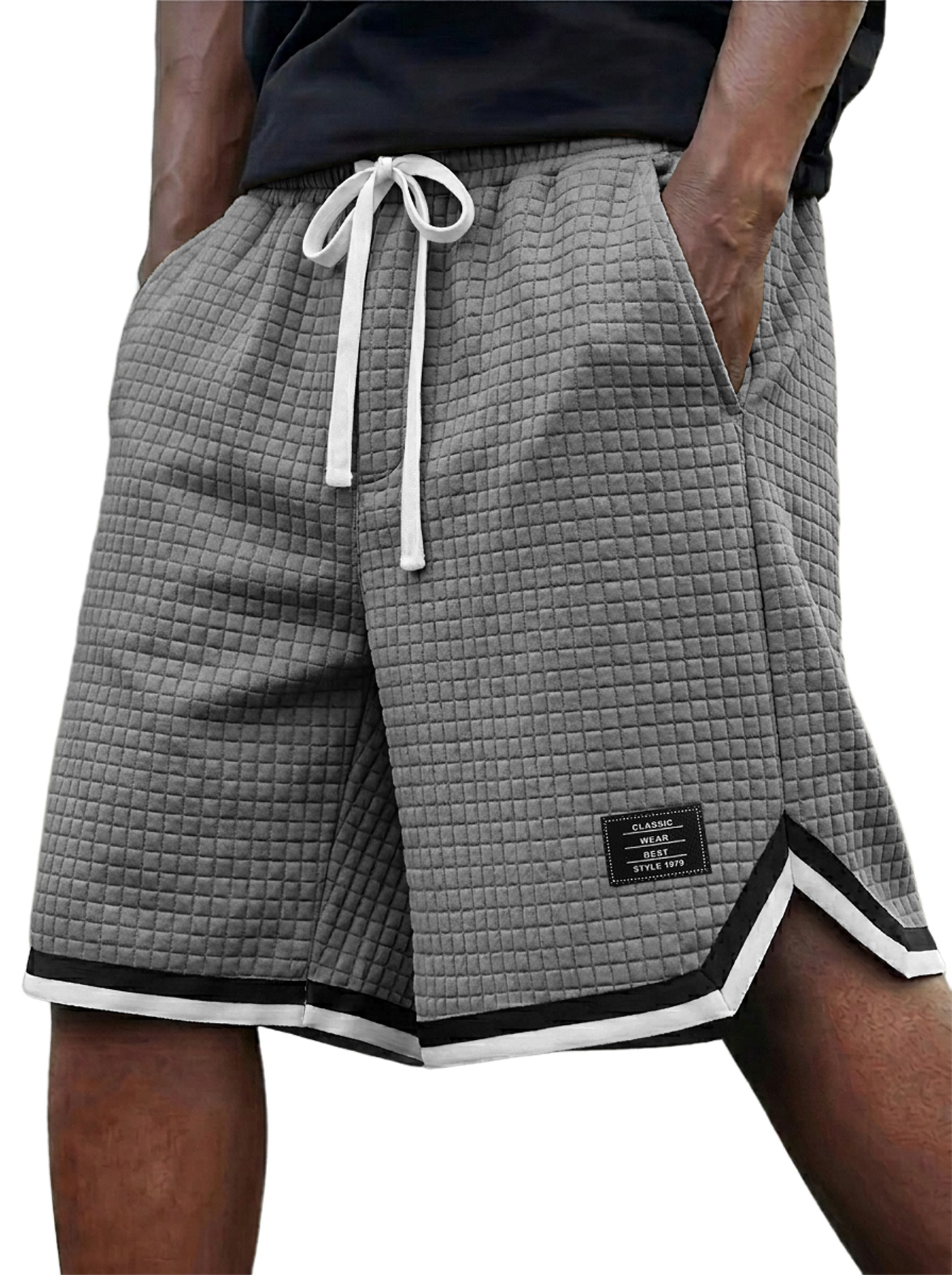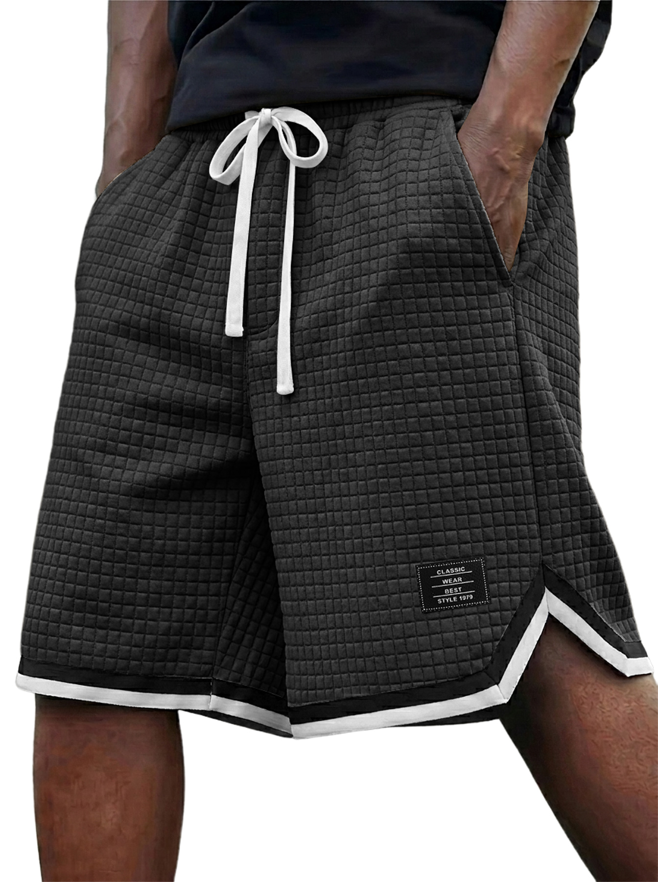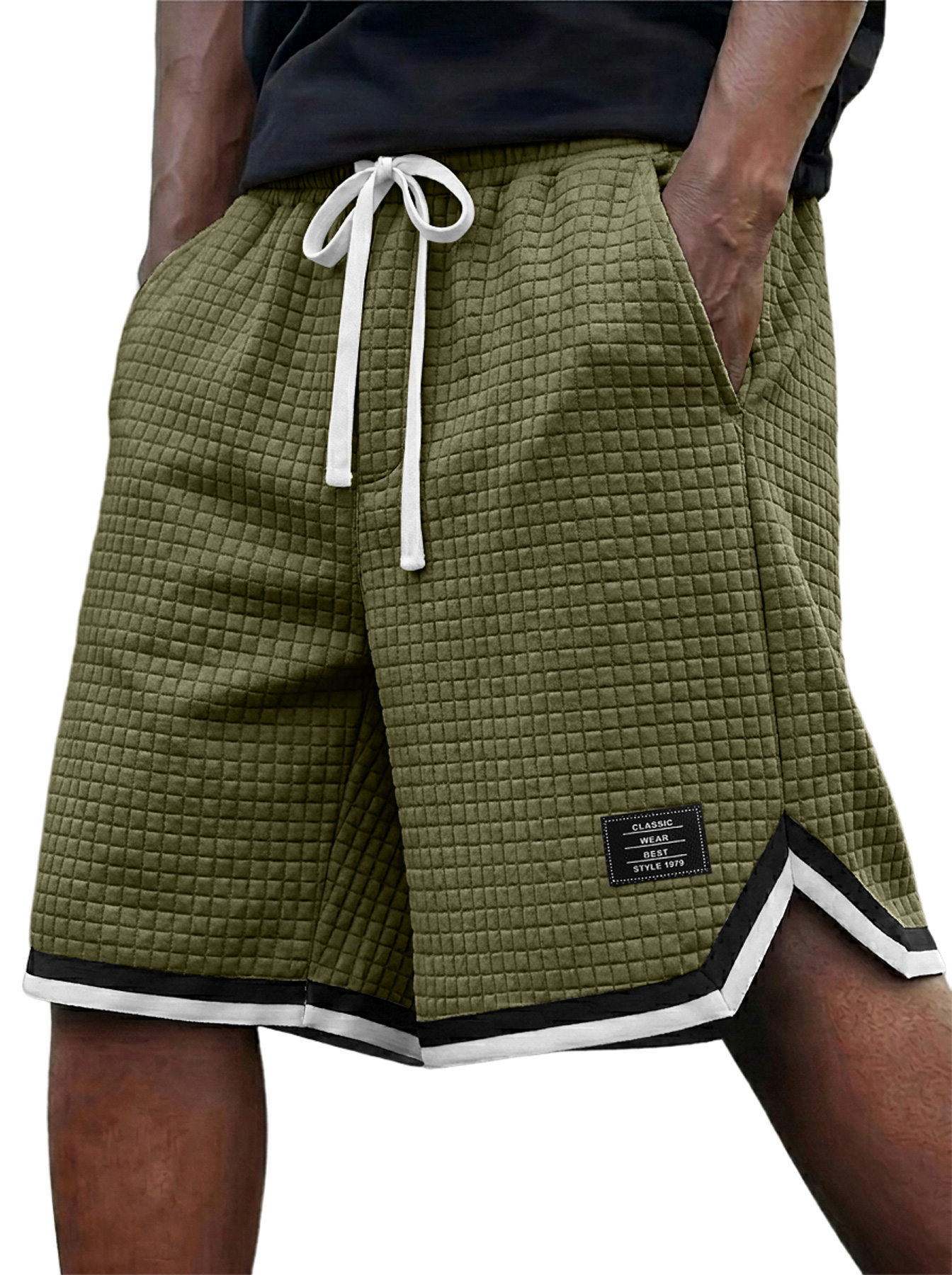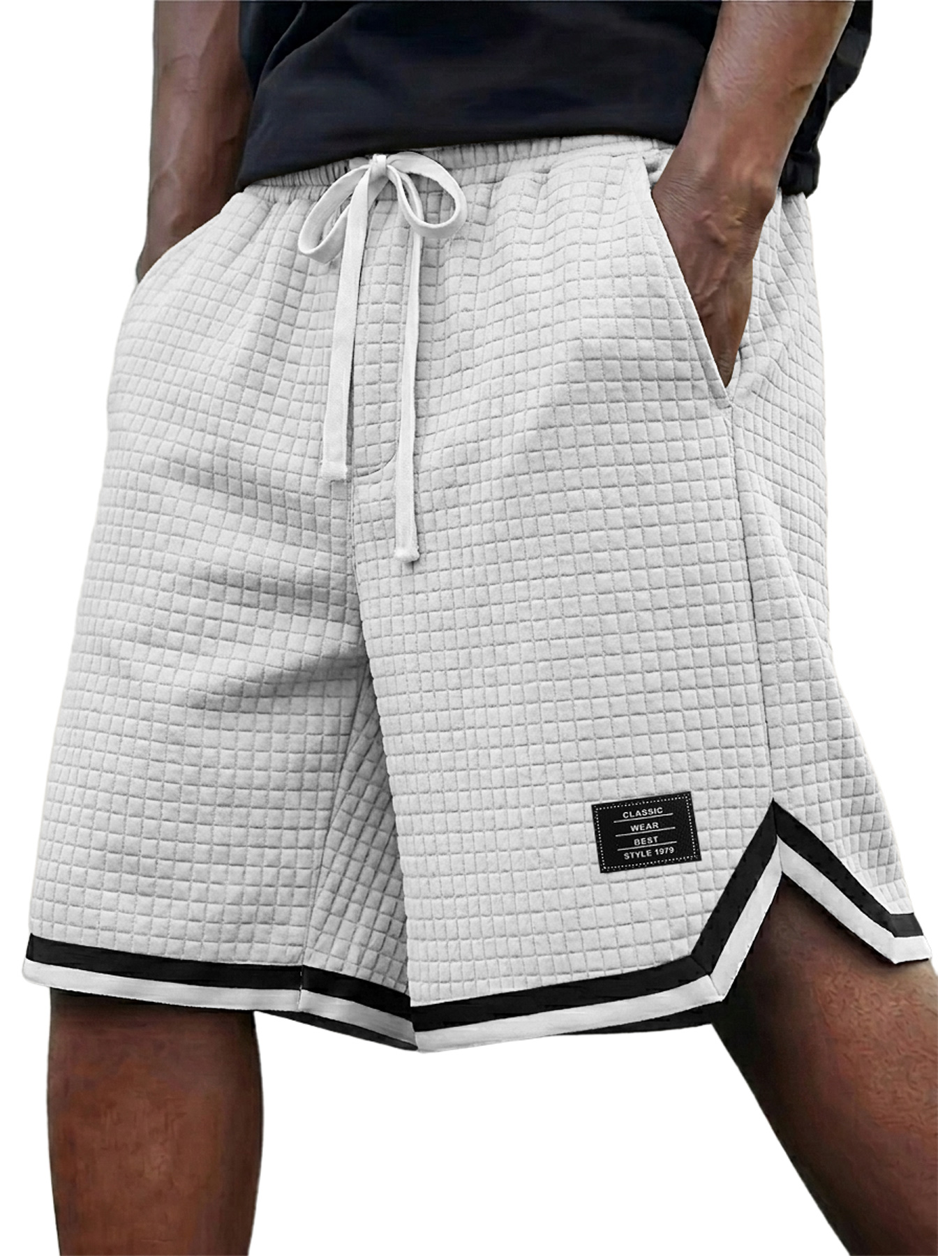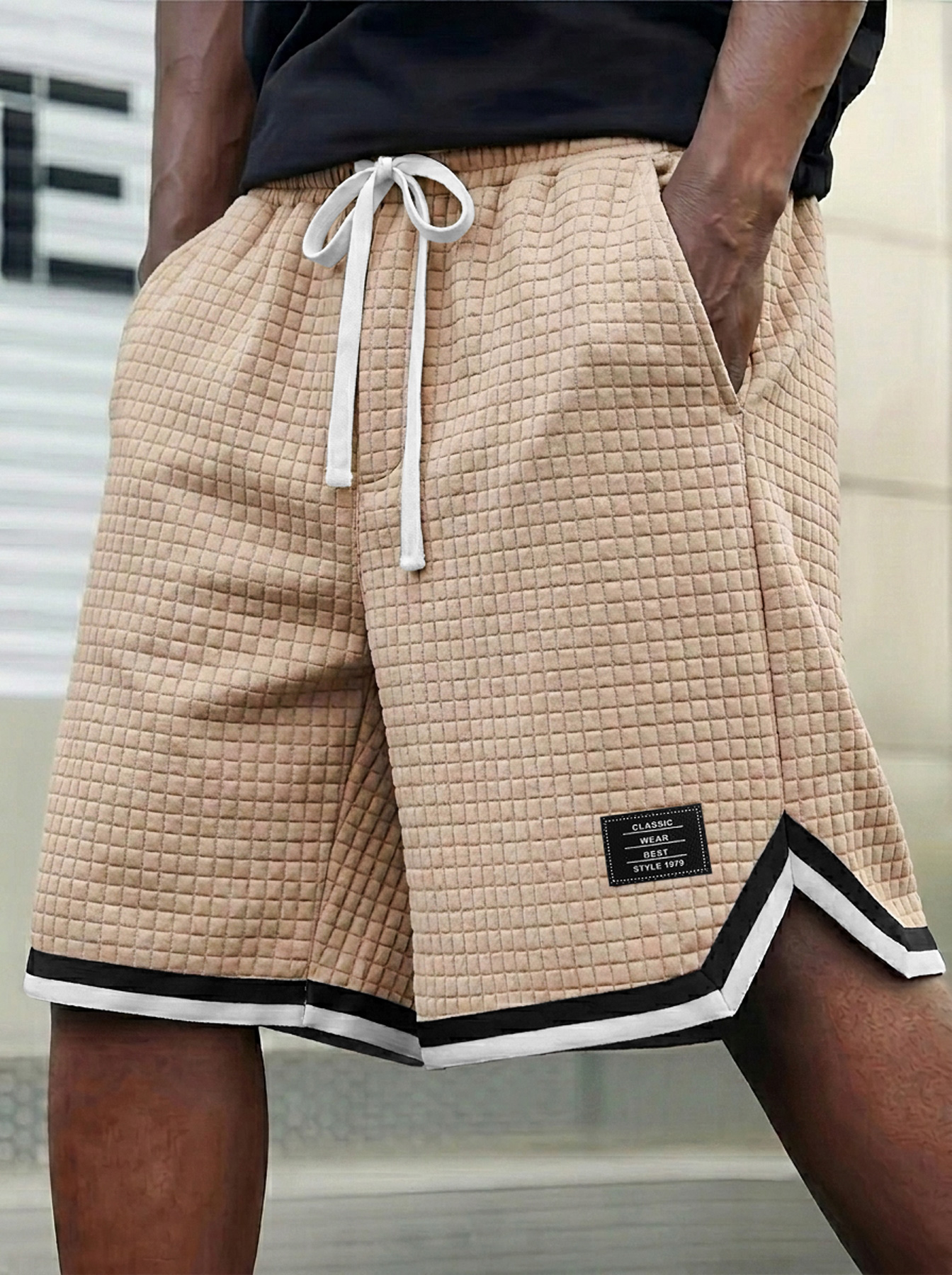 Men's Waffle Weave Ribbon Embroidered Logo Casual Shorts