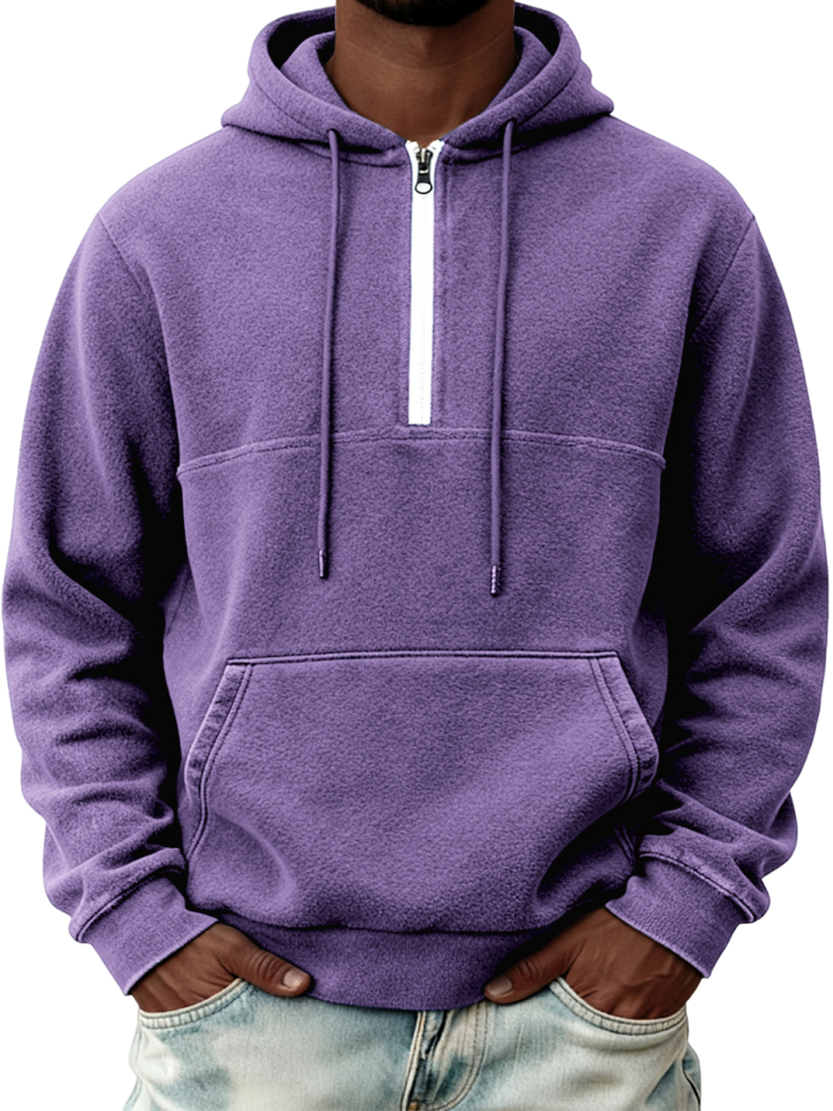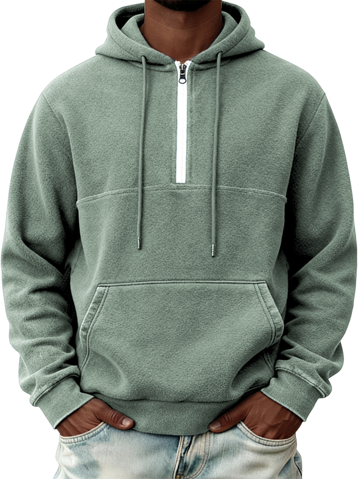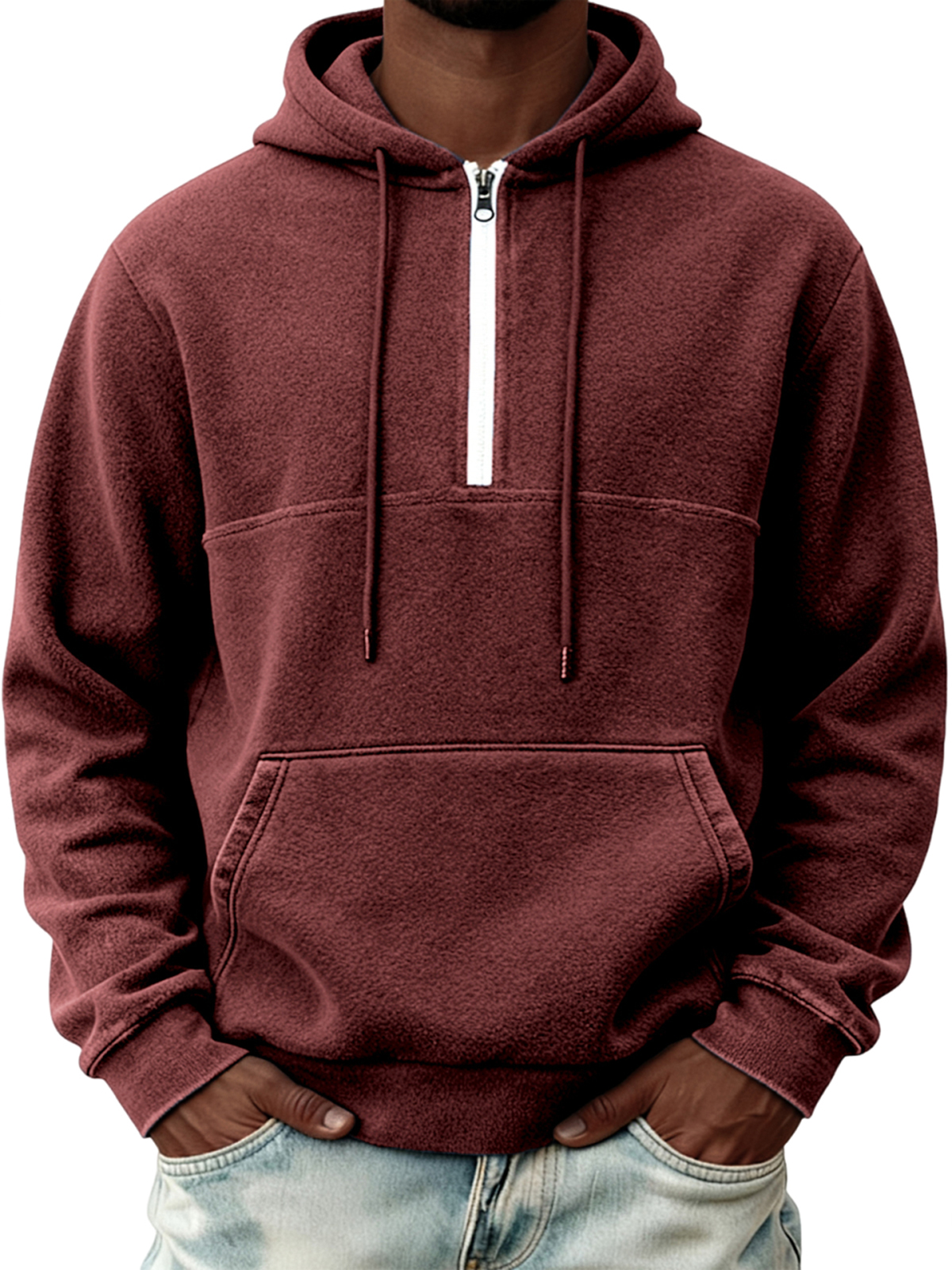Men's Warm Fleece Half-zip Hooded Sweatshirt
