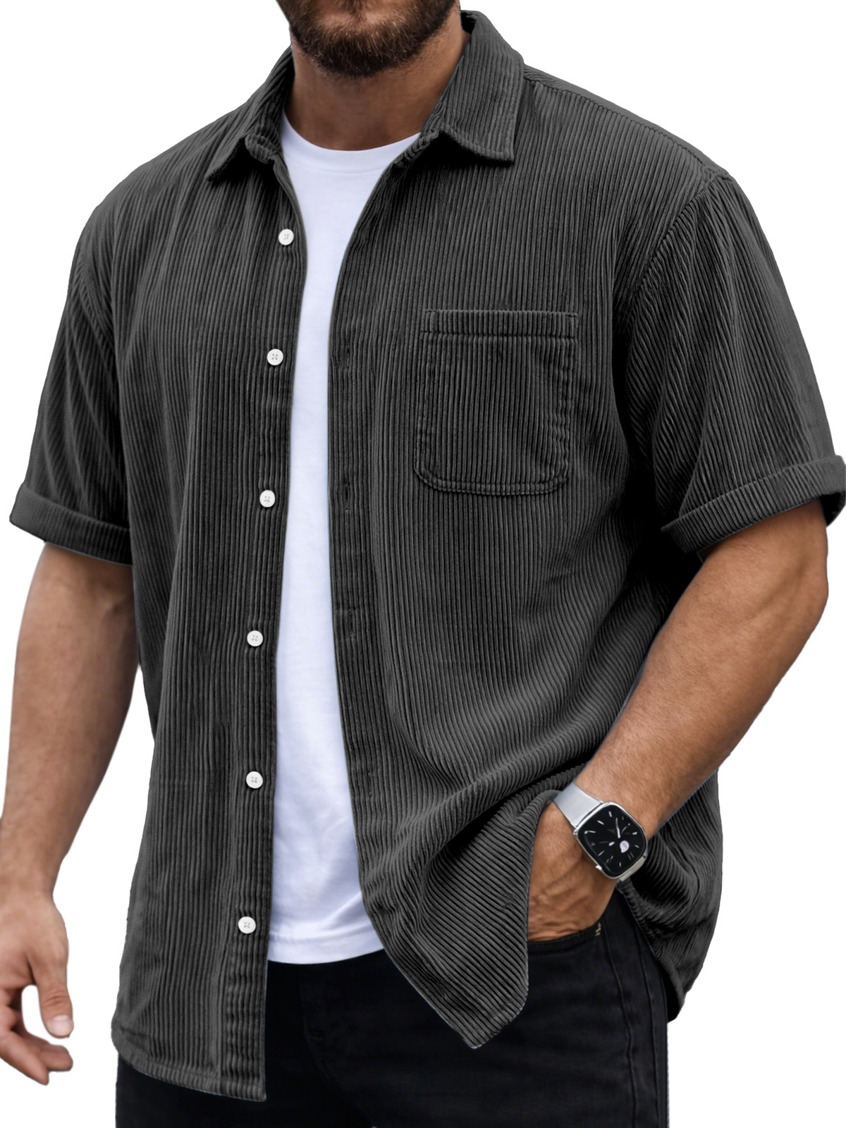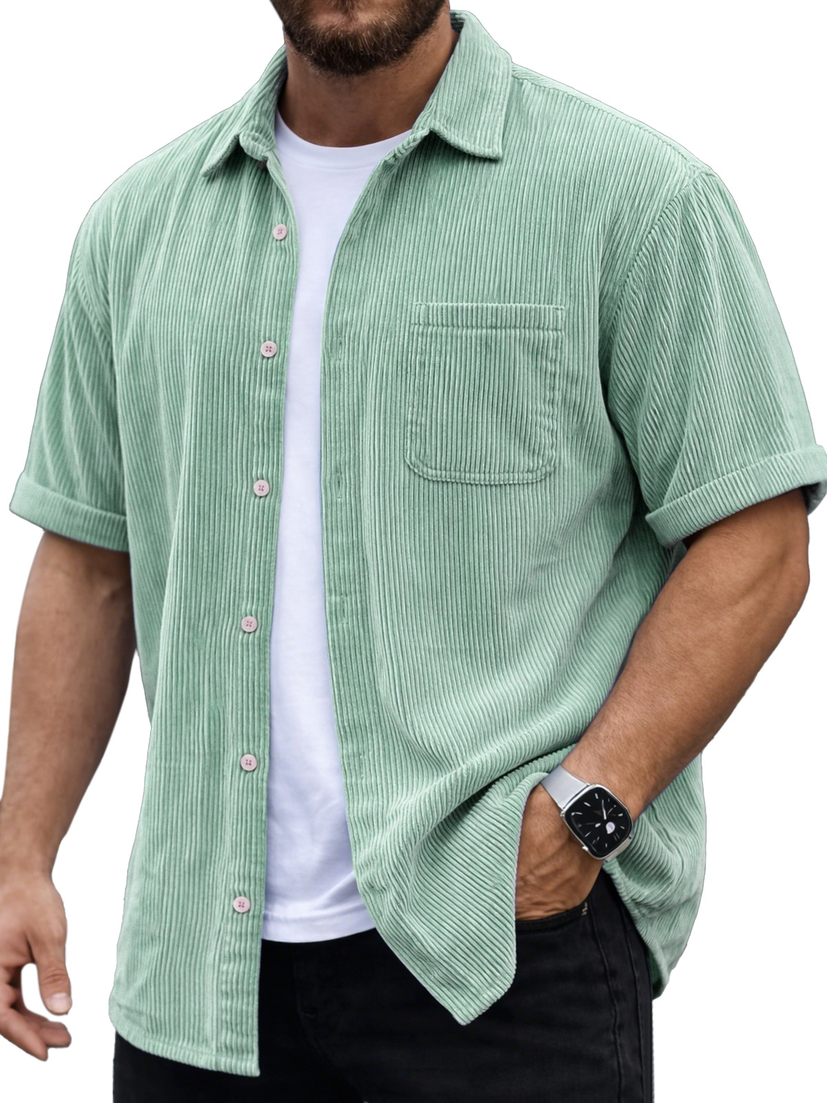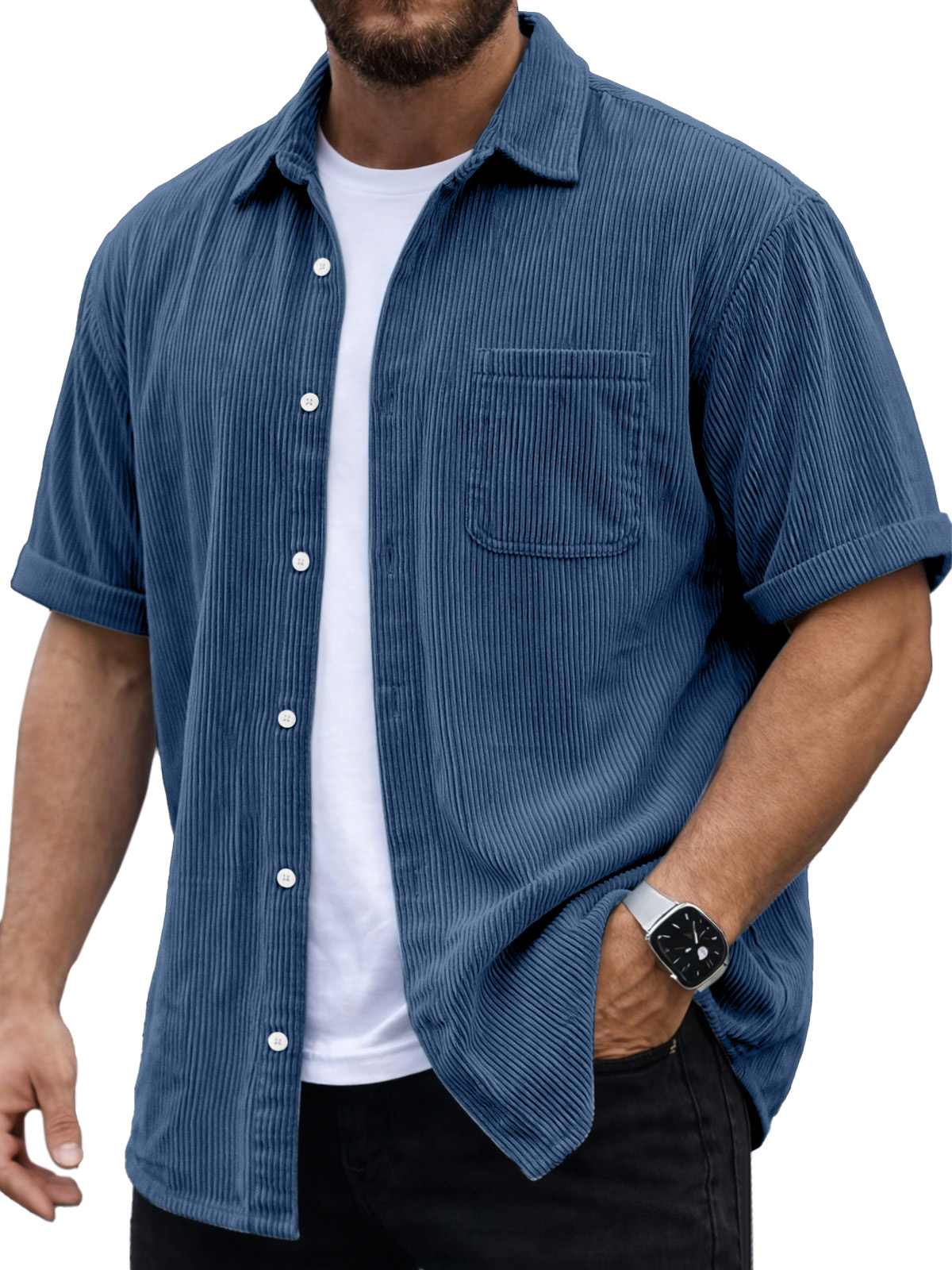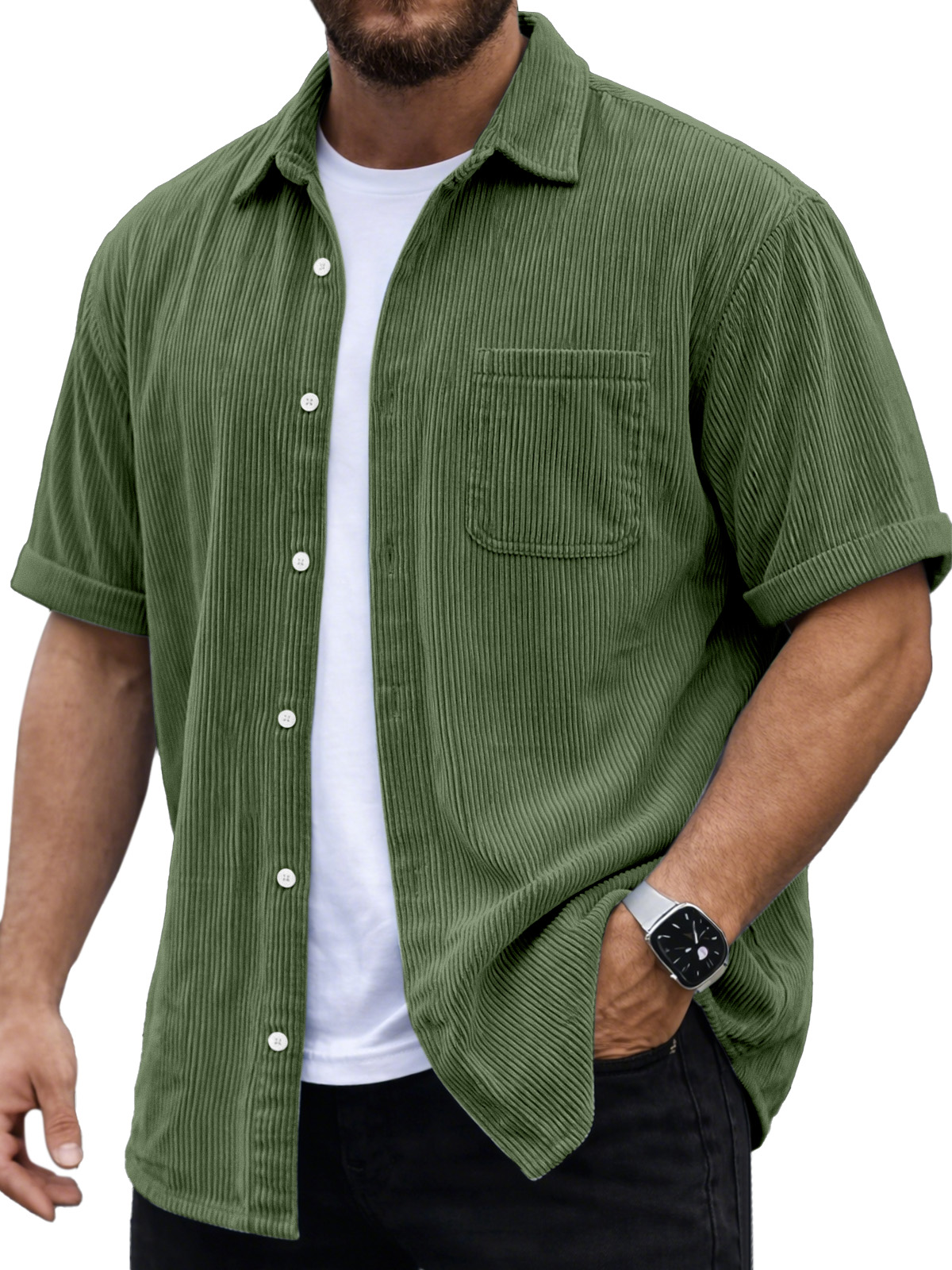 Retro Solid Color Corduroy Lapel Short-Sleeve Shirt