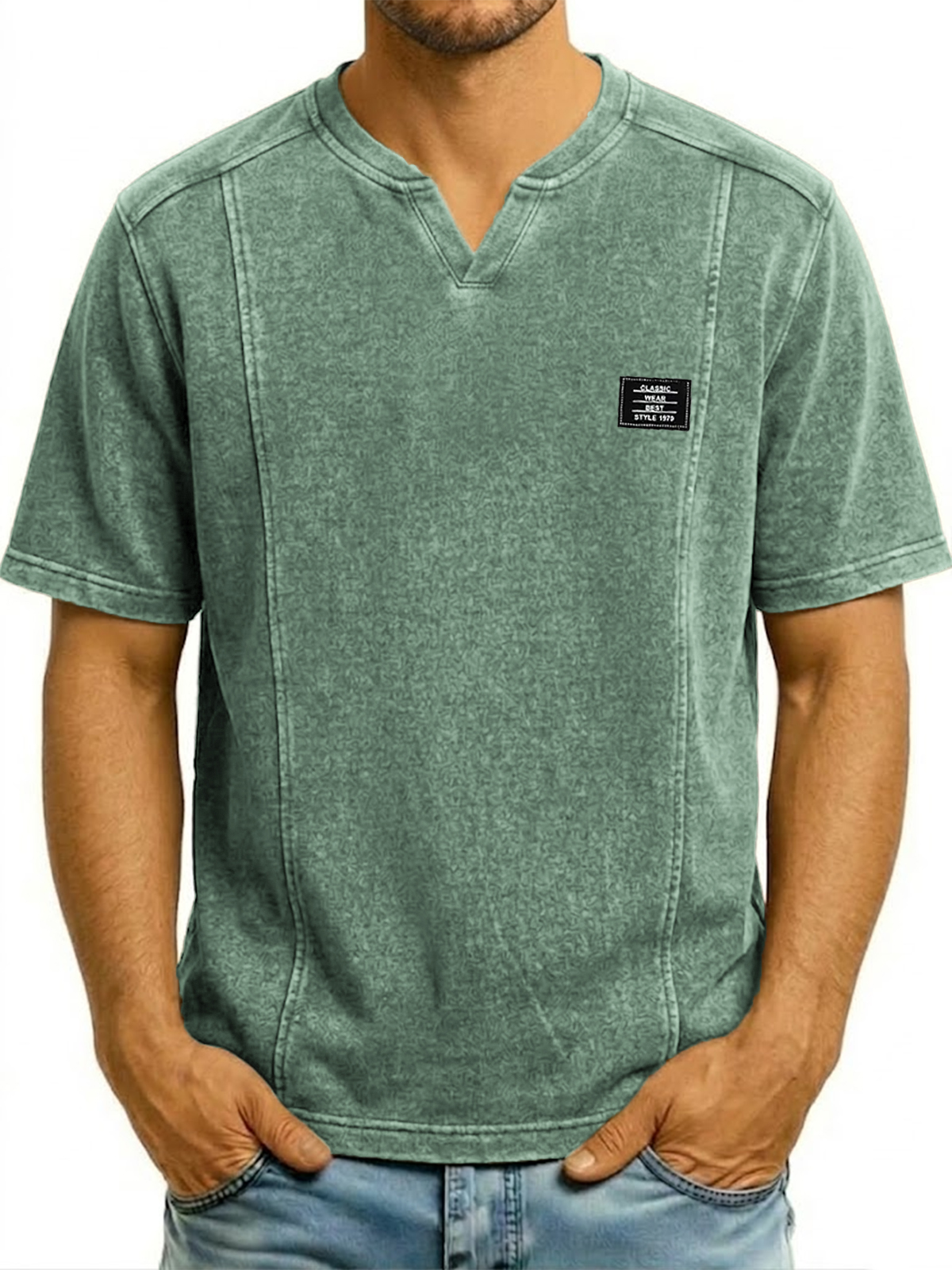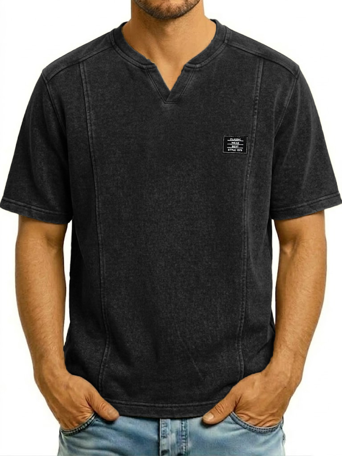 Small V-neck Pullover Deconstructed Short-sleeved Top