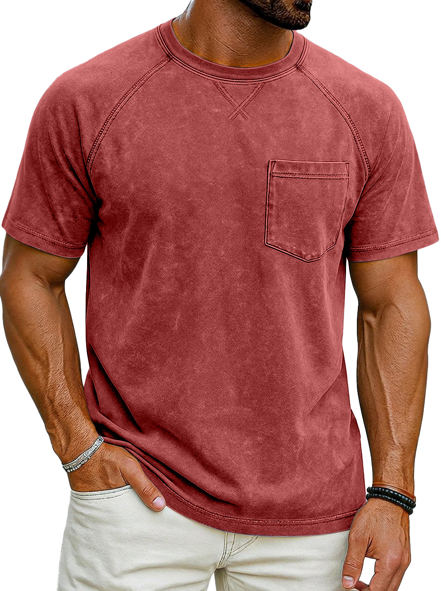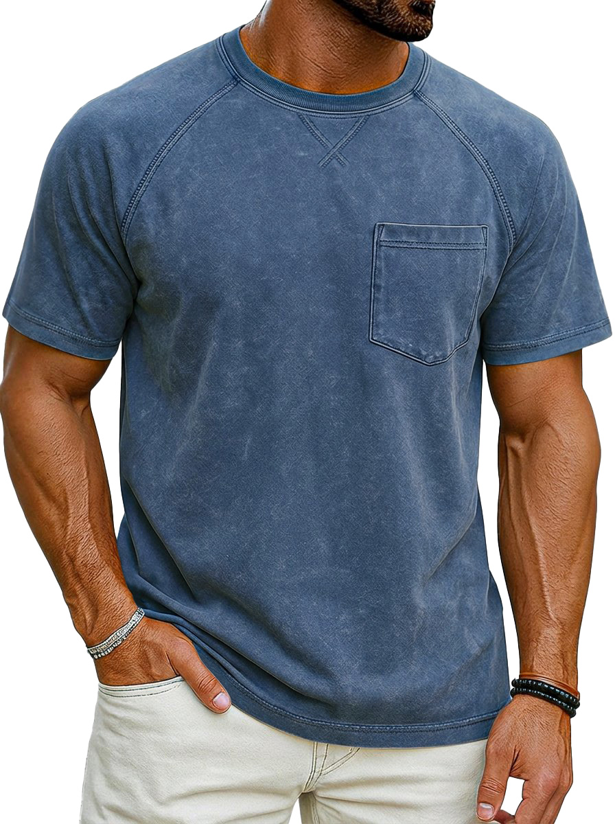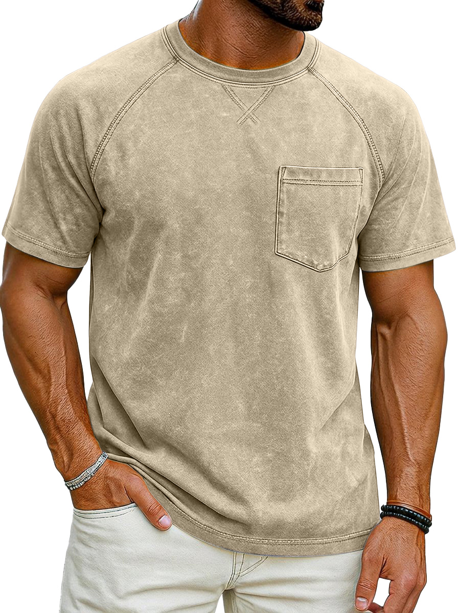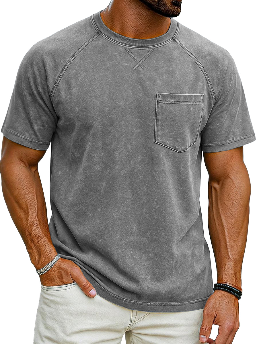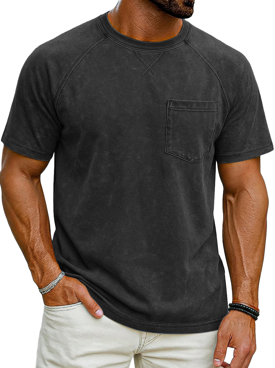 Vintage distressed raglan sleeve short-sleeved crew neck T-shirt